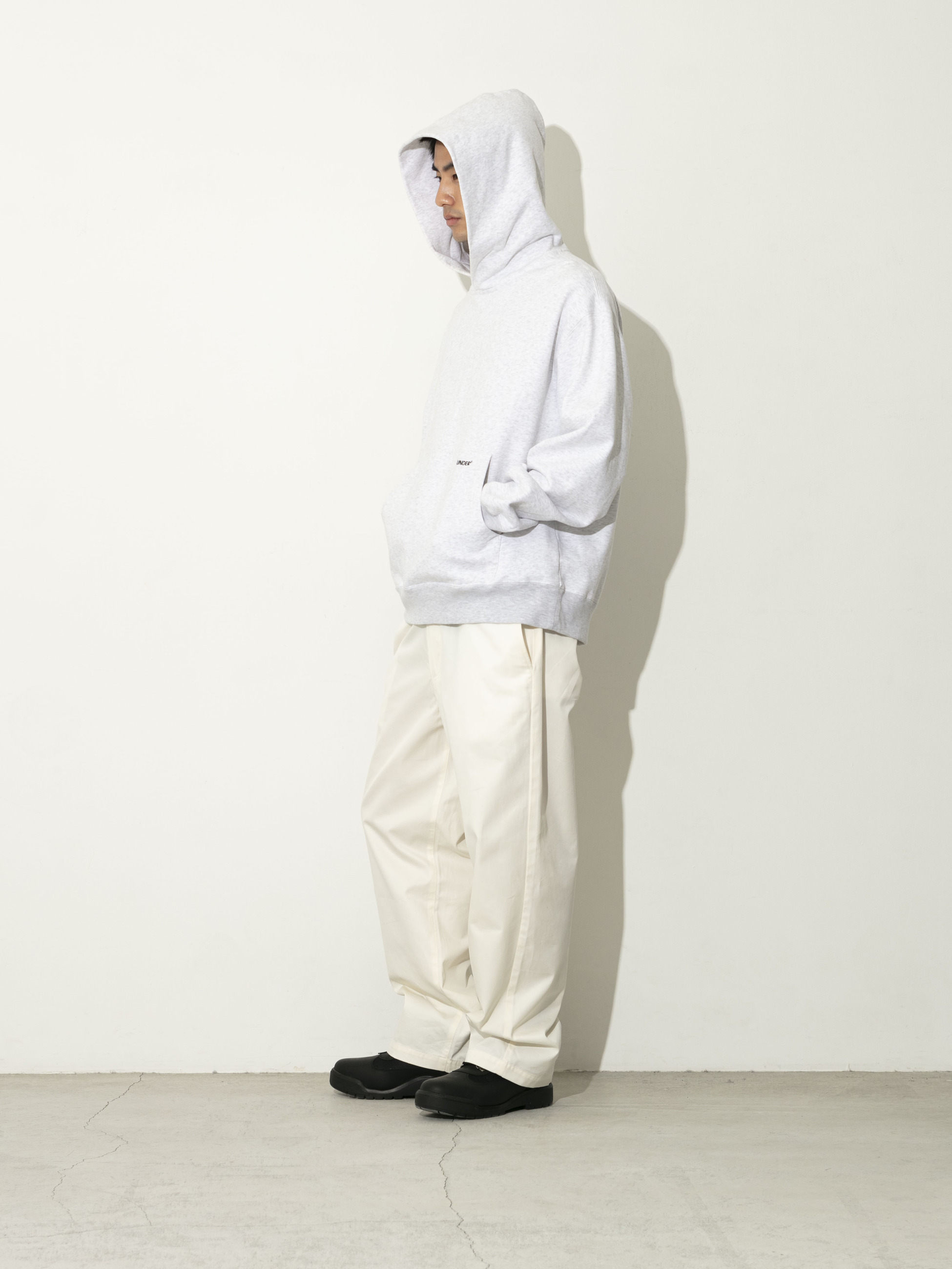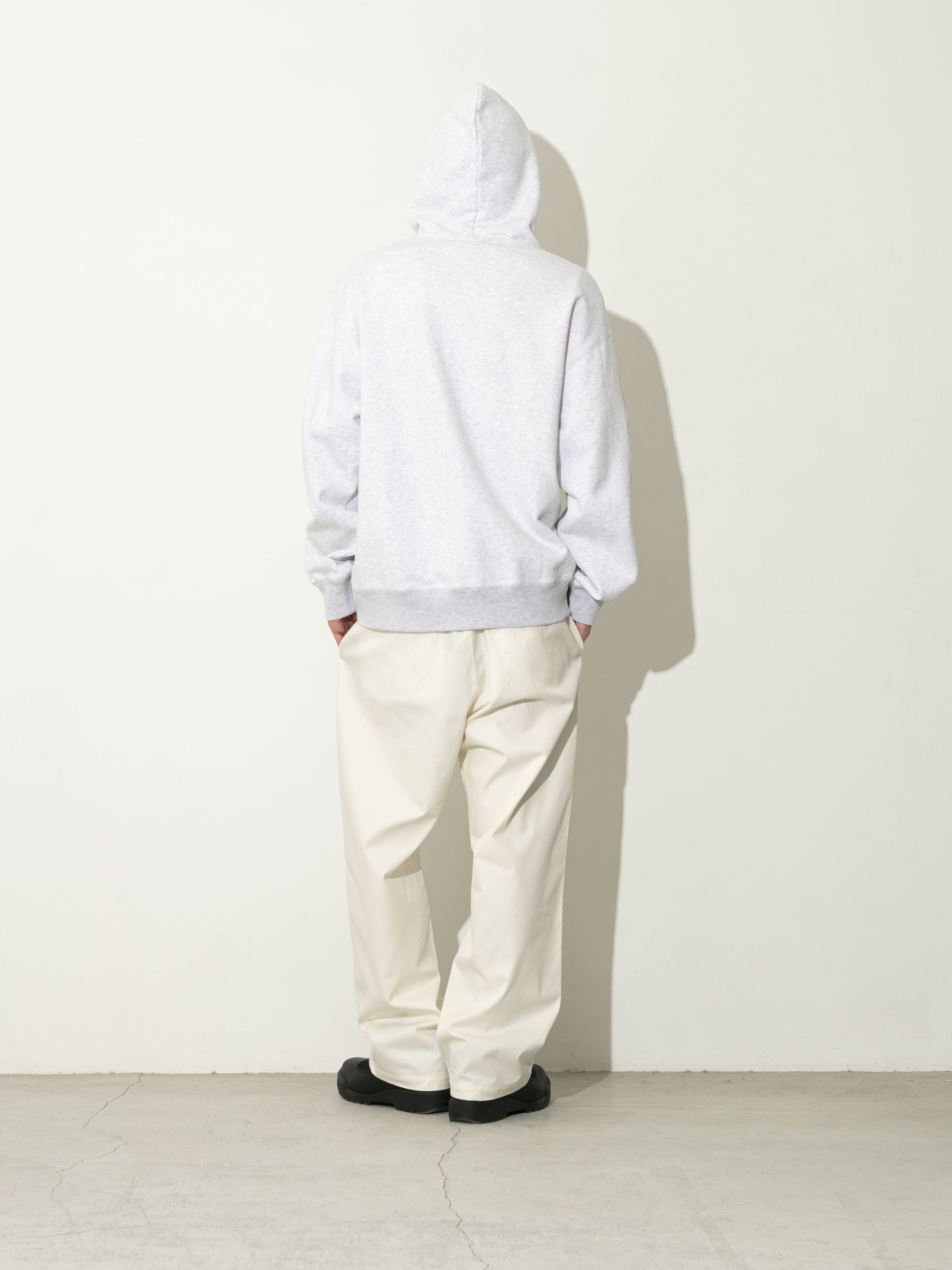 - 21番手の単糸を2本撚り合わせた双糸を使用した3層構造となる裏毛素材に、ワンポイントロゴを配したスウェットフーディー。毛羽立ちが少なく、きれいな表情と様々な時季で活躍する程よく厚みのある生地が特徴です。また、ウォッシュ加工とタンブラー乾燥を施し、洗濯の際に起きる縮みを軽減しています。着丈をやや短く設定したボックスシルエットで製作した程よくゆったりとしたフィットは、様々なコーディネートに合わせやすく、汎用性の高い一着です。