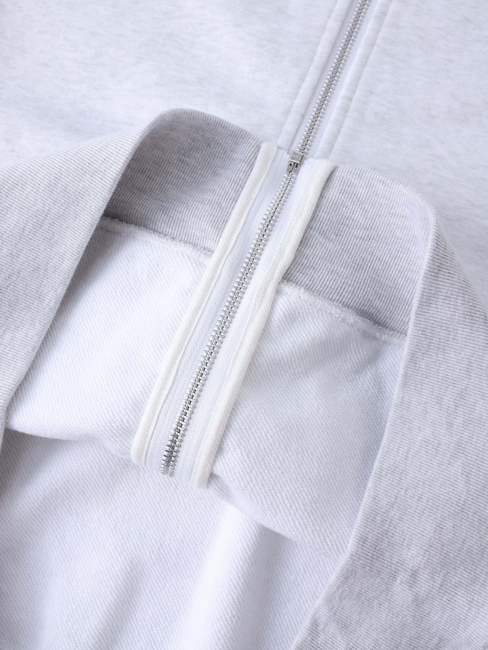 - 21番手の単糸を2本撚り合わせた双糸を使用した3層構造となる裏毛素材に、ワンポイントロゴを配したスウェットジップフーディー。毛羽立ちが少なく、きれいな表情と様々な時季で活躍する程よく厚みのある生地が特徴です。また、ウォッシュ加工とタンブラー乾燥を施し、洗濯の際に起きる縮みを軽減しています。着丈をやや短く設定したボックスシルエットで製作した程よくゆったりとしたフィットは、様々なコーディネートに合わせやすく、汎用性の高い一着です。