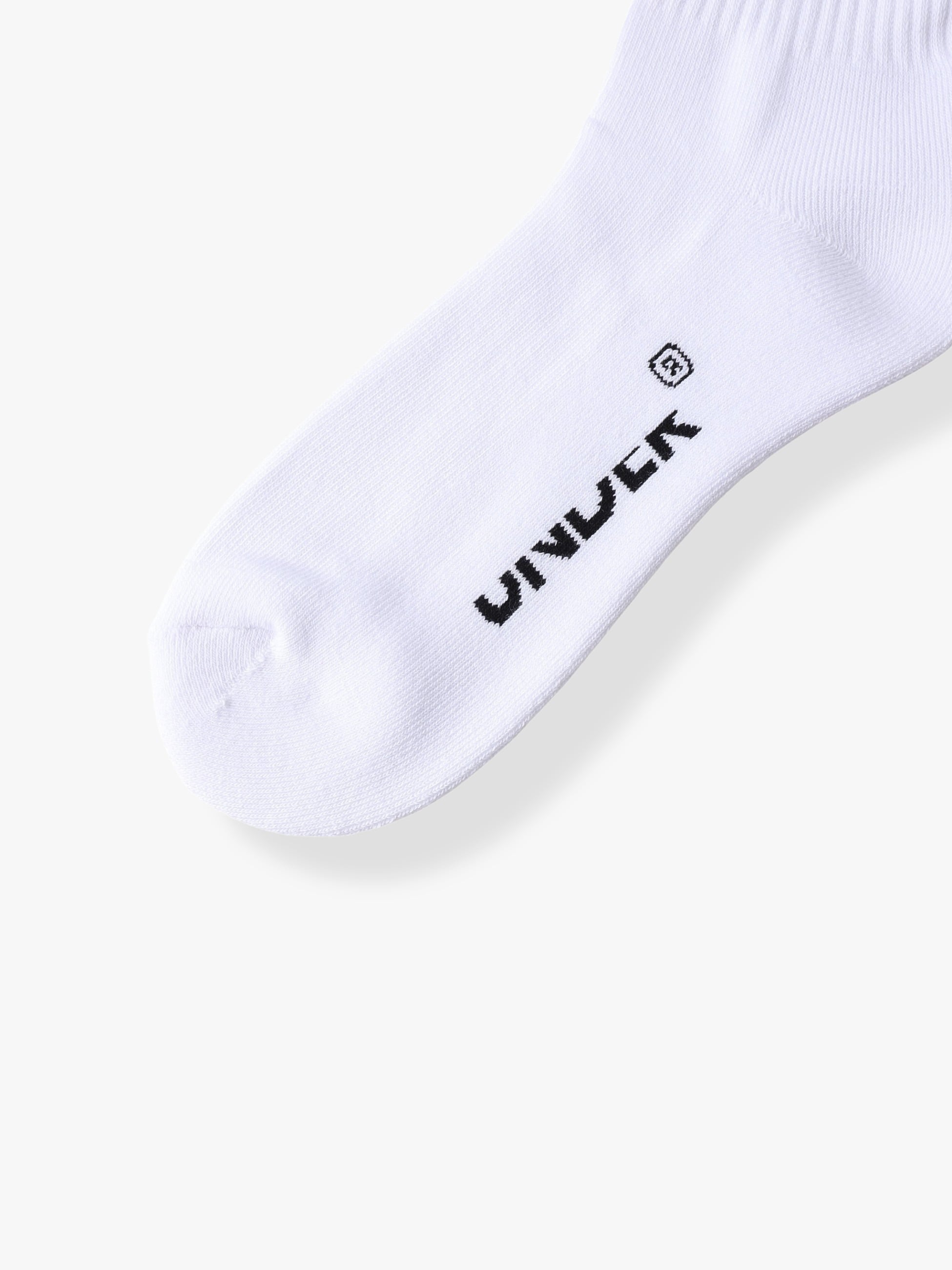 - バランスの良い丈とクラシックなリブ編みがポイントのソックスは、サンダル、スニーカーなど、どんな靴とも相性が良く重宝します。また、バックに施されたブランドロゴが程よくアクセントになっています。