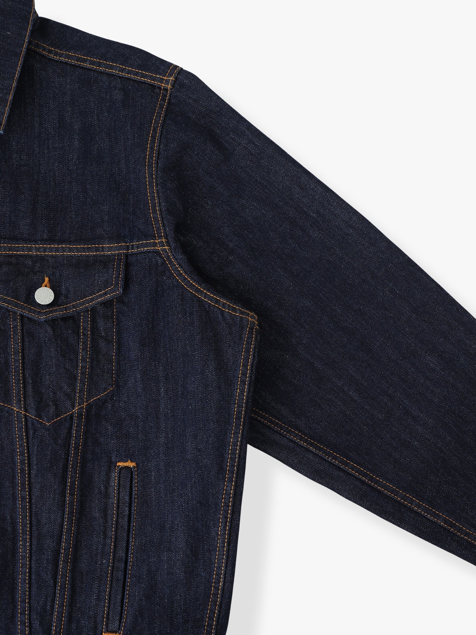 - 14オンスのデニム生地を使用したデニムジャケット。ウォッシュ加工とタンブルドライを施した柔らかな風合いや濃色を残したきれいな縦落ちによる着回ししやすいカラーリングが特徴です。ボックスシルエットを採用した程よくゆったりとしたフィットは、様々なコーディネートに合わせやすく、汎用性の高い一着です。