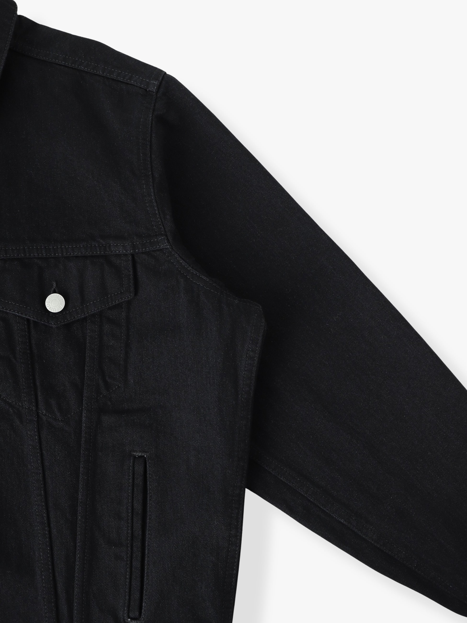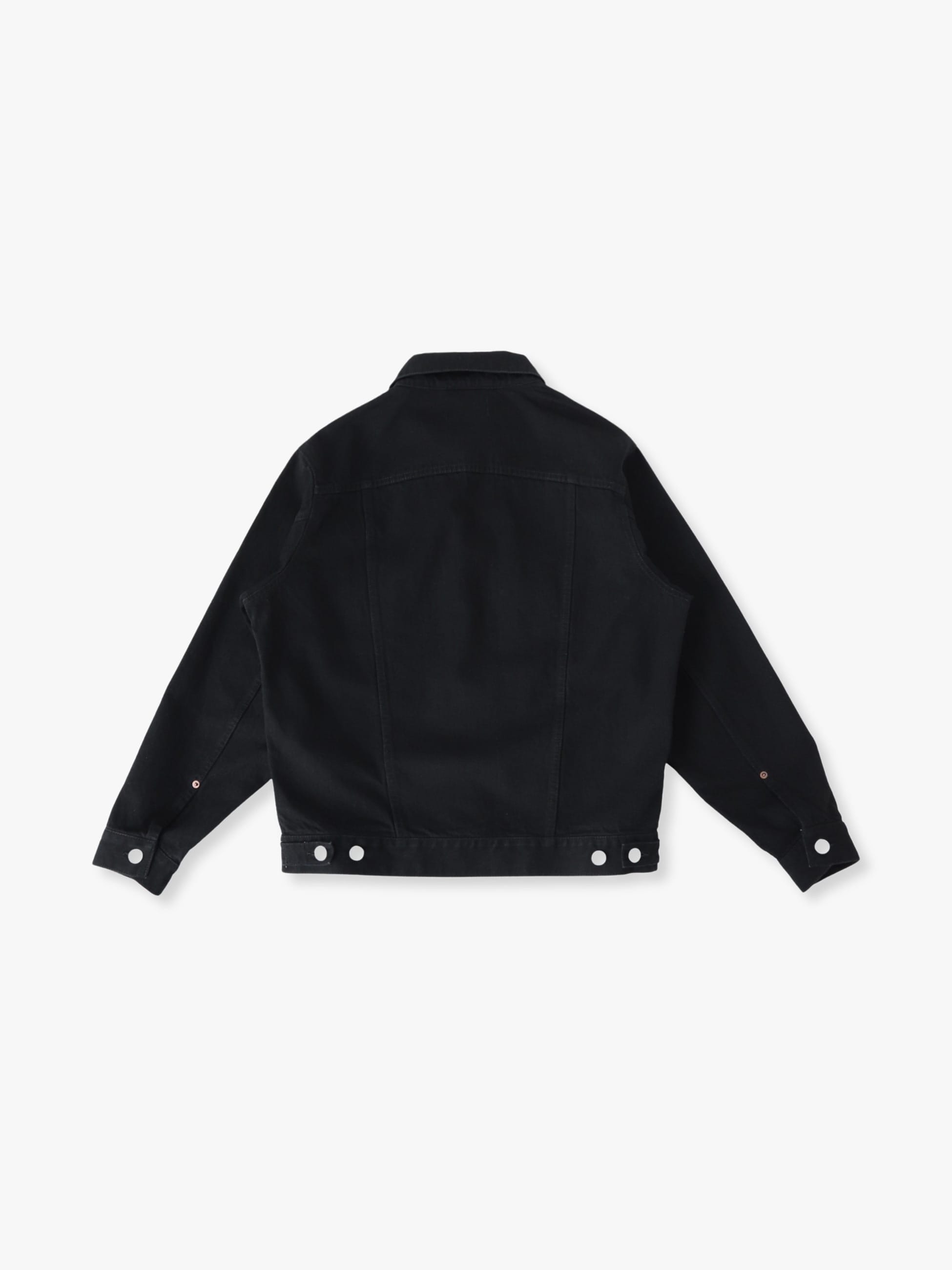 - 14オンスのデニム生地を使用したブラックデニムジャケット。ウォッシュ加工とタンブルドライを施した柔らかな風合いや濃色を残したきれいな縦落ちによる着回ししやすいカラーリングが特徴です。ボックスシルエットを採用した程よくゆったりとしたフィットは、様々なコーディネートに合わせやすく、汎用性の高い一着です。