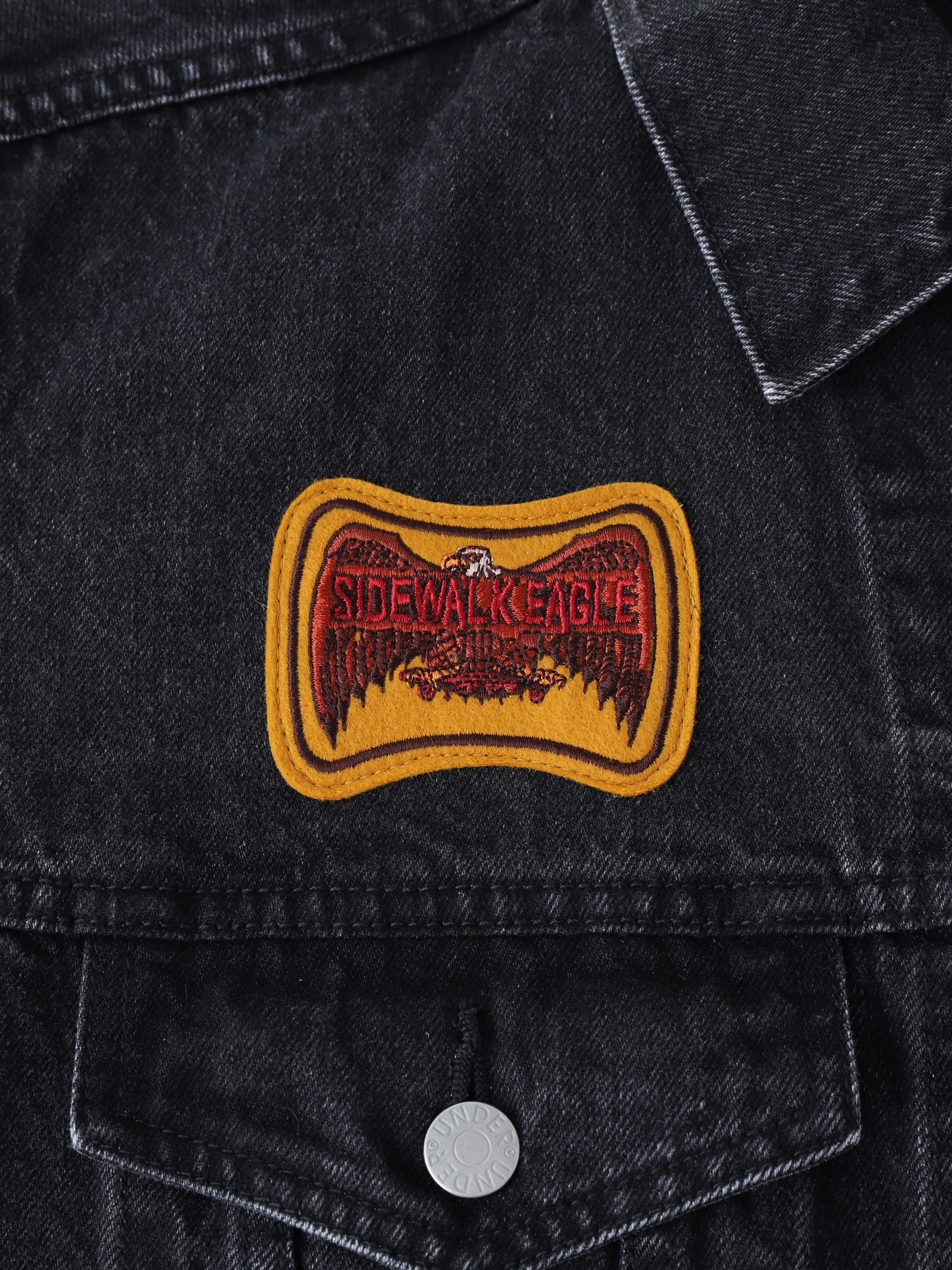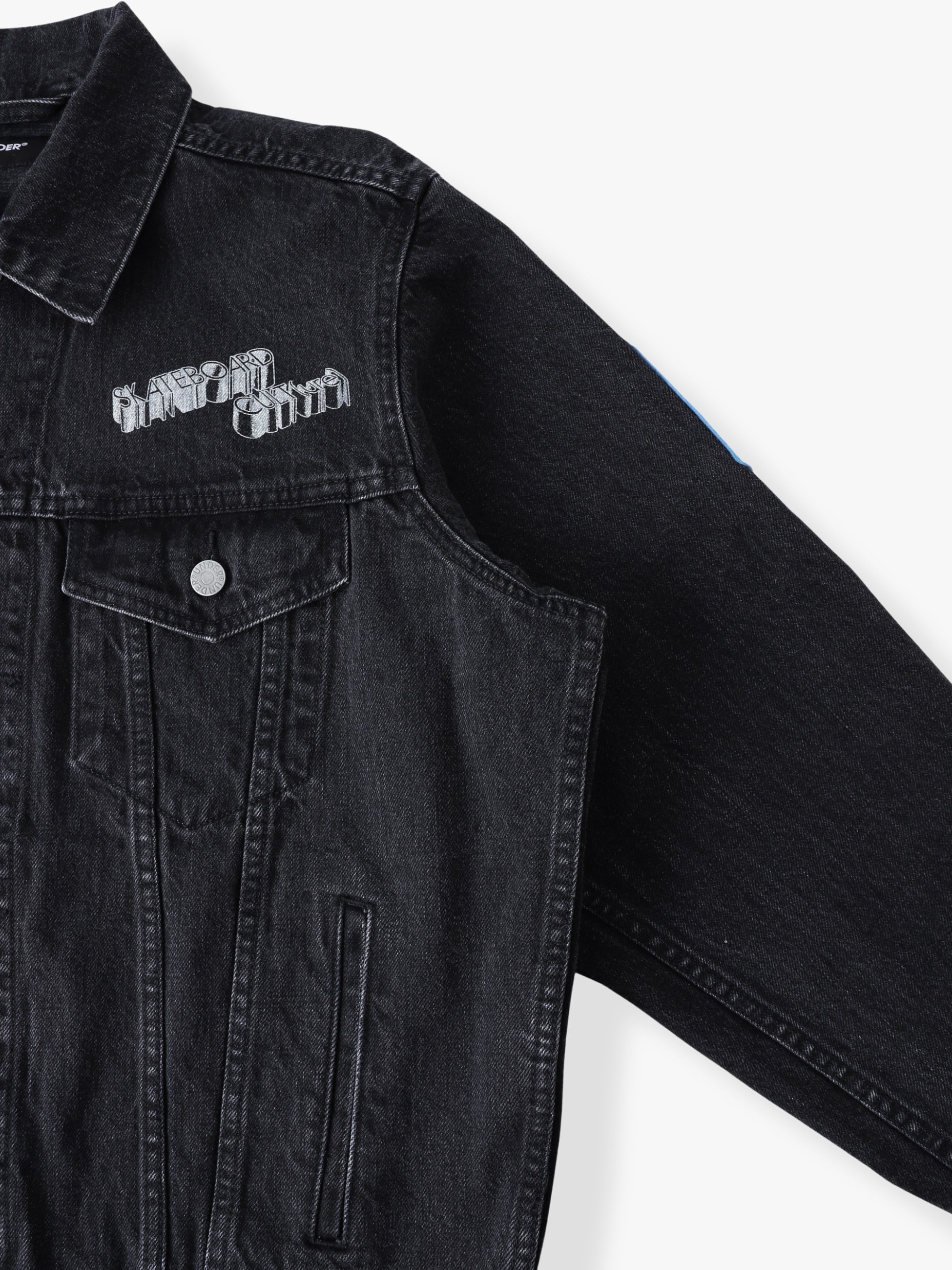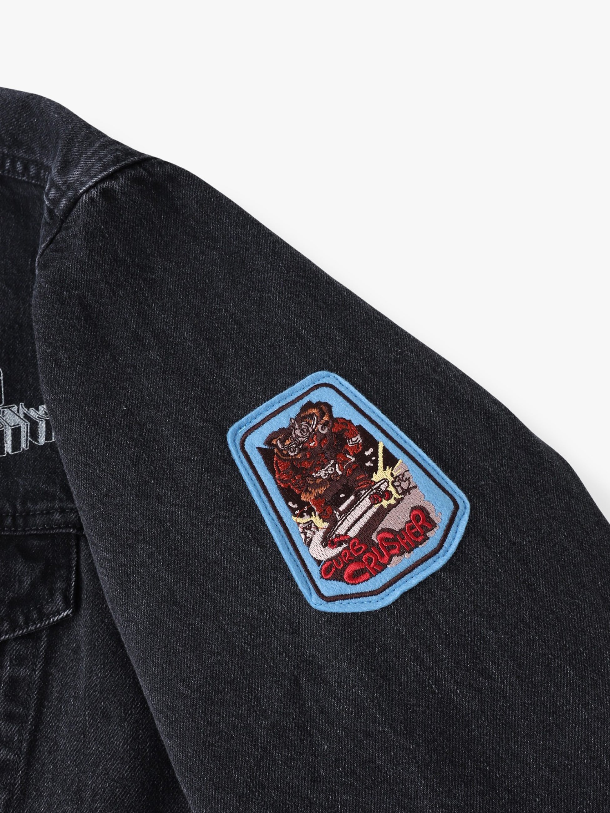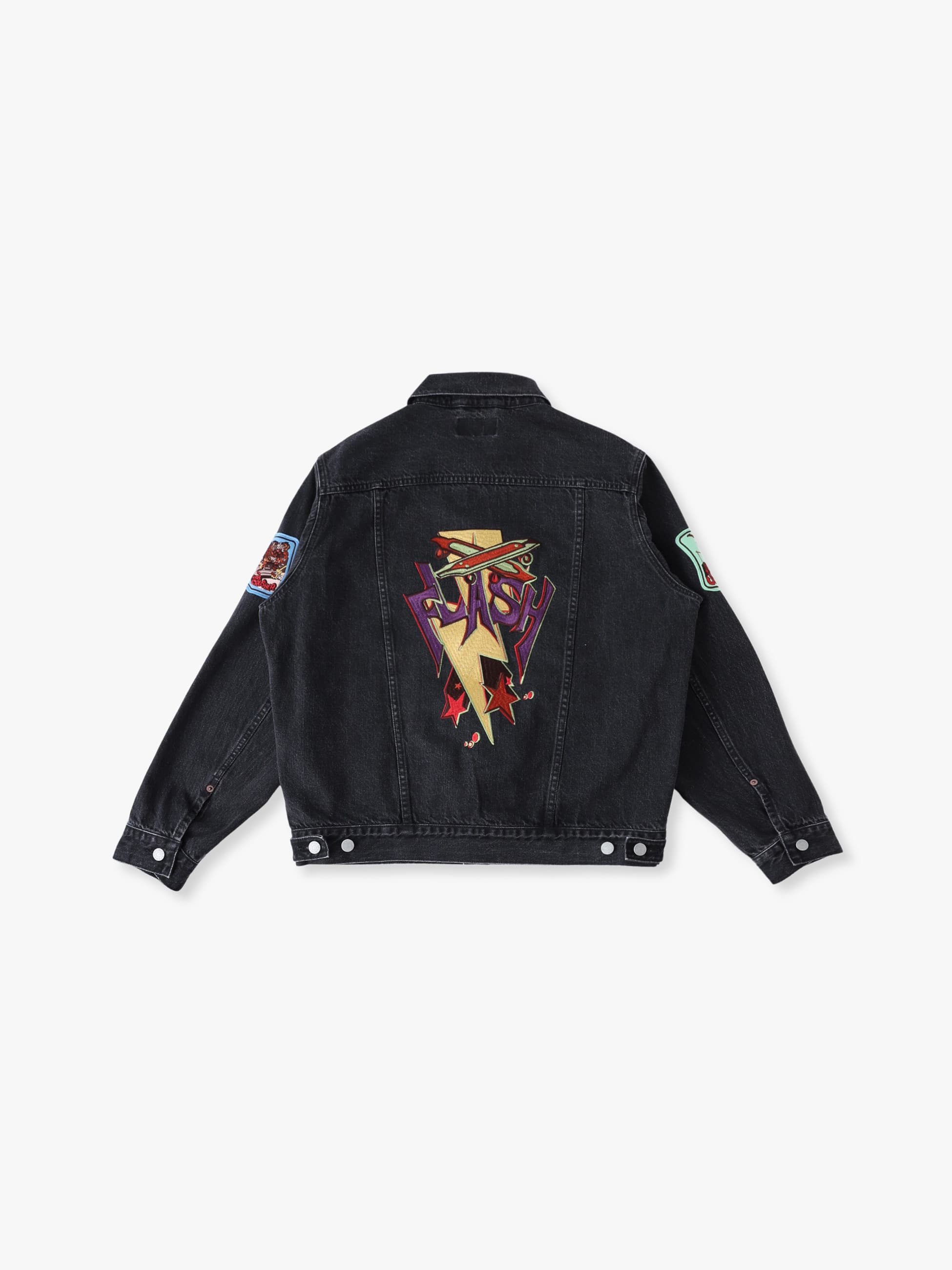 - 13.5オンスのセルビッチデニムを使用したジャケットは、ボールバイオウォッシュ加工を施したヴィンテージのようなフェードしたカラーリングや風合いが特徴です。また、両袖と右胸には特別に製作されたワッペンを配し、左胸と背面にはアートワークを刺繍で施したデザインも魅力のひとつ。ゆったりとしたフィットは、コーディネートの主役になる一着です。