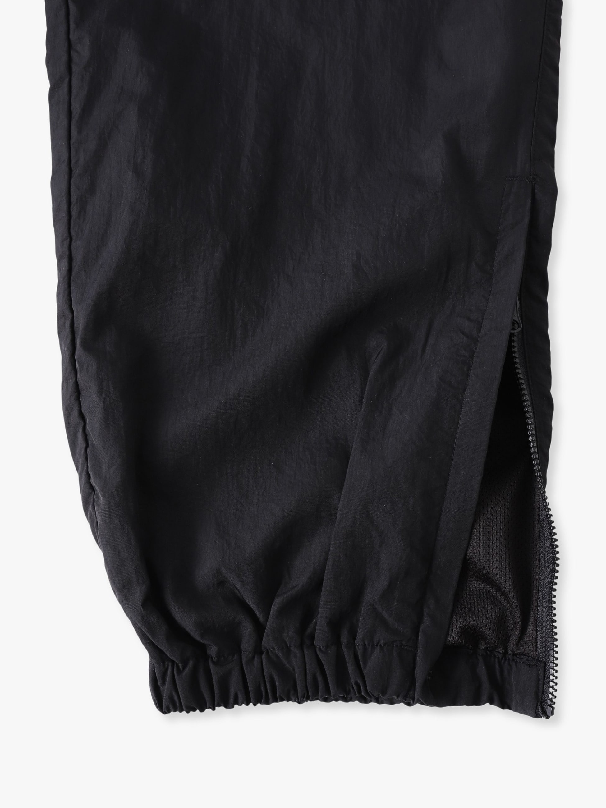 - ナイロン素材を使用したトラックパンツは、裏面にポリエステルメッシュを配したさらっとした快適な穿き心地が特徴です。また、フロントに刺繍で施したロゴがアクセントになっています。程よくゆったりとしたフィットと裾にジップを配したシルエットの変化を楽しめる仕様は、デイリーユースしやすい一着です。