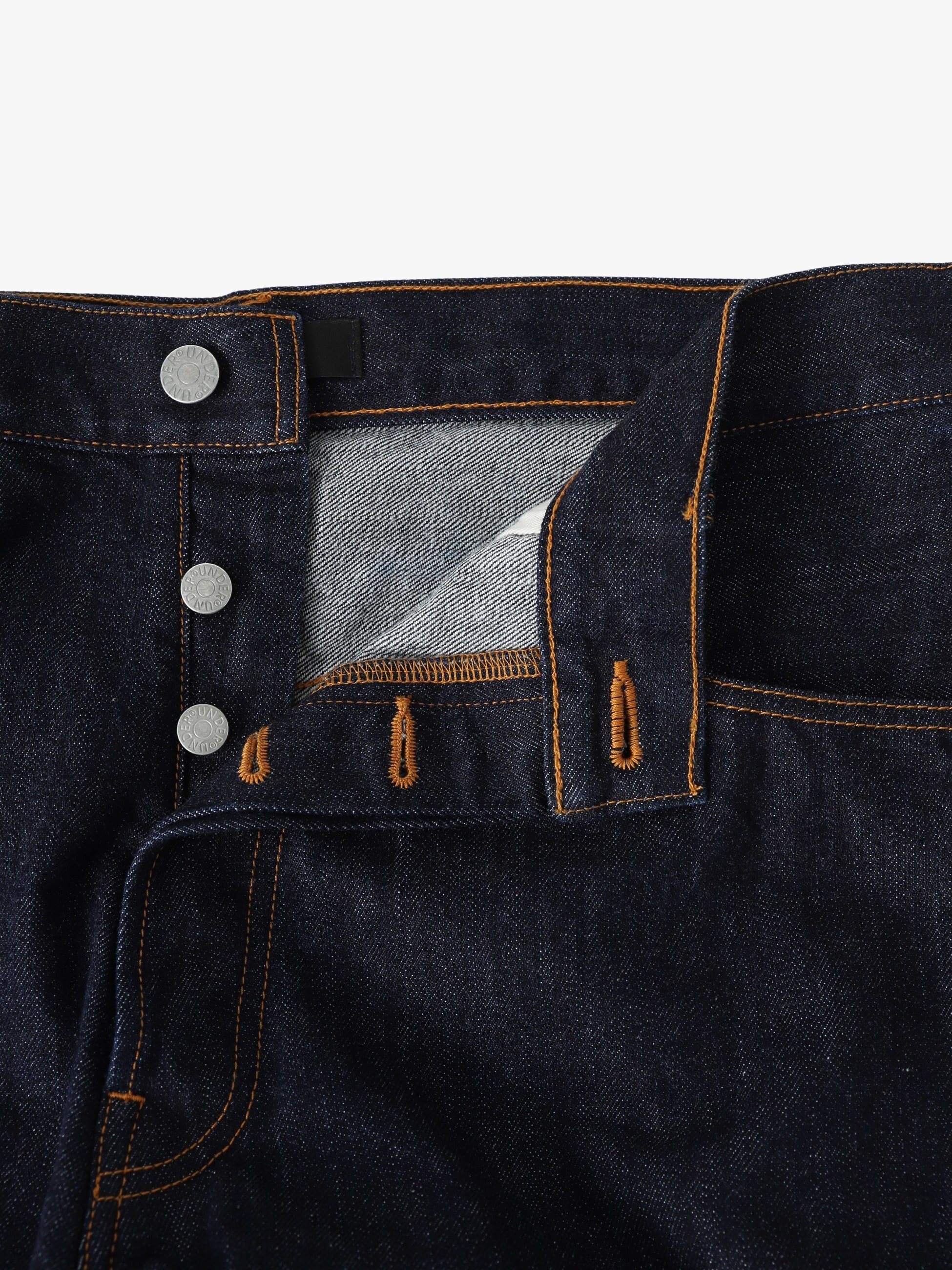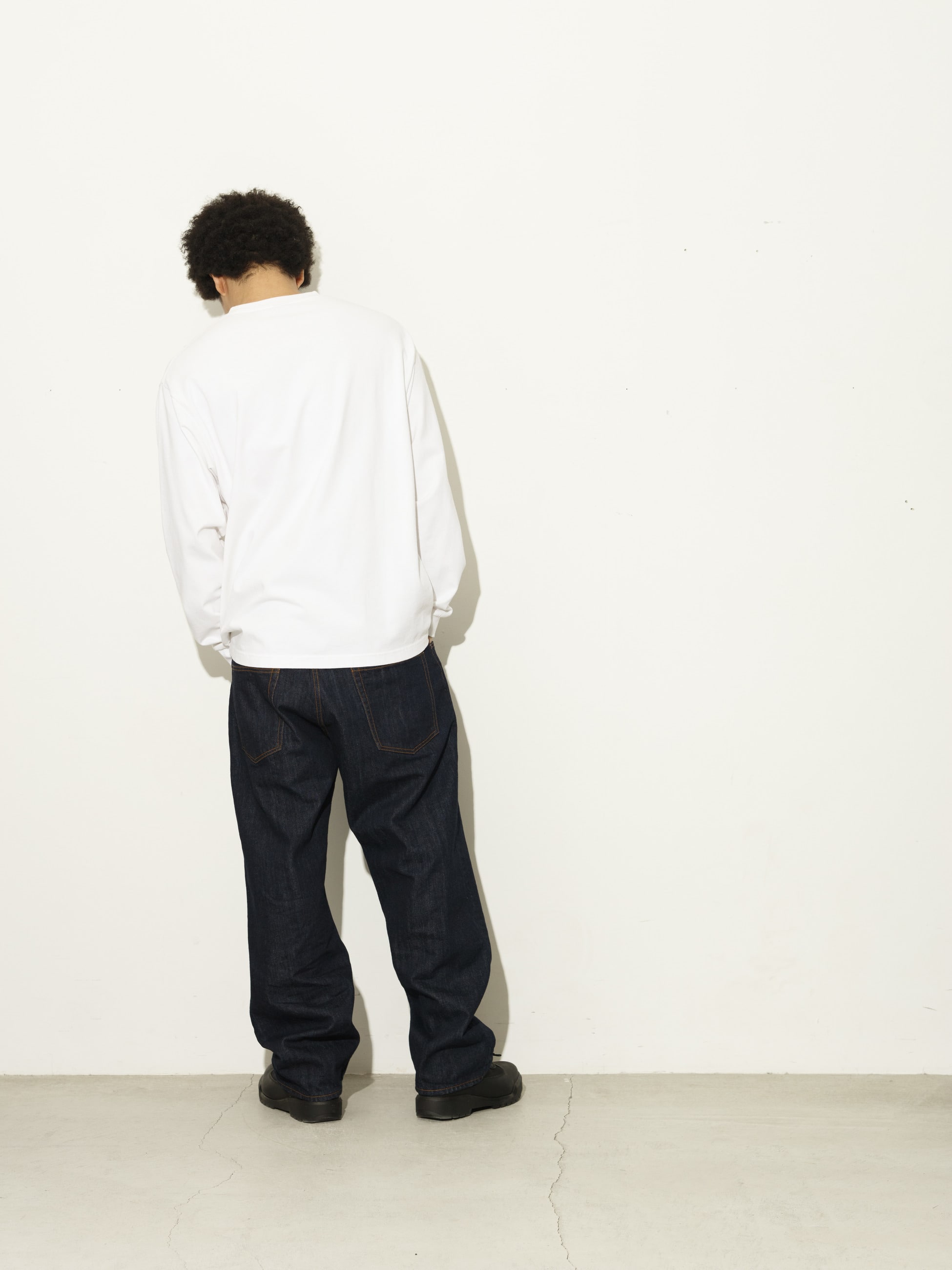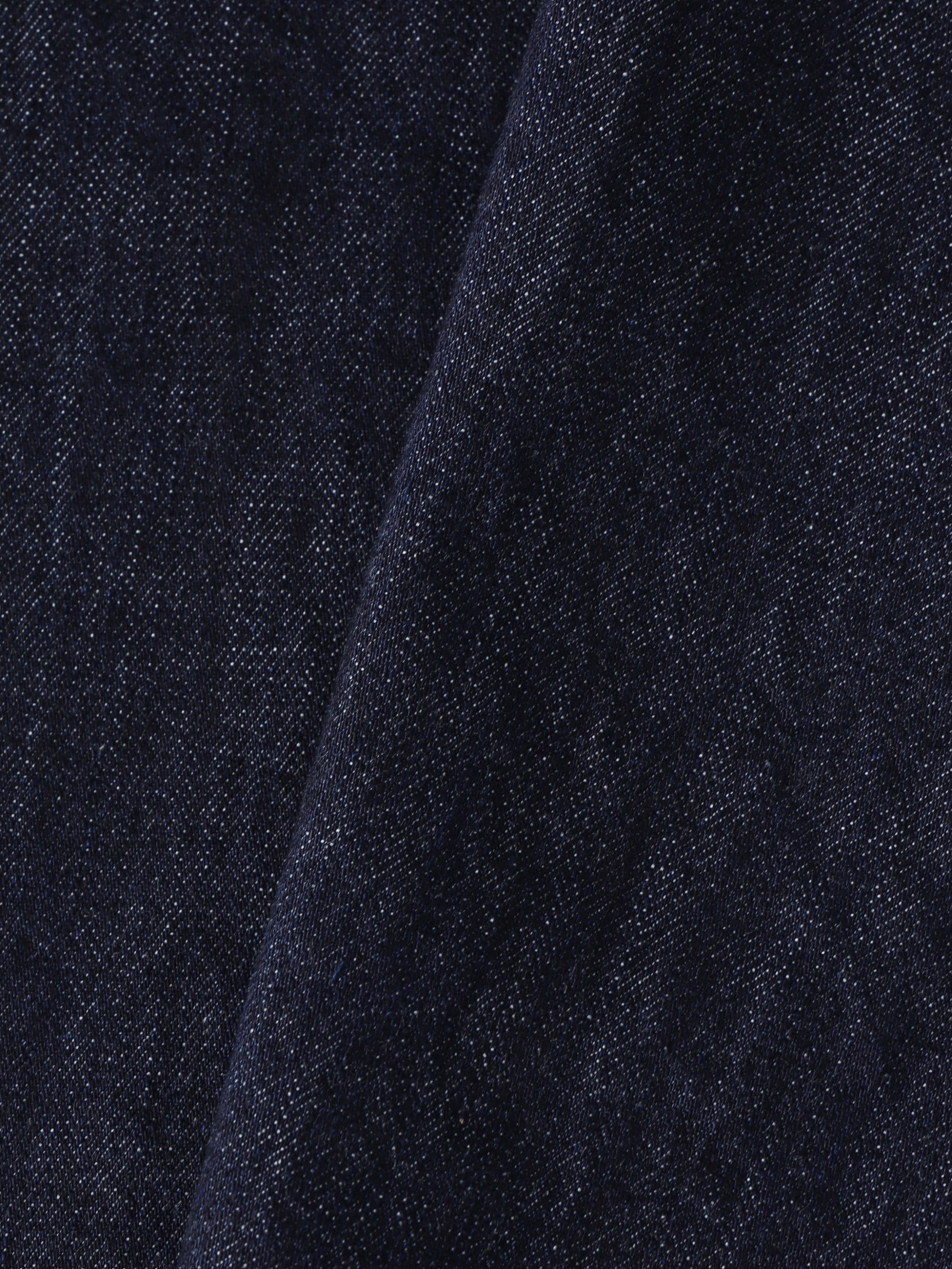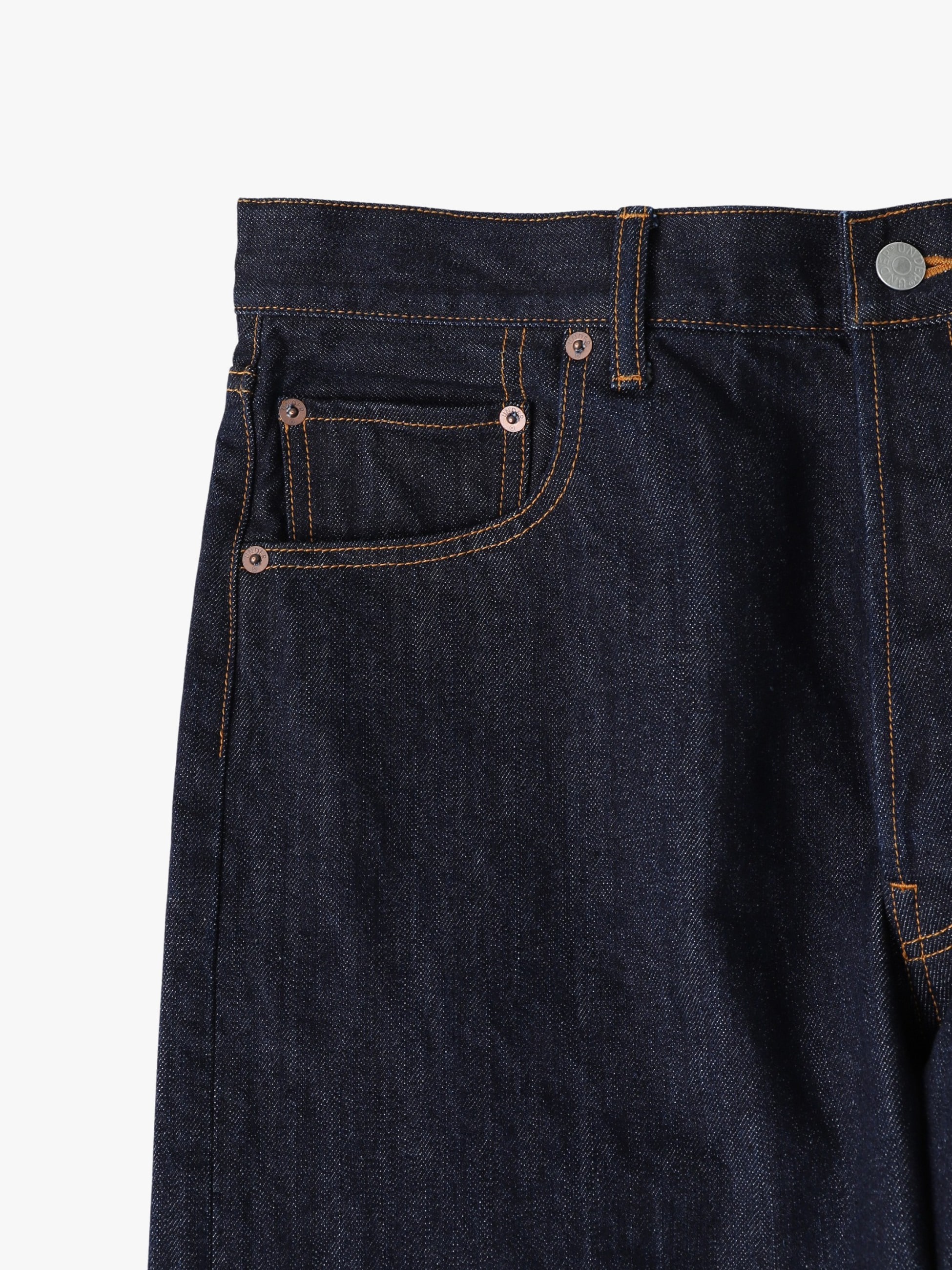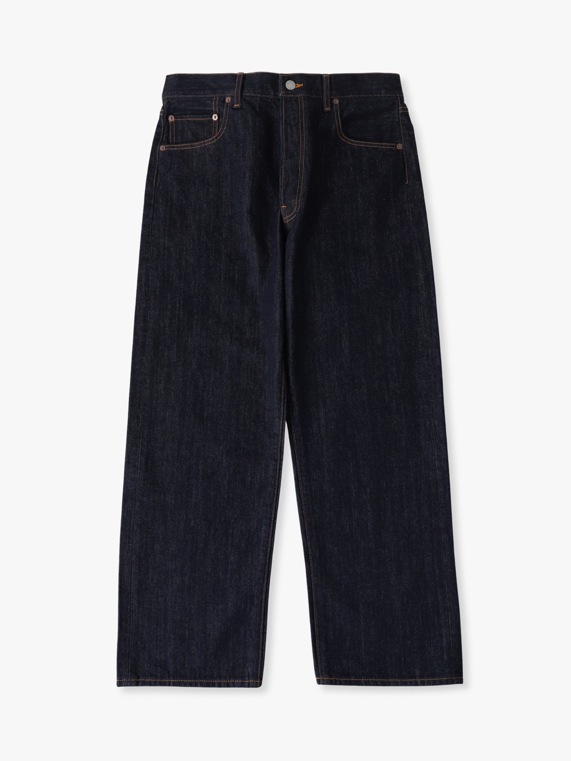 - 14オンスのデニム生地を使用したインディゴデニムパンツ。ウォッシュ加工とタンブルドライを施した柔らかな風合いや濃色を残したきれいな縦落ちによる着回ししやすいカラーリングが特徴です。程よくテーパードを利かせたレギュラーフィットは、様々なコーディネートに合わせやすく、汎用性の高い一着です。