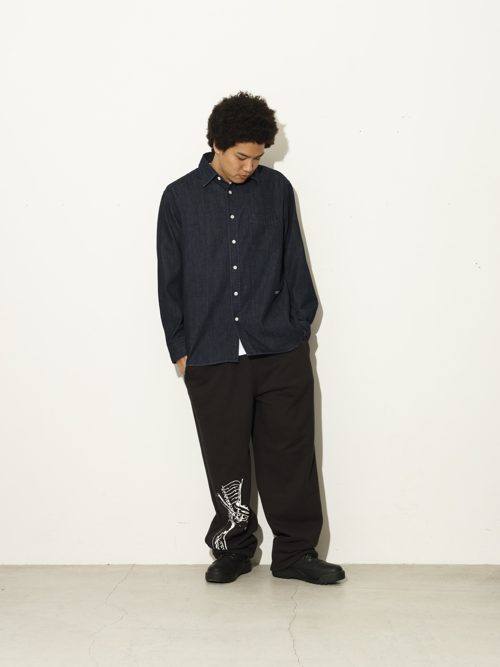 - オーガニックコットンによる7.7オンスのデニム生地を使用したシャツ。ライトオンスの軽やかな着心地とワンウォッシュタンブラー加工を施した柔らかな風合いが特徴です。また、フロントに配したUNDER Rロゴの刺繍がアクセントになっています。程よくゆったりとしたレギュラーフィットは、様々なコーディネートに合わせやすく、汎用性の高い一着です。