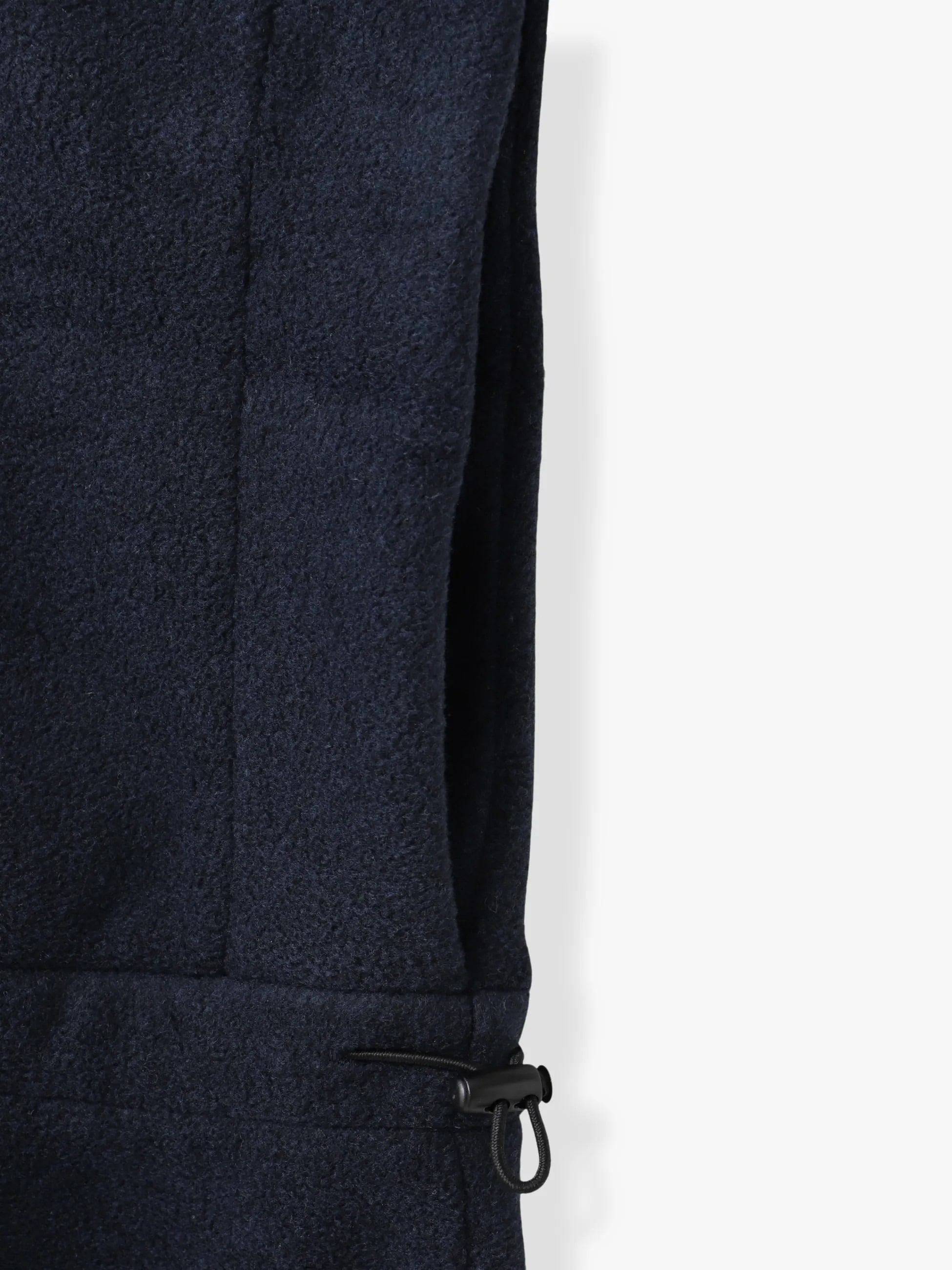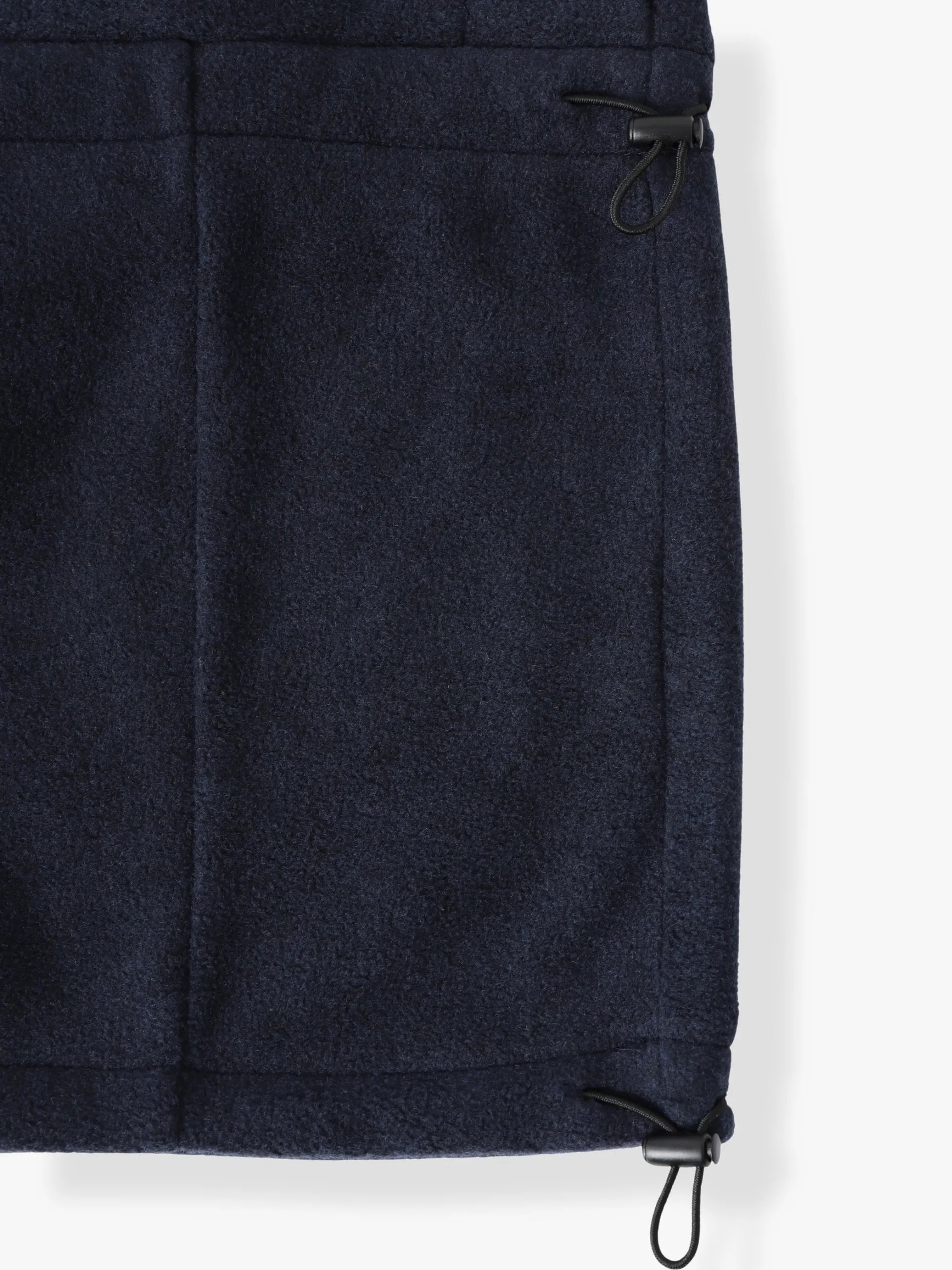 - フリース素材のプルオーバーブルゾンは、袖口、ウエスト、裾にドローストリングが施されており調節が可能。ウエストを絞る事でシルエットに変化がつけられ、ボトムスとのバランスや気分で楽しんでいただけます。フリース素材はタンブラー加工することで、通常よりピーリングを起こりにくい仕様になっています。