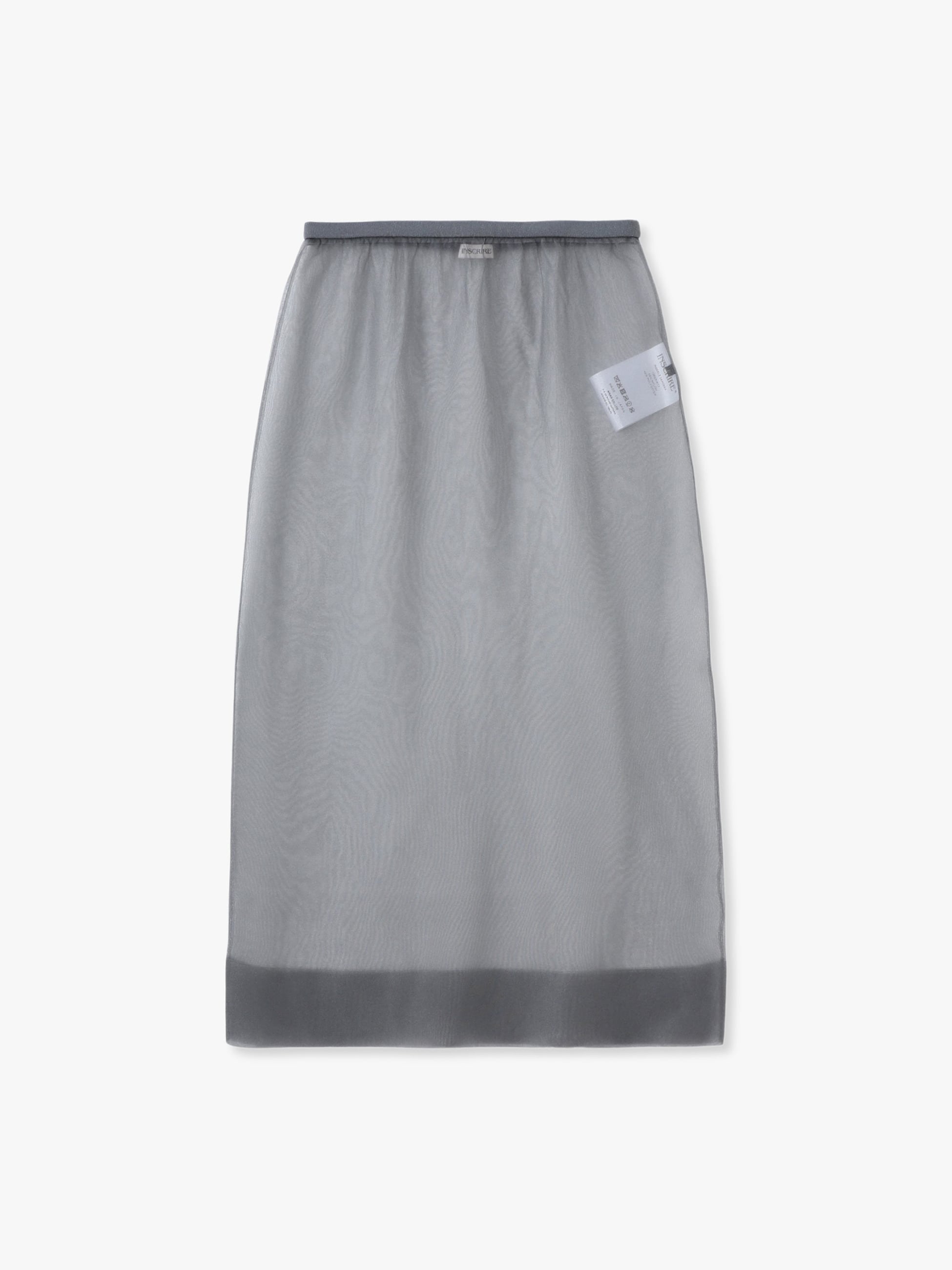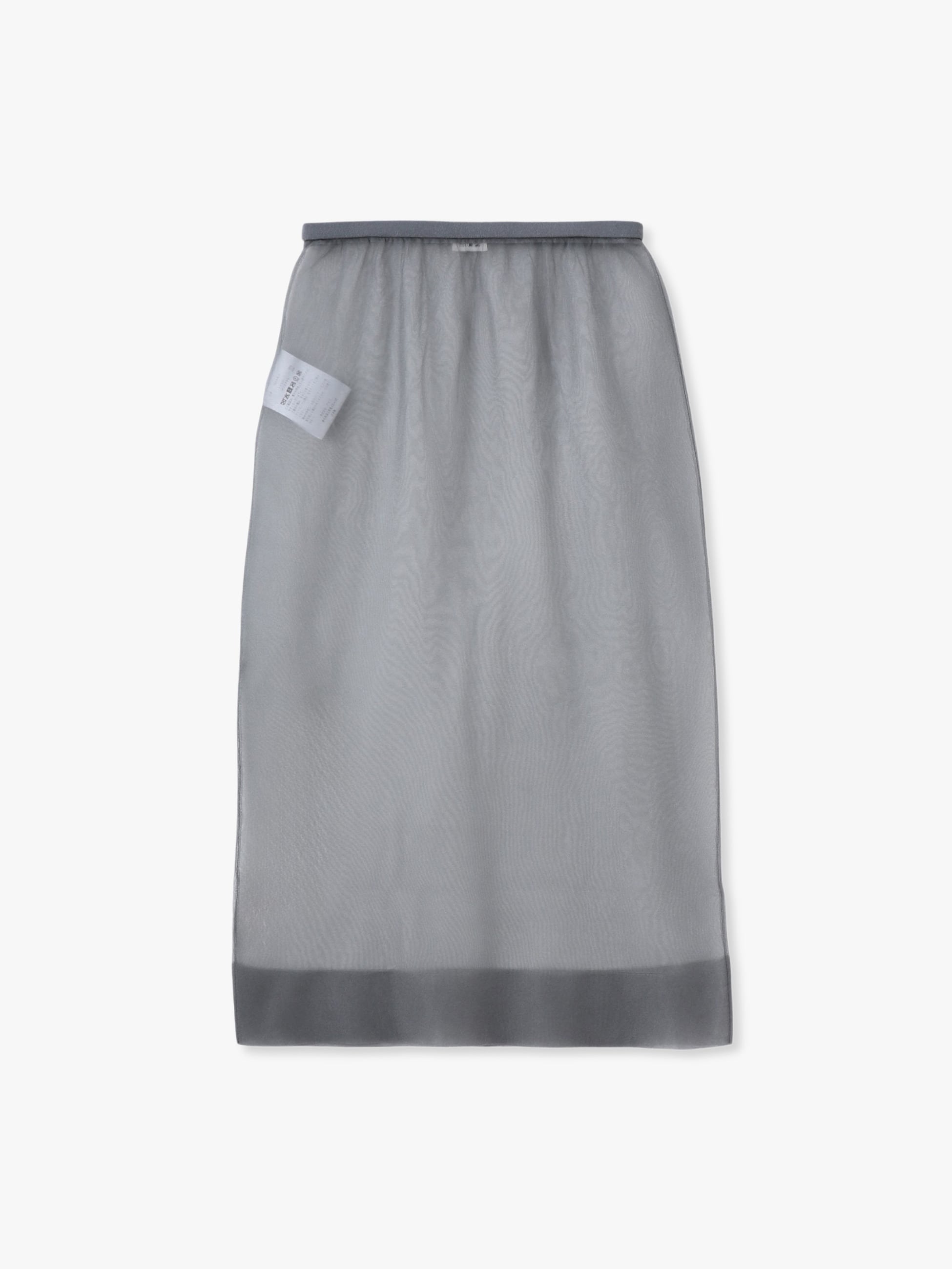 ナイロンを使用し、サラッとしたタッチの半透明糸で編み立てたシアー素材のニットスカートは、上品な透け感に、程よいハリとドレープがあり、心地良く着用いただけます。シンプルなスタイリングにレイヤードするだけで、鮮度を加える1着です。同シリーズのプルオーバーの展開もございます。