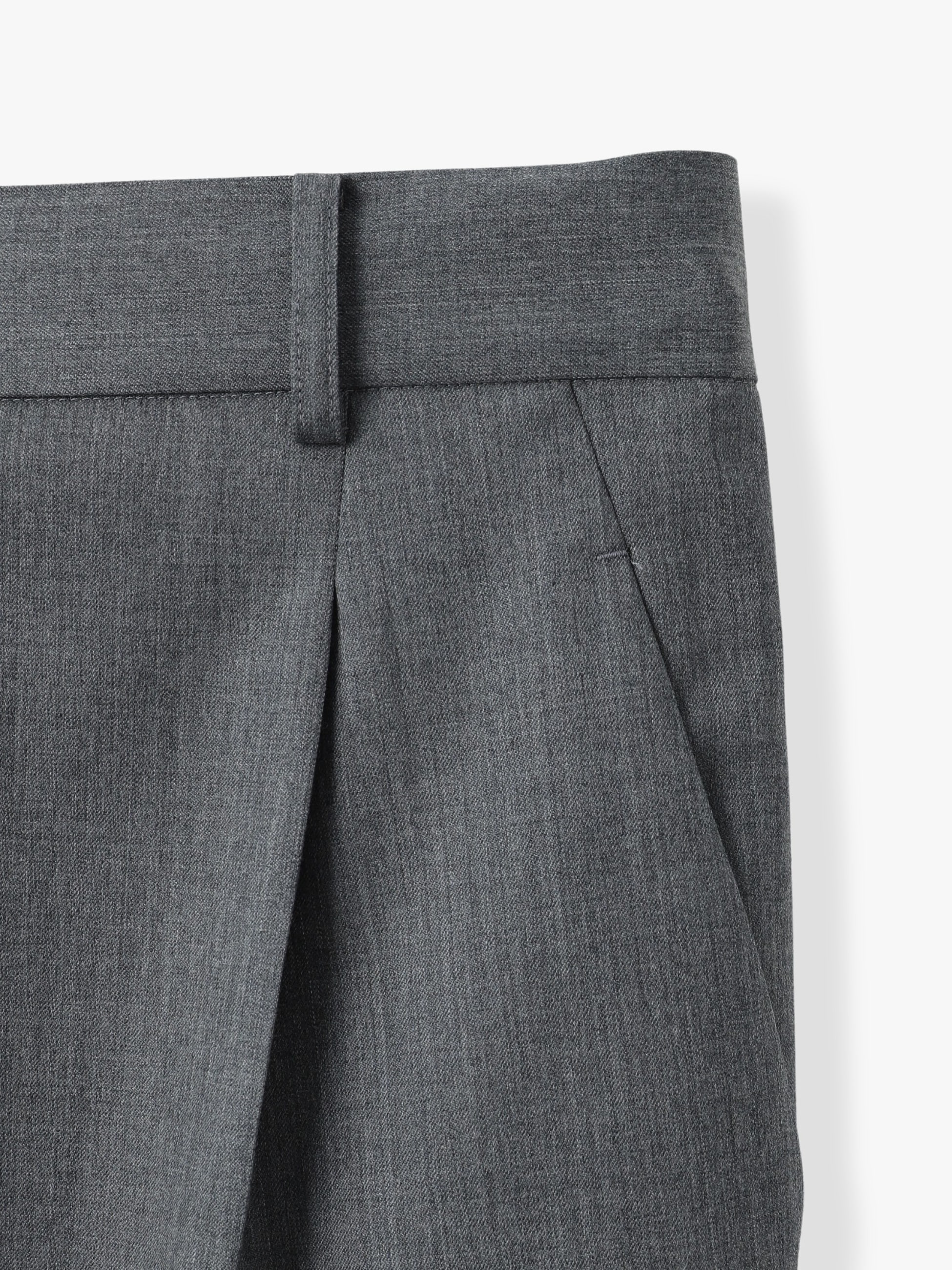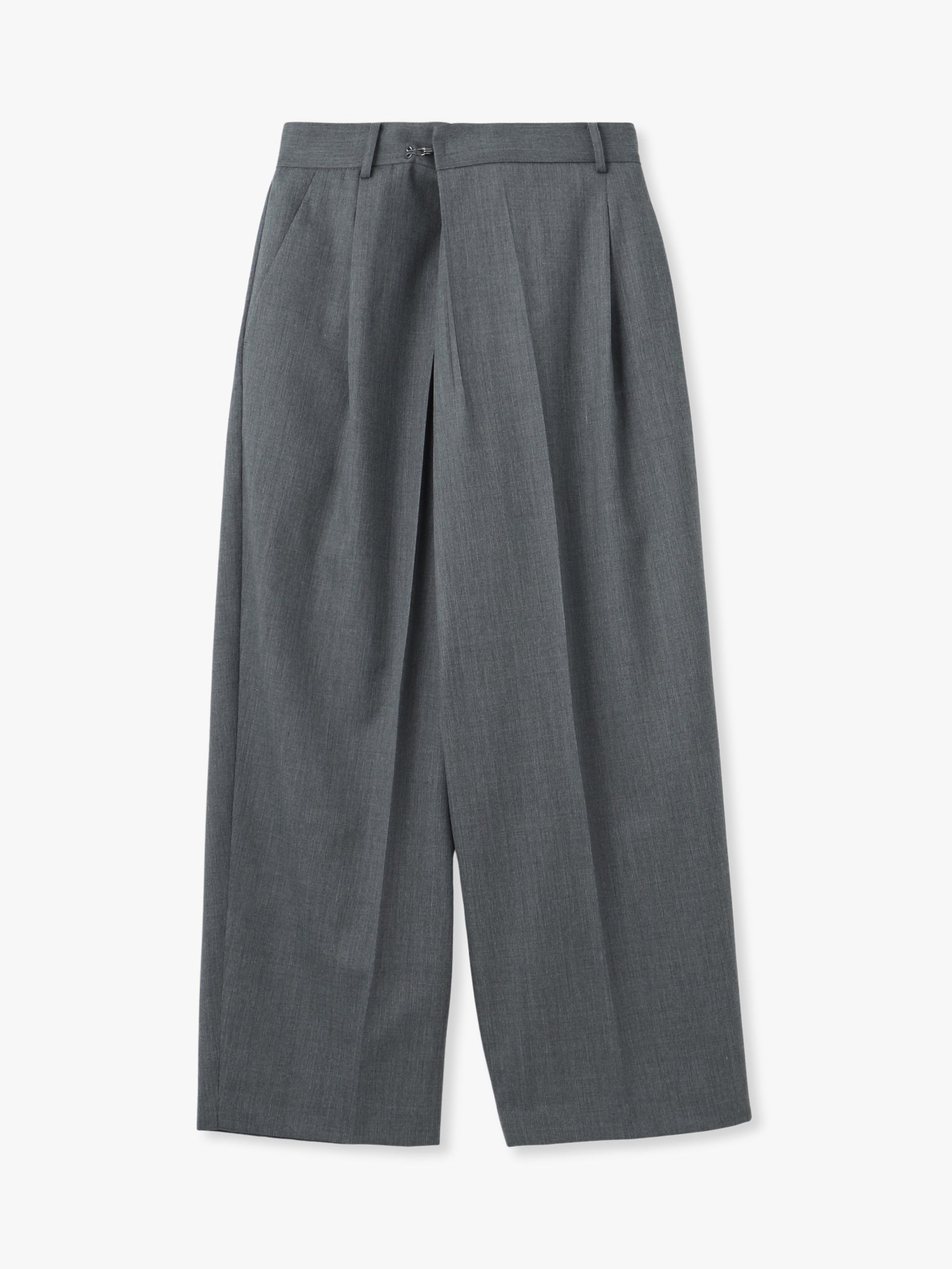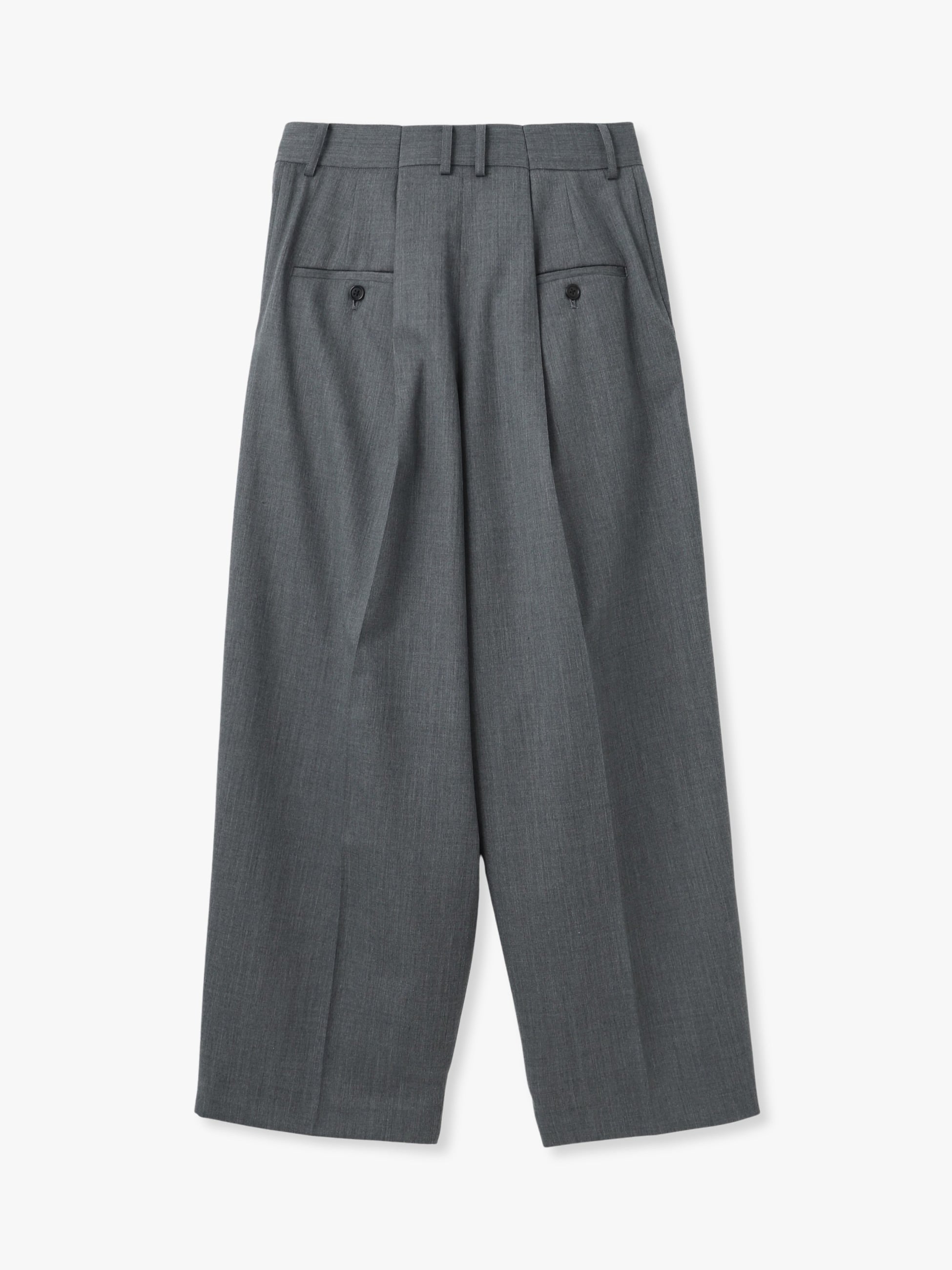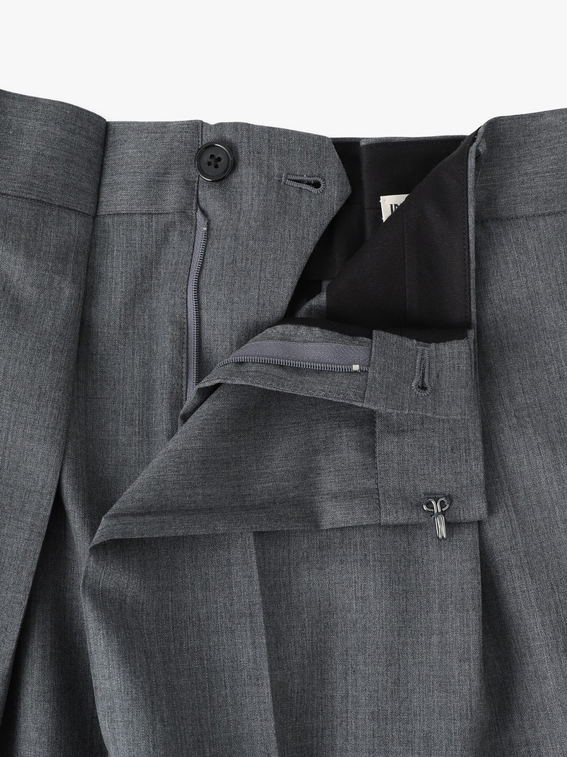 - トロピカルウールのINSCRIREオリジナルピンストライプ素材を使用したパンツは、ウエストをラップし、ホックで留めて着用することで裾に向けて出る美しいドレープが特徴です。SUPER140の糸を使用したコンパクトツイルがさらっとした肌触りで、シワになりにくくシルエットをキープします。軽く、通気性に優れているため夏にも快適な着心地で、シーズンレスで活躍します。