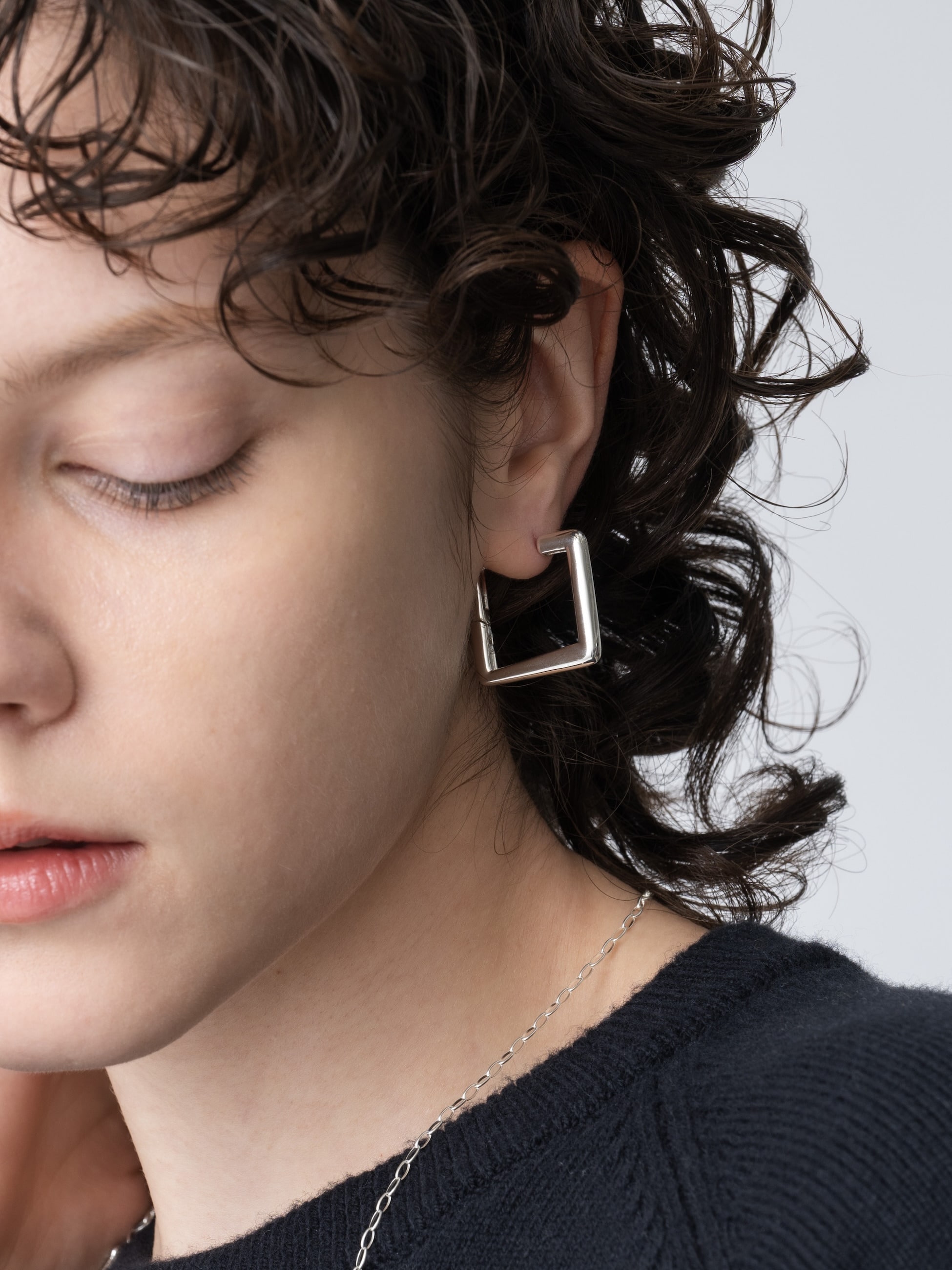 - スクエアフォルムのピアスは、360度美しいクリップホールドタイプで、ふっくらとしたラインとボリューム感が楽しめます。綺麗めからカジュアルまで幅広いコーディネートをカバーし、より印象的なスタイリングを演出します。