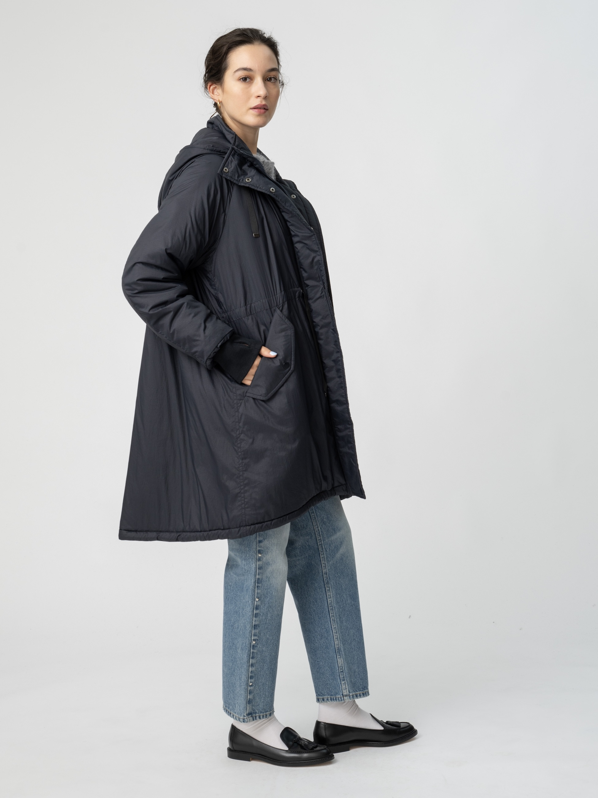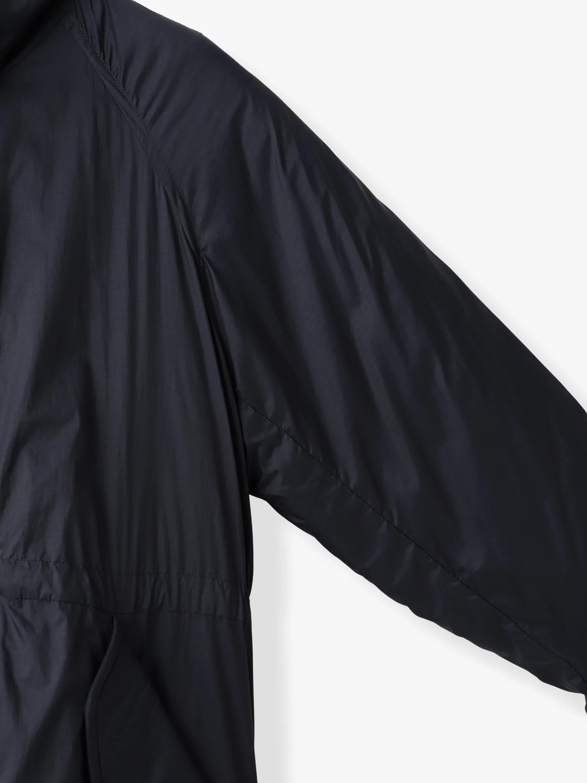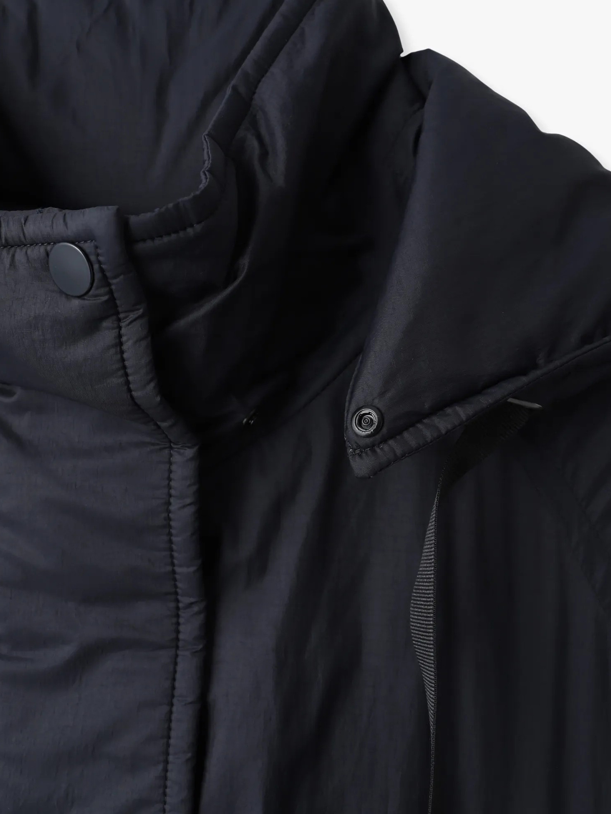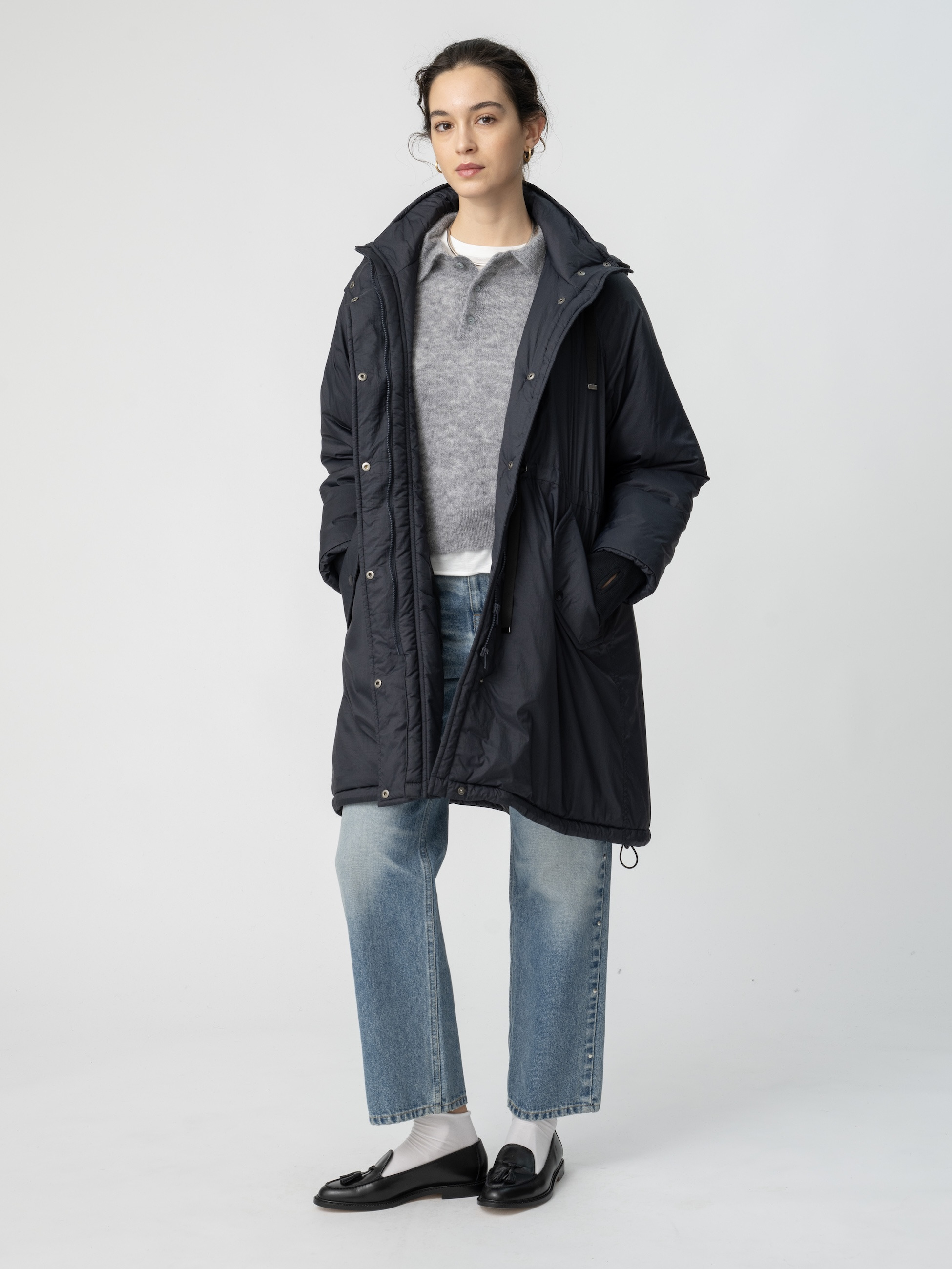 アクティブウェアを展開するRANGE OF LIGHT(レンジオブライト)から、廃漁網100%のリサイクルナイロン、netplus素材を使用した極軽リップストップ生地の中綿ロングコートが登場です。ハンドウォーマーにもなるポケットも施し、見た目にもあたたかく、裾のドローコードを絞り、丸みのあるシルエットに変化をさせるのもおすすめです。
