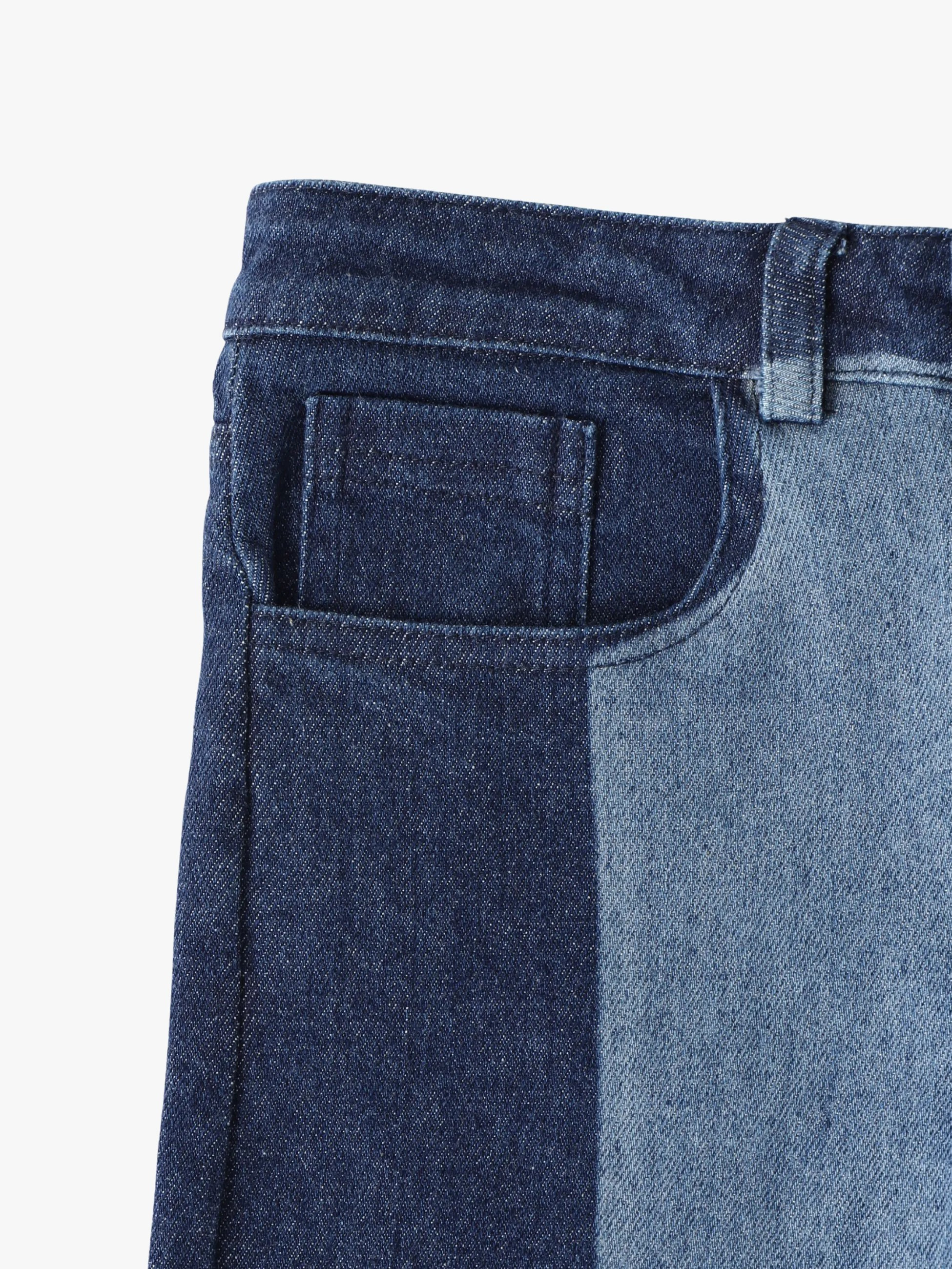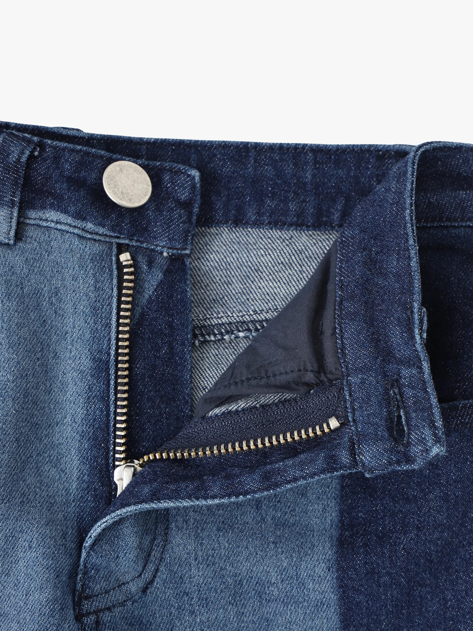 パネルデザインが特徴的なパンツは、すっきりとしたフォルムにほどよい遊び心を添えています。ストーンウォッシュ加工によってデニム素材に自然な風合いが生まれ、こなれ感を演出します。ストレートシルエットがスタイリッシュな印象を与え、シンプルなトップスと合わせるだけでコーディネートの主役になります。