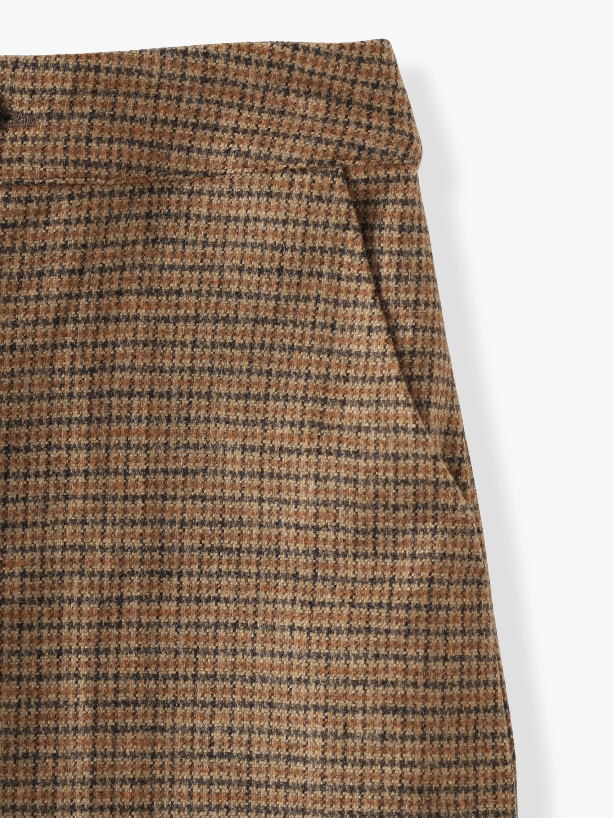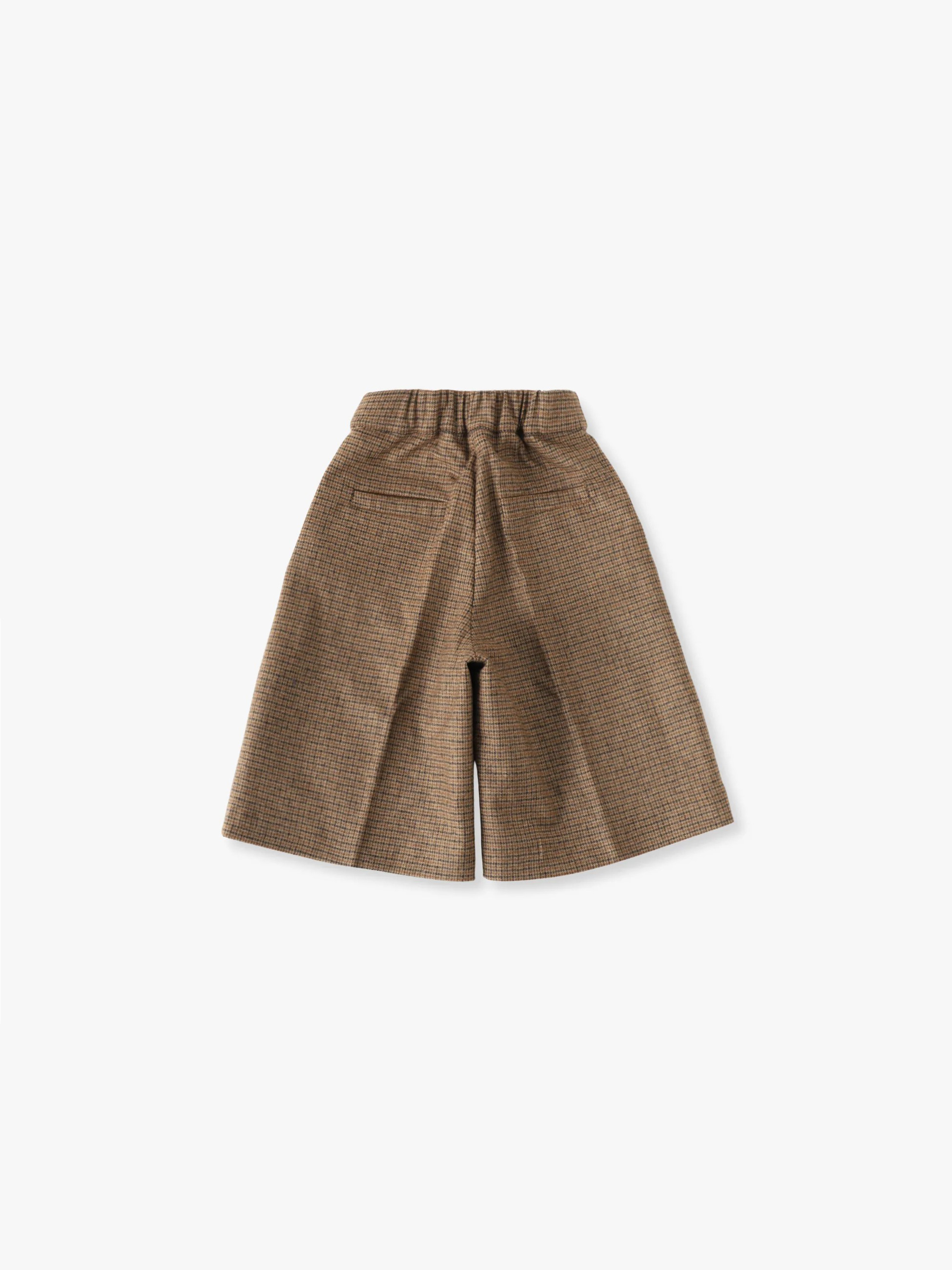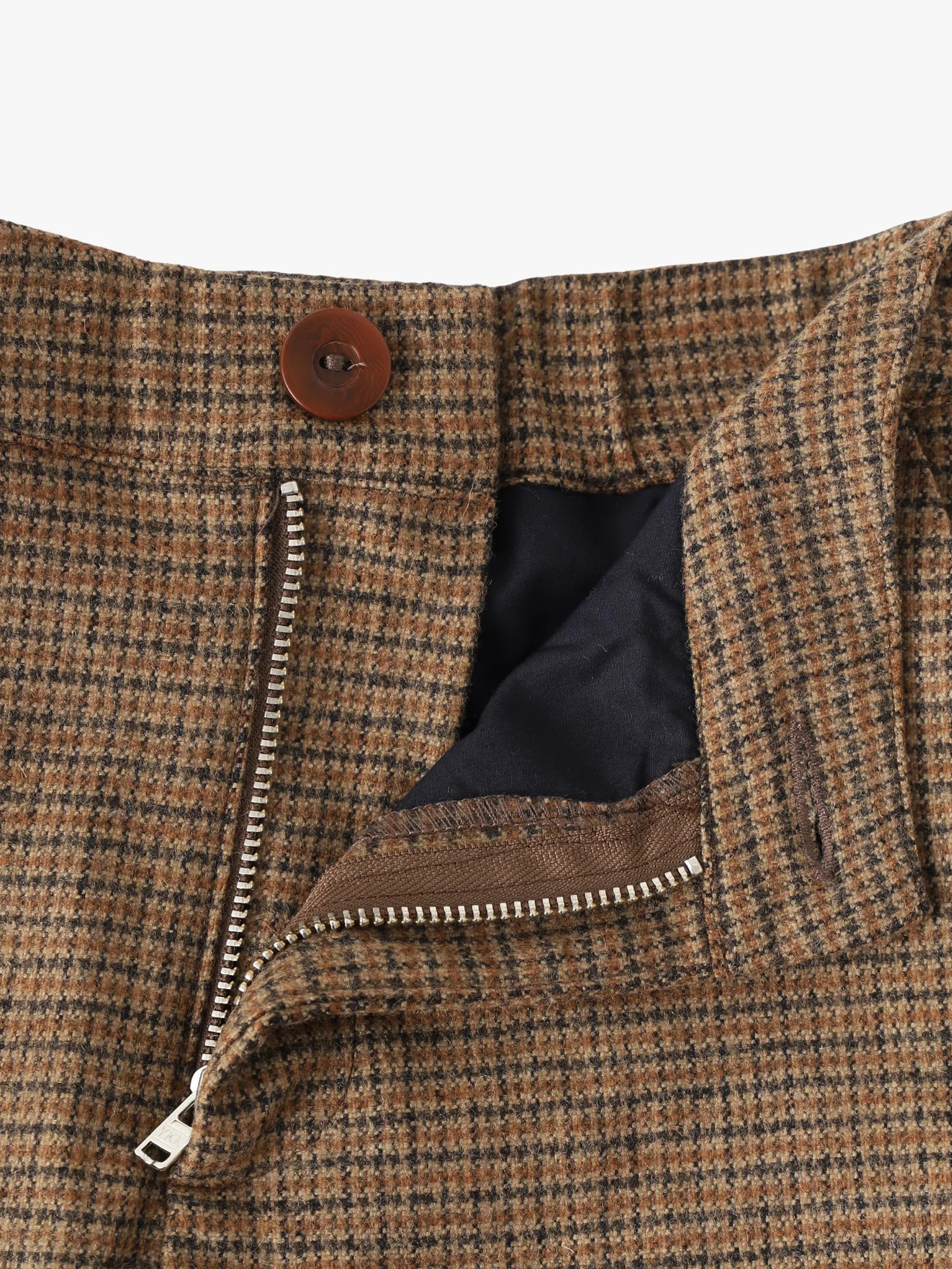 クラシックな千鳥格子柄のパンツは、上品さと遊び心を兼ね備えた一着です。ミドルウエストでストレートラインの膝丈シルエットがスマートな印象になります。寒い時期はタイツやレギンスを合わせて、季節感のあるコーディネートを楽しめます。フォーマルにもカジュアルにも活躍する万能なアイテムです。