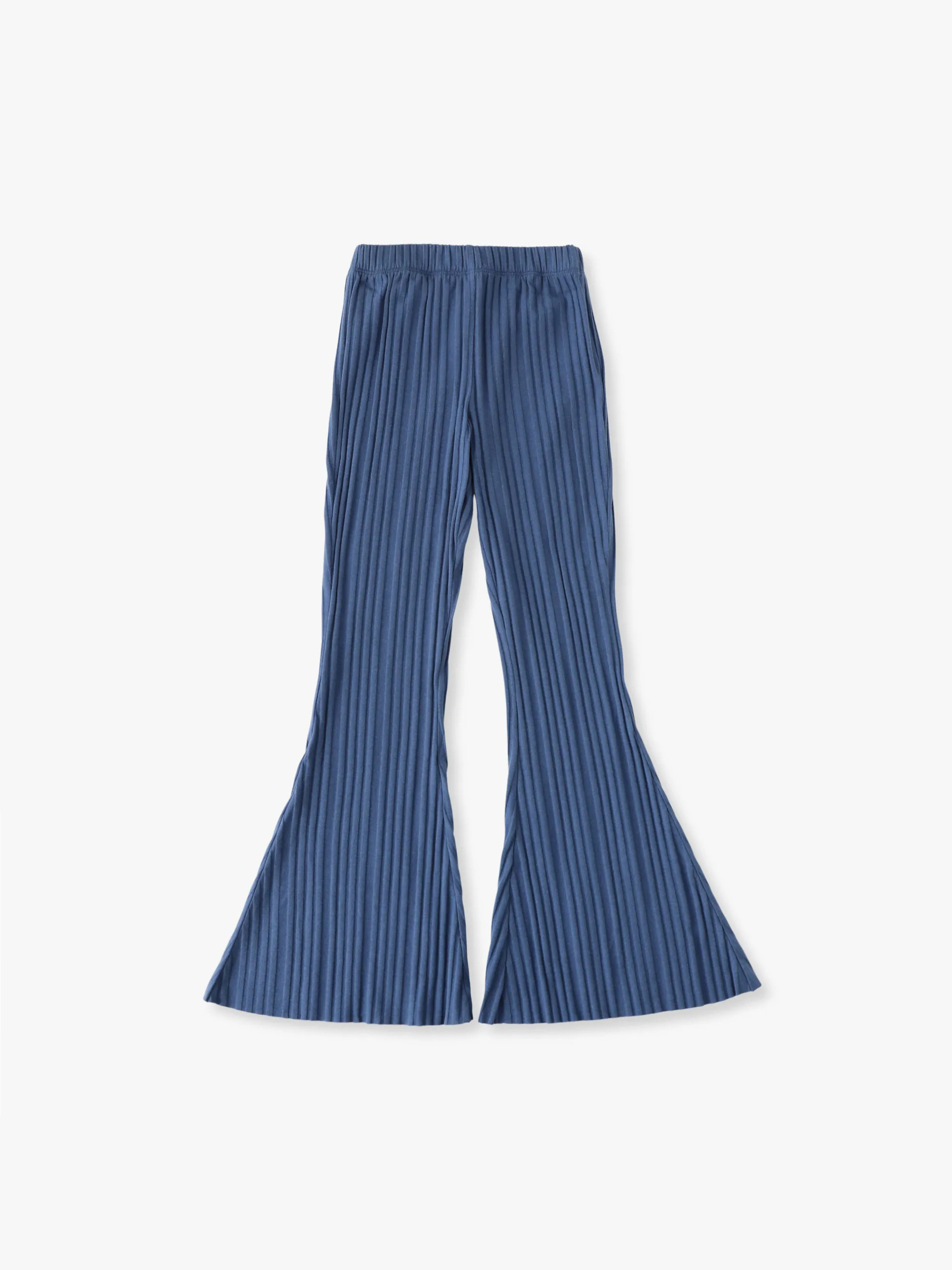 ウルトラワイドなシルエットが特徴のリブパンツは、動きやすさとスタイルを両立した一着です。コットンリブ素材を使用し、やわらかな肌触りとほどよい伸縮性を備えています。ウエストはゴム仕様で着脱がしやすく、快適なフィット感です。先染めによる自然な色合いが、シンプルながらもこなれた印象を演出します。