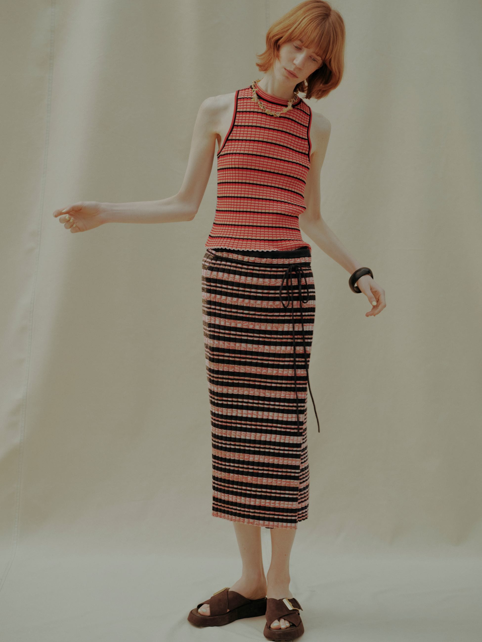 - Waste Yarn Projectとロンハーマンの別注スカートが登場です。コレクション展開のあるニットの巻きスカートをベースに、1枚でさらっと着用しやすいよう重なりを深く調整、結んで固定ができる紐を内側にあしらいました。Waste Yarn Projectらしい遊び心のあるカラフルなカラーリングが気分を上げ、パンツの上から巻いたレイヤードスタイルもお楽しみいただけます。