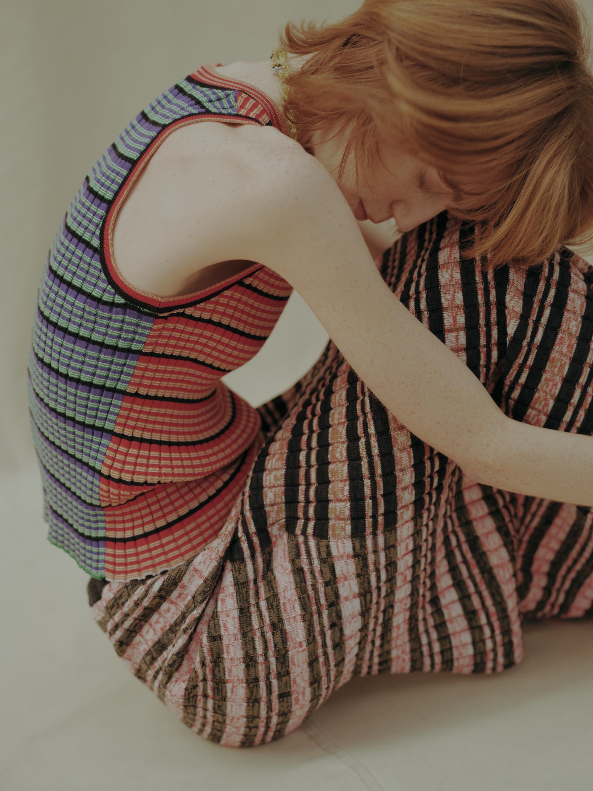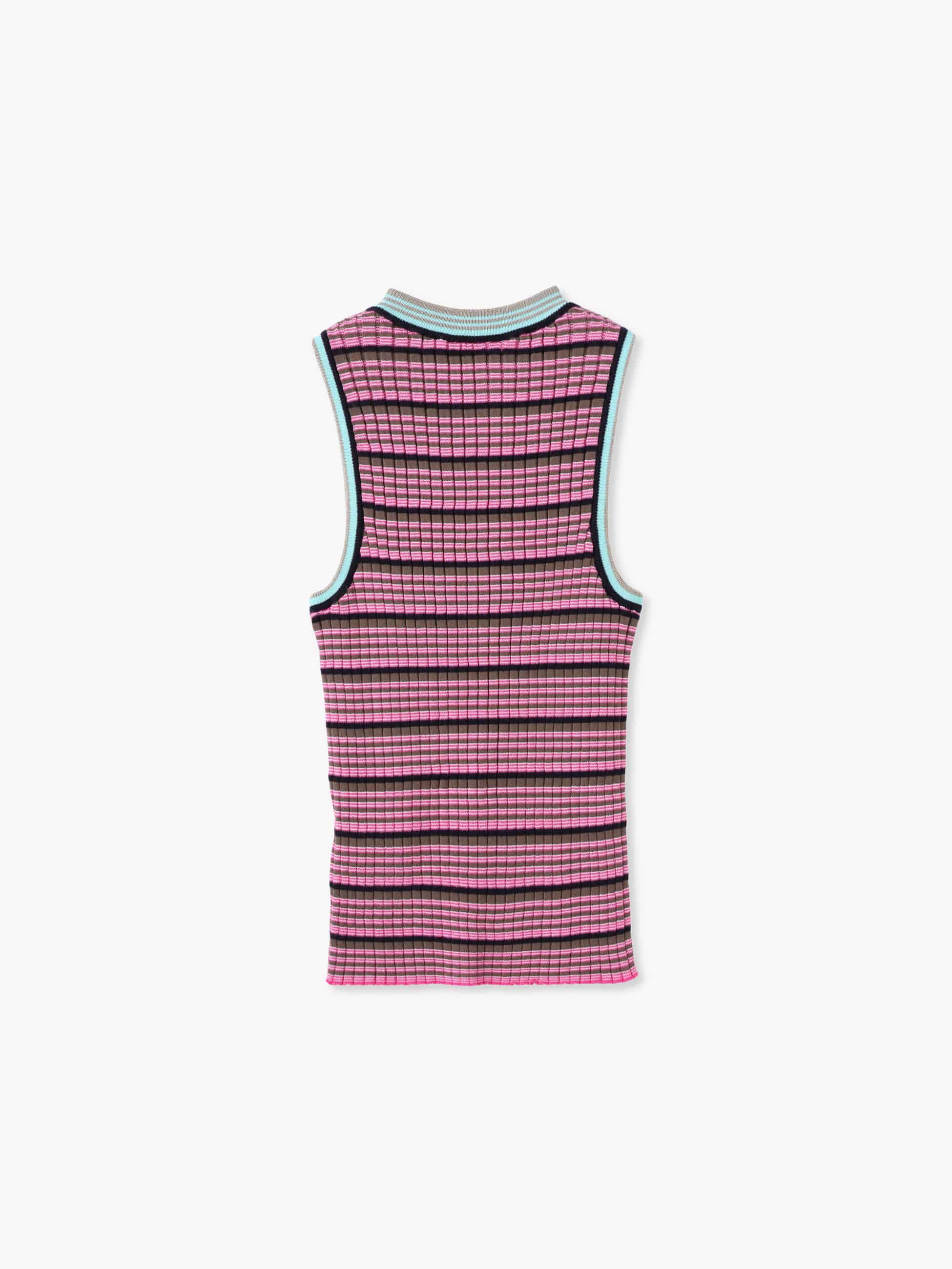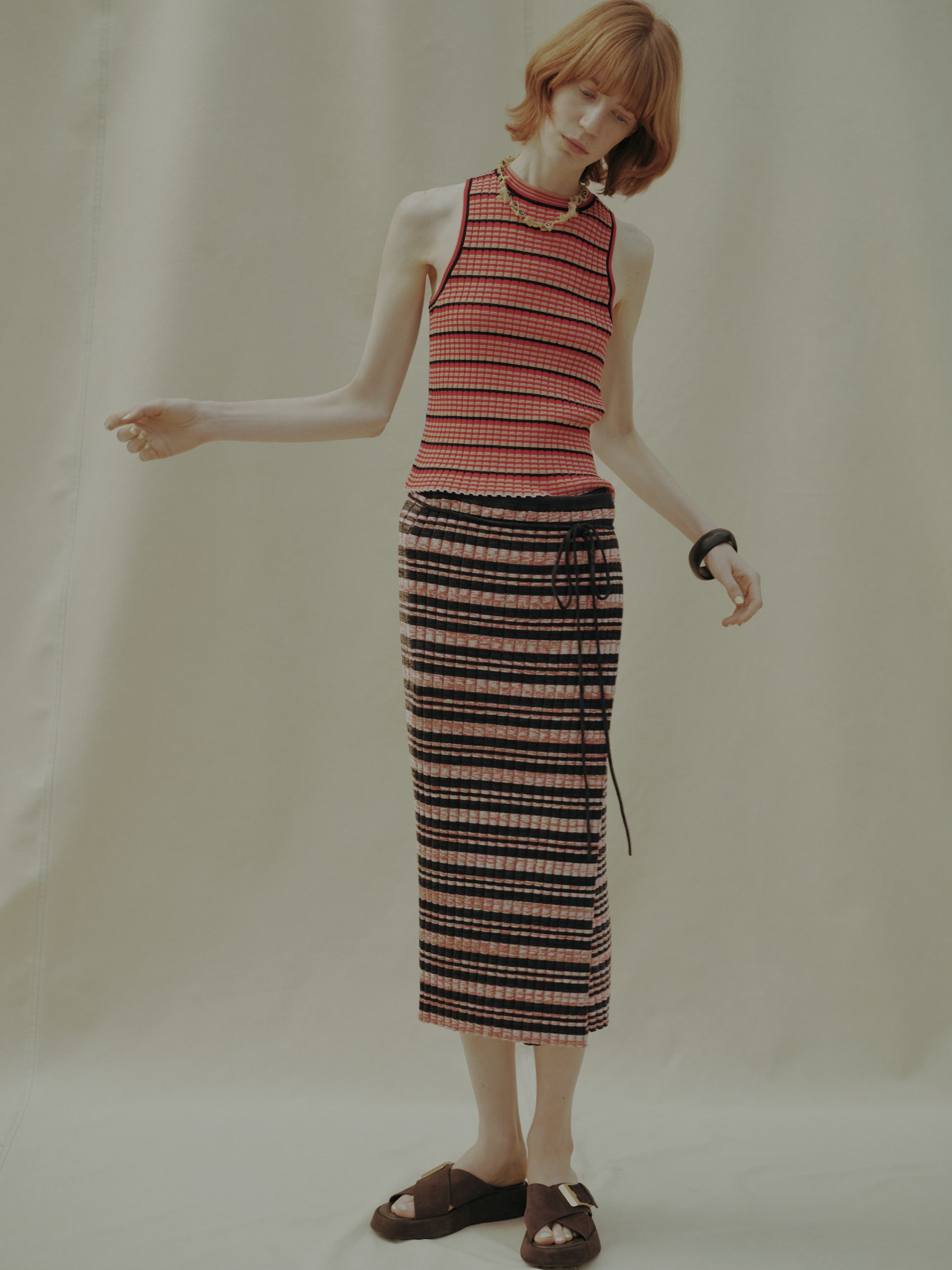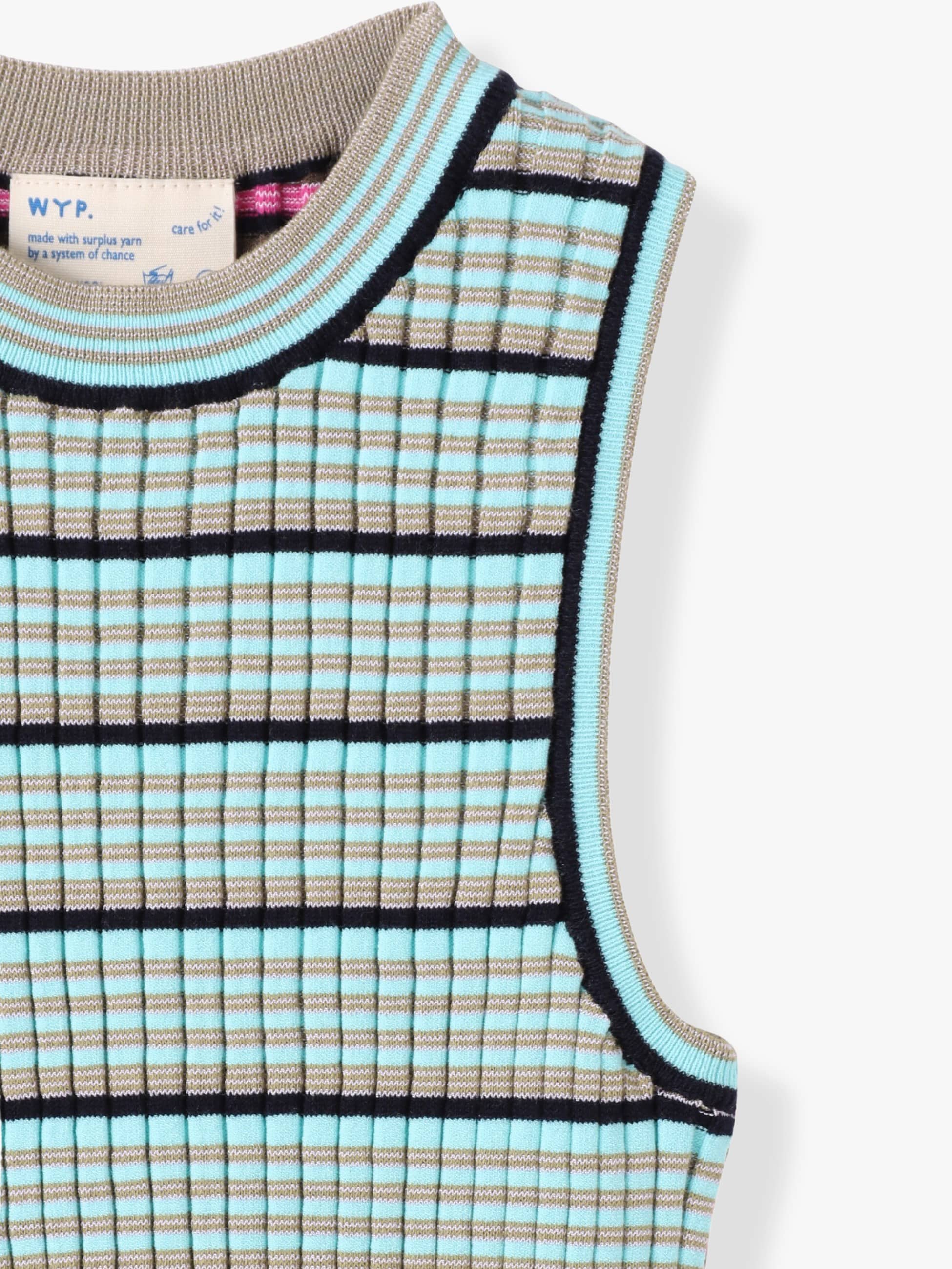 前後でカラーが配色になったタンクトップは、スリムフィットなシルエットと柔らかな着心地で、1枚でヘルシーに着ても、オーバーオールなどのインナーとしても素敵にスタイリングいただけます。さまざまなカラーの糸が織りなす、Waste Yarn Projectらしいデザイン性とストーリー性をぜひお楽しみください。