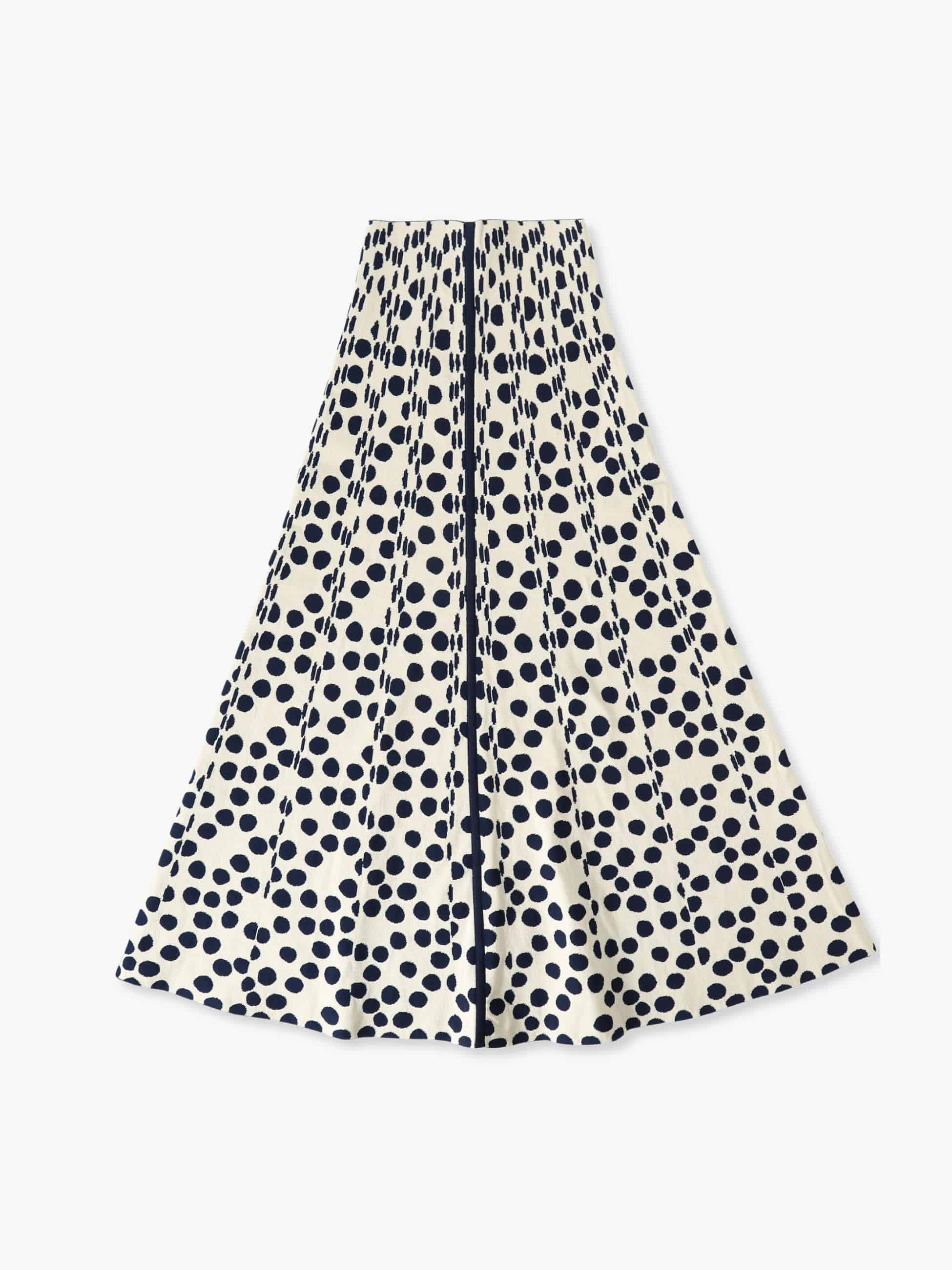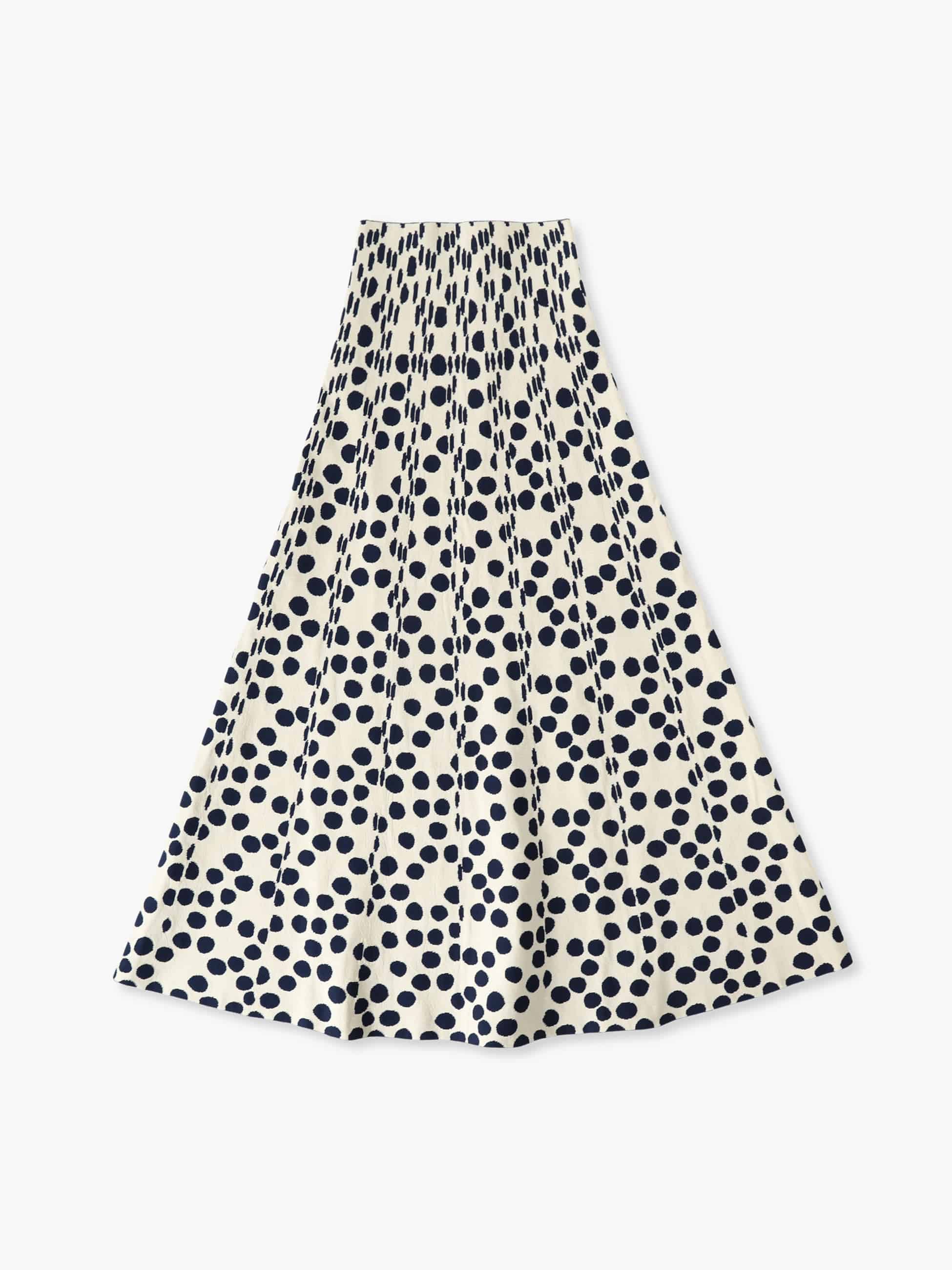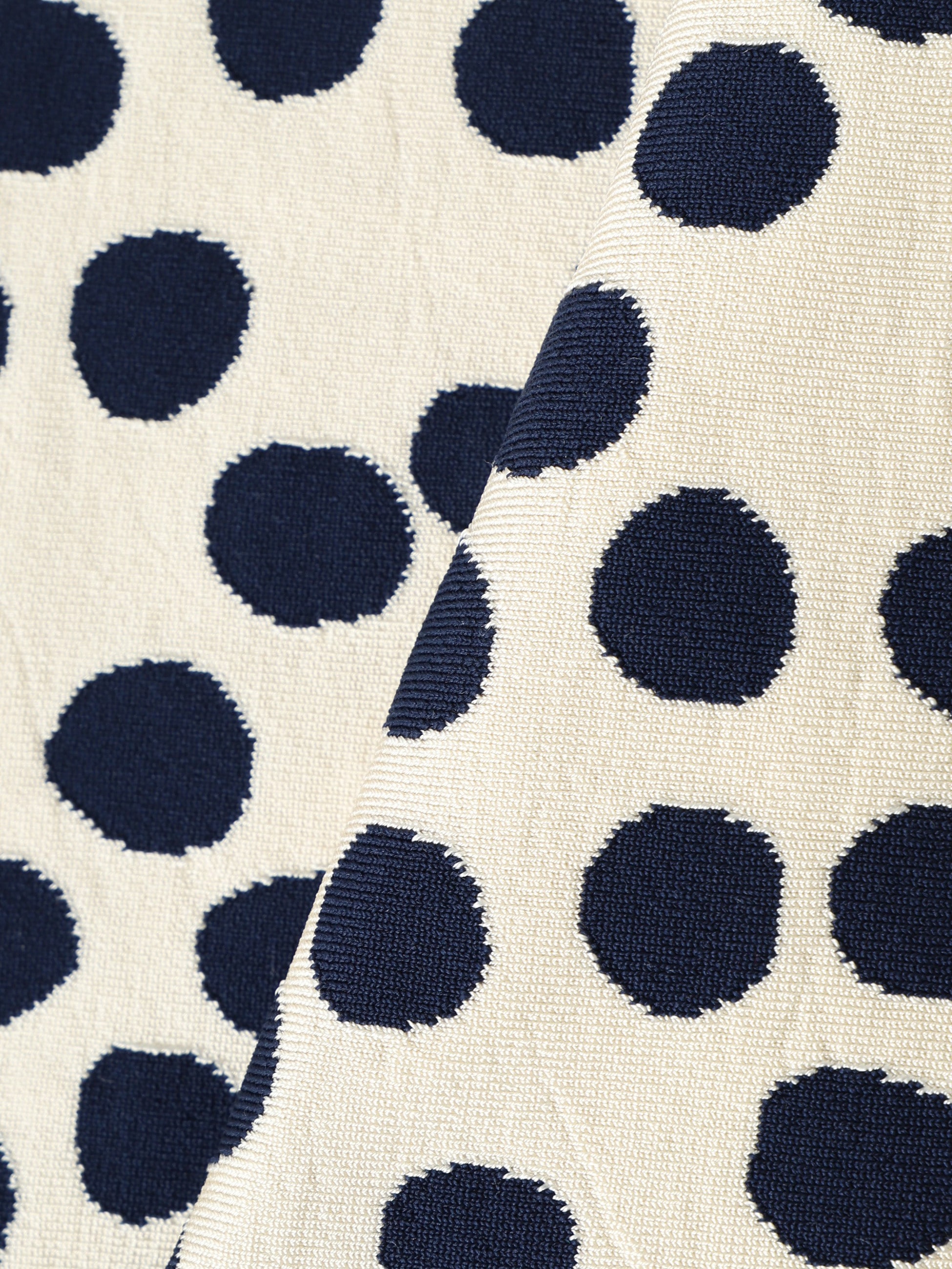 - ドット柄が目を惹くニットスカートは、美しいAラインシルエットが優美な印象で、伸縮性のあるウエストバンドが快適な着心地をキープします。リバーシブルで着用でき、もう一面はネイビー地にアイボリーのドット模様が映える反転カラーで、シックな雰囲気に。カジュアルから洗練されたリゾートスタイルまで、様々な着こなしをお楽しみいただけます。