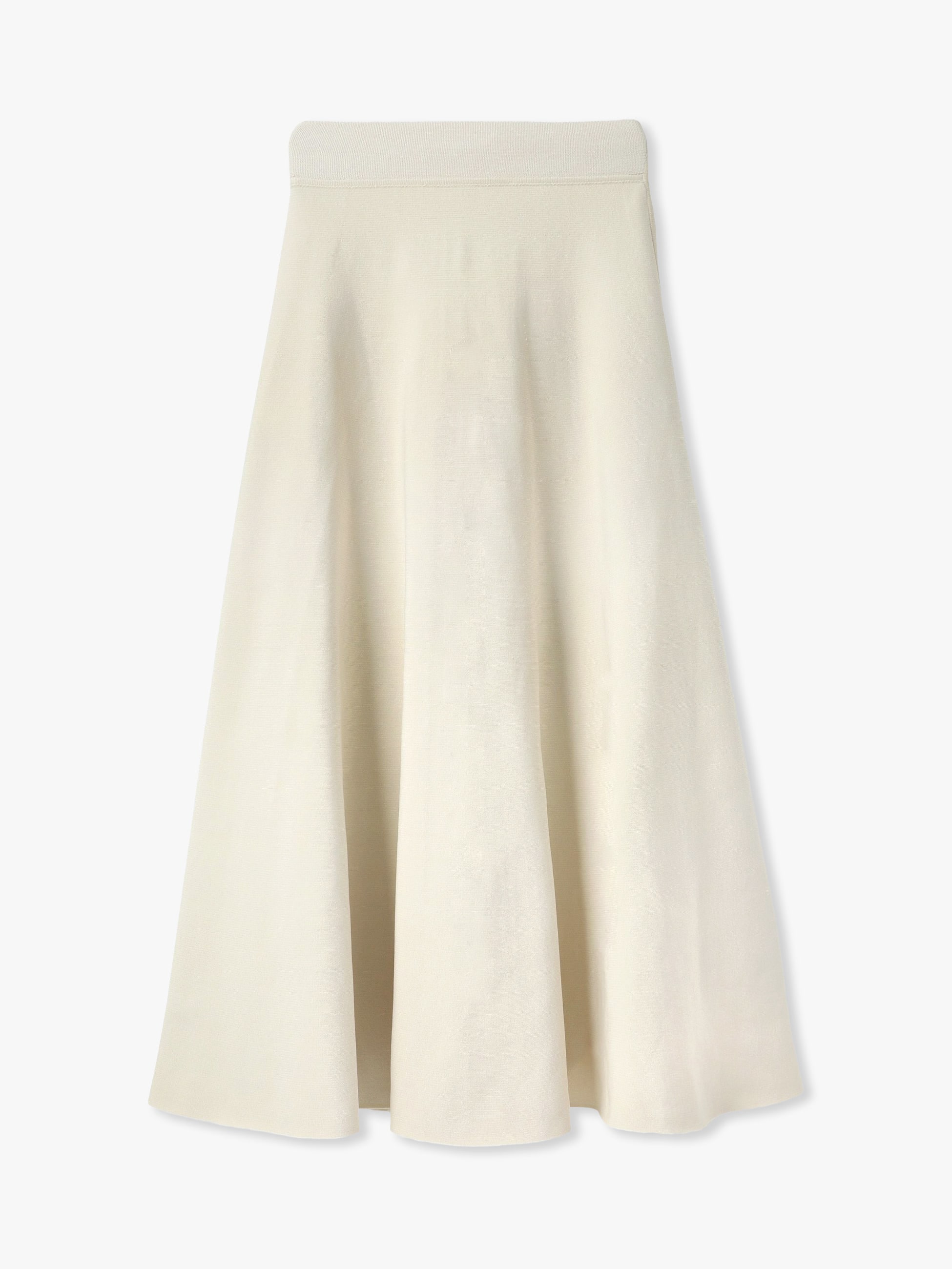 デニムの技法を用いて仕立てられた立体感のあるフレアスカートは、しっかりとした生地感が美しいシルエットを作り、オフホワイトの色味が軽やかな見た目を演出します。洗練されたシンプルさとエレガントを兼ね備えた1着です。