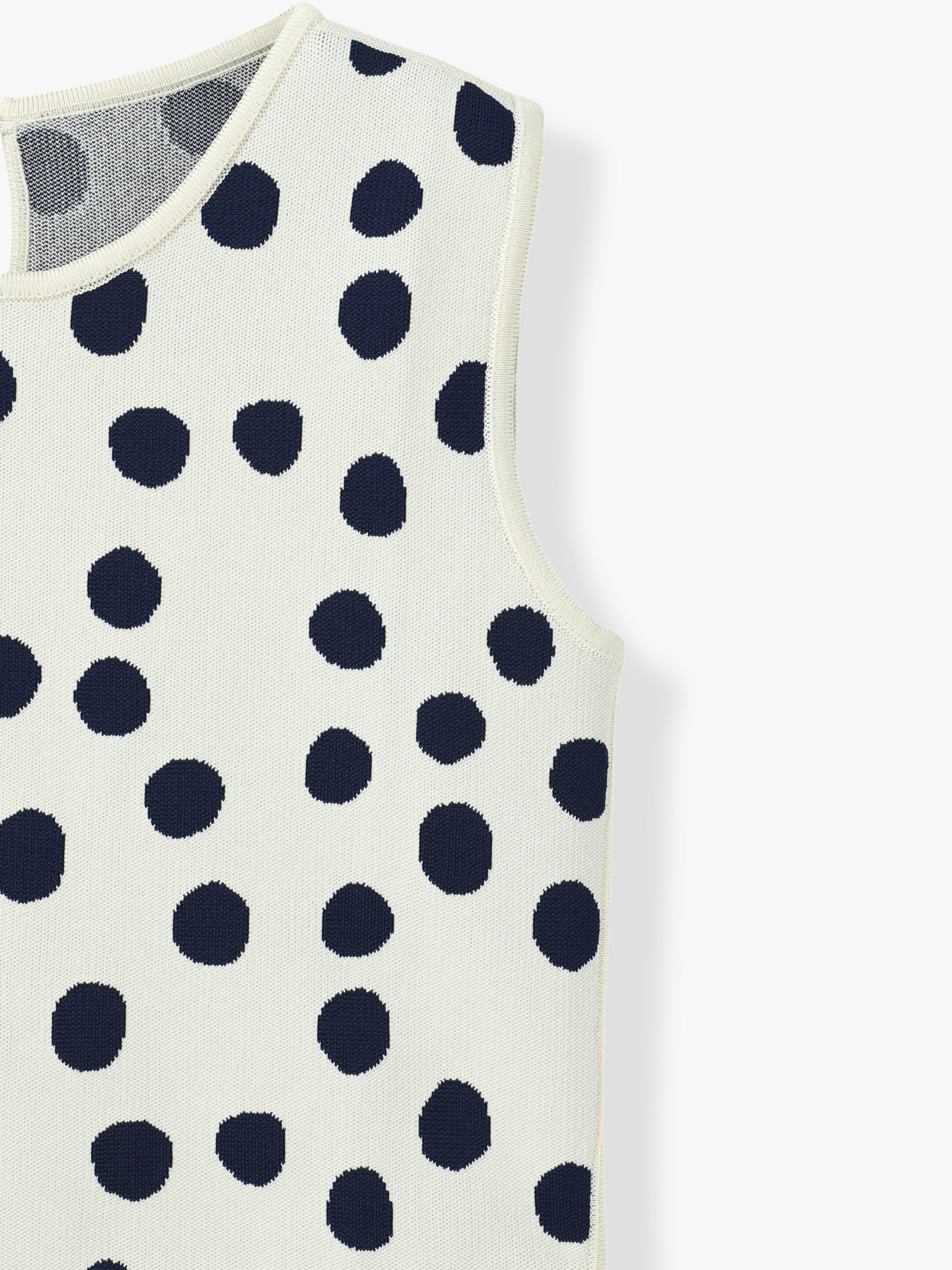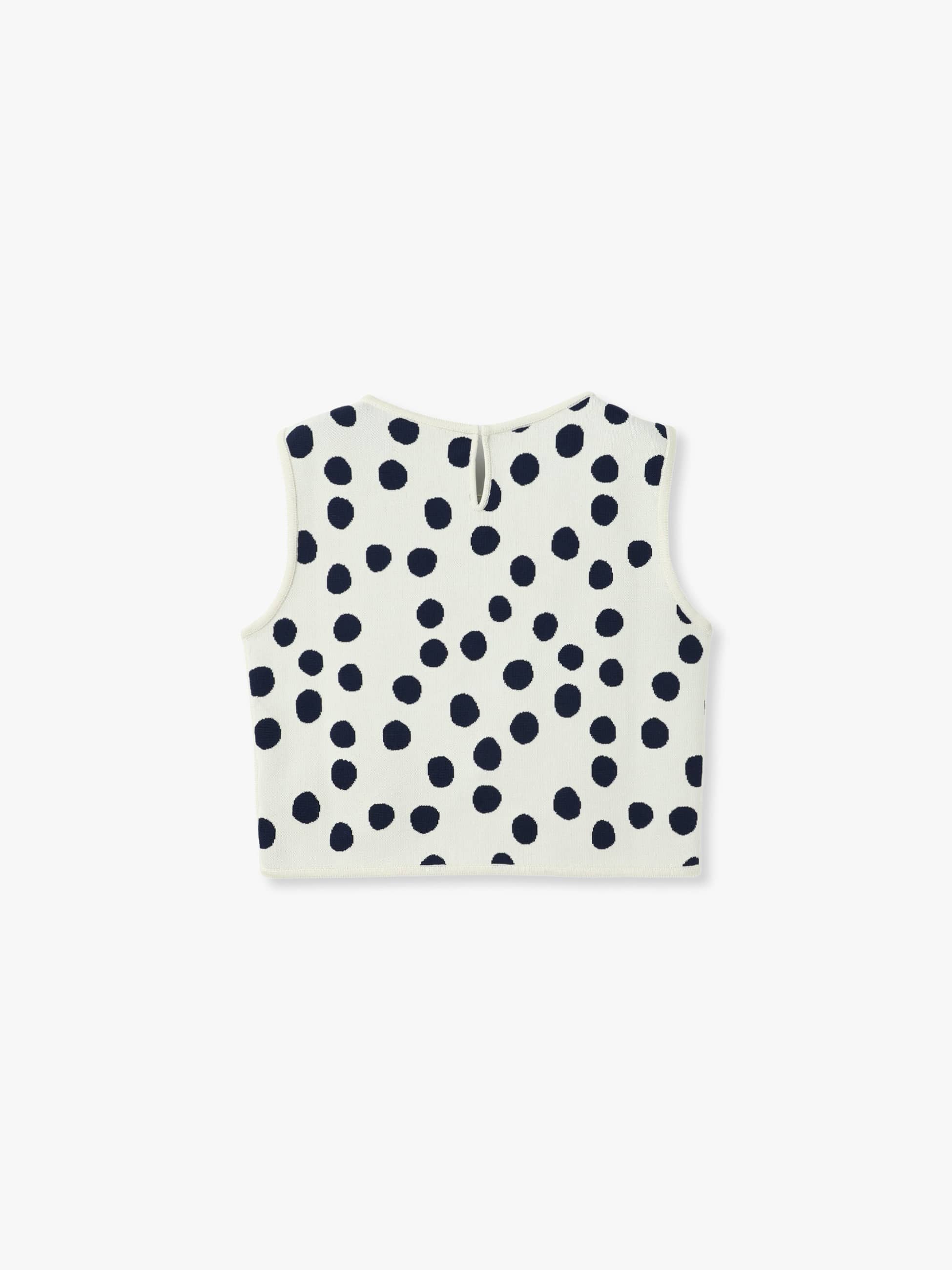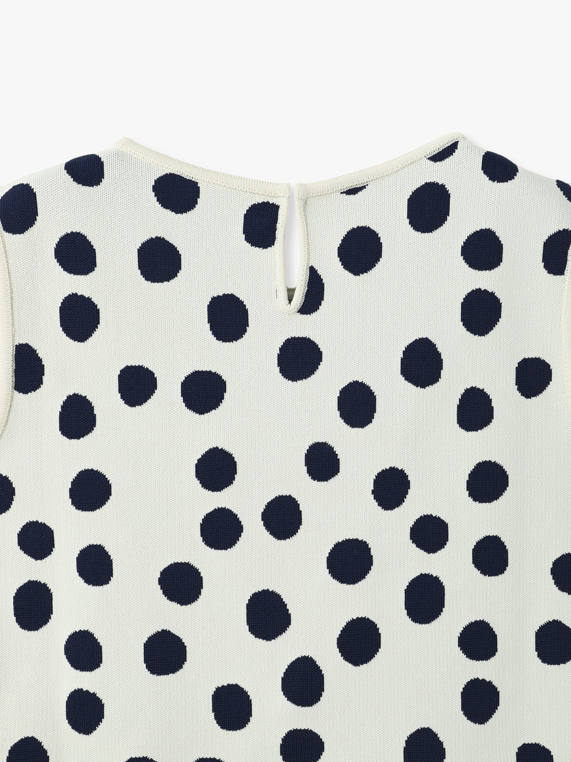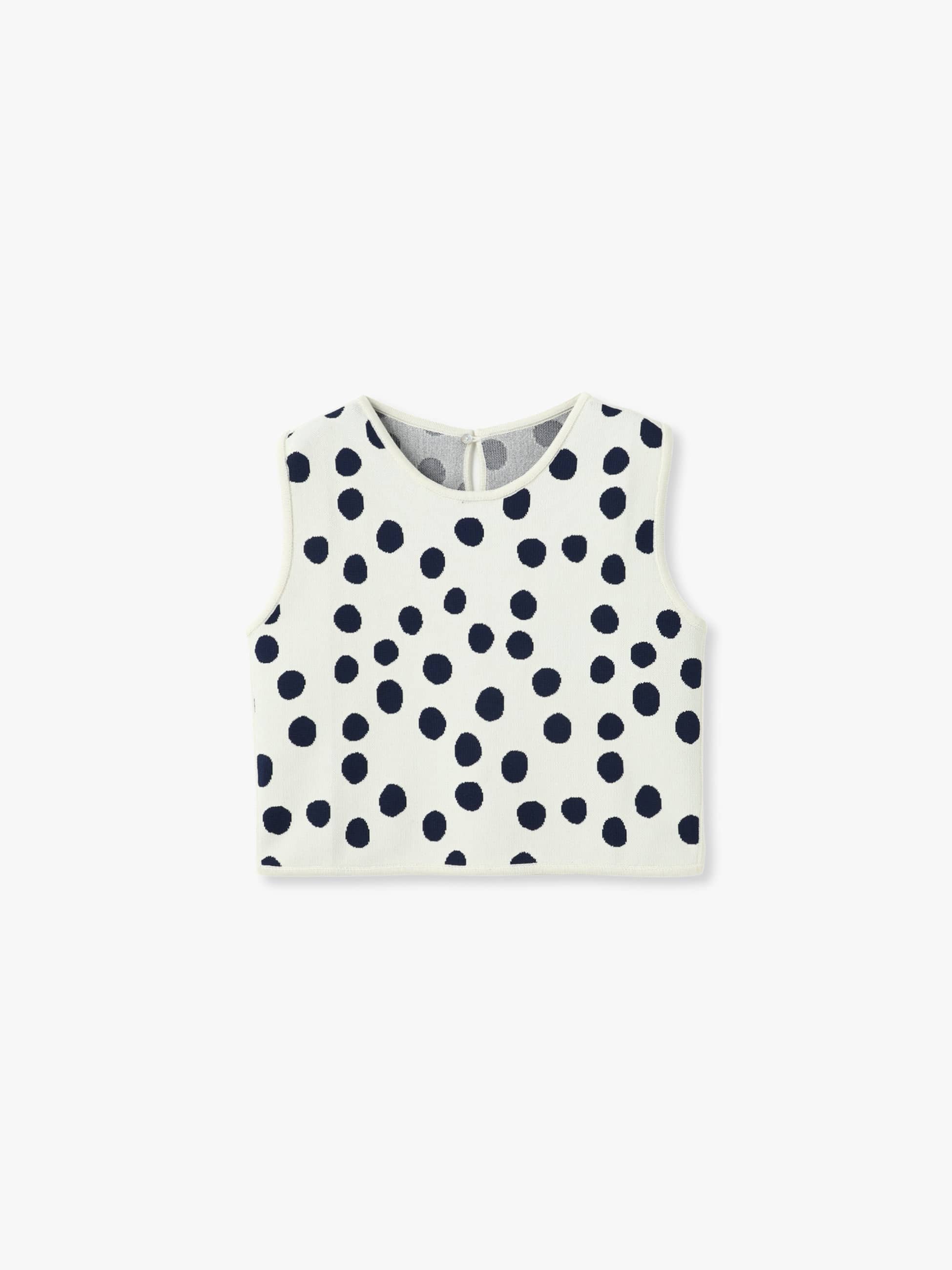 ドット柄が目を惹くスリーブレストップは、伸縮性を備えた柔らかな生地感で着心地が良く、すっきりとしたクルーネックとモダンなクロップド丈が大人のカジュアルスタイルの幅を広げます。