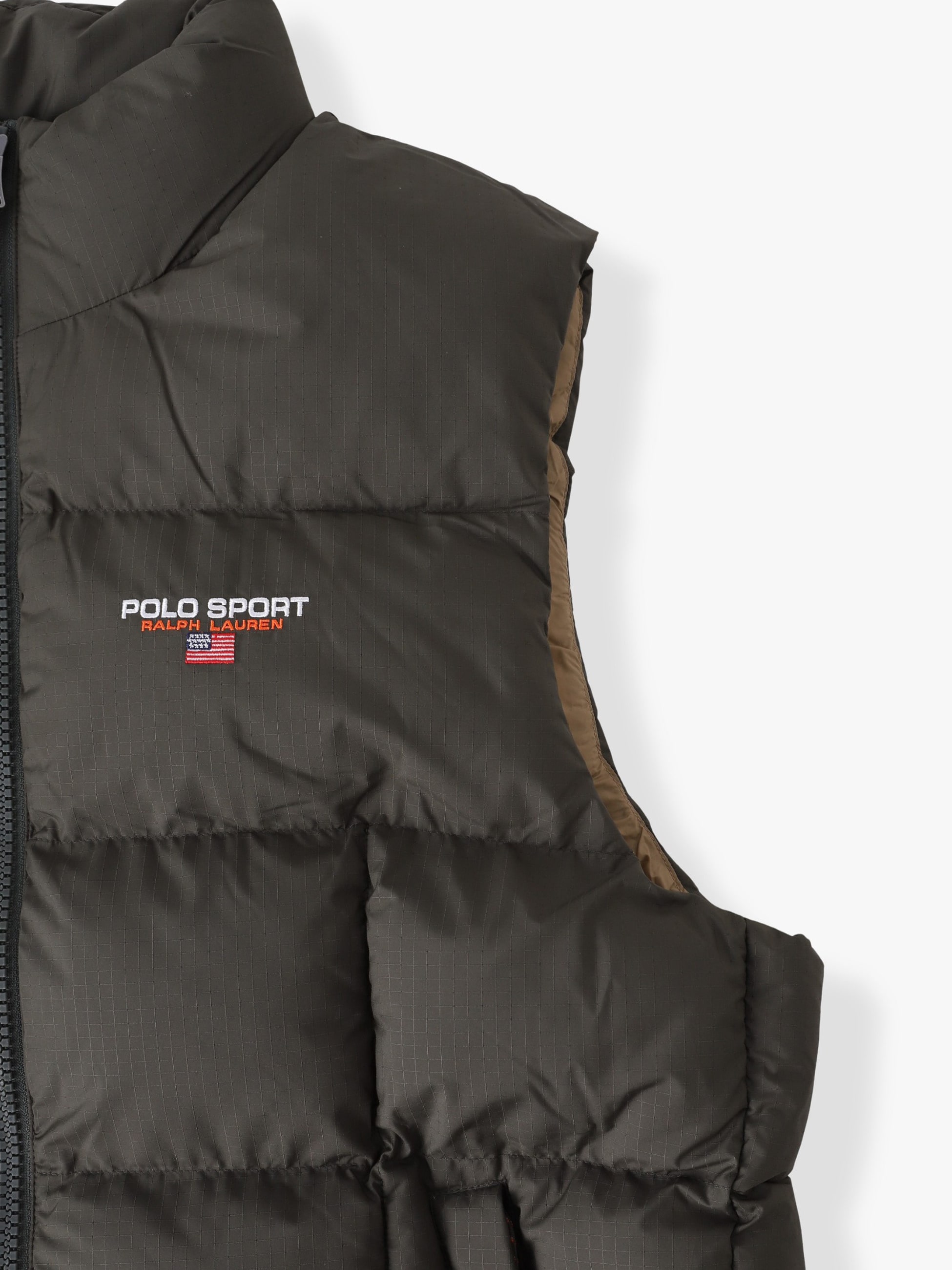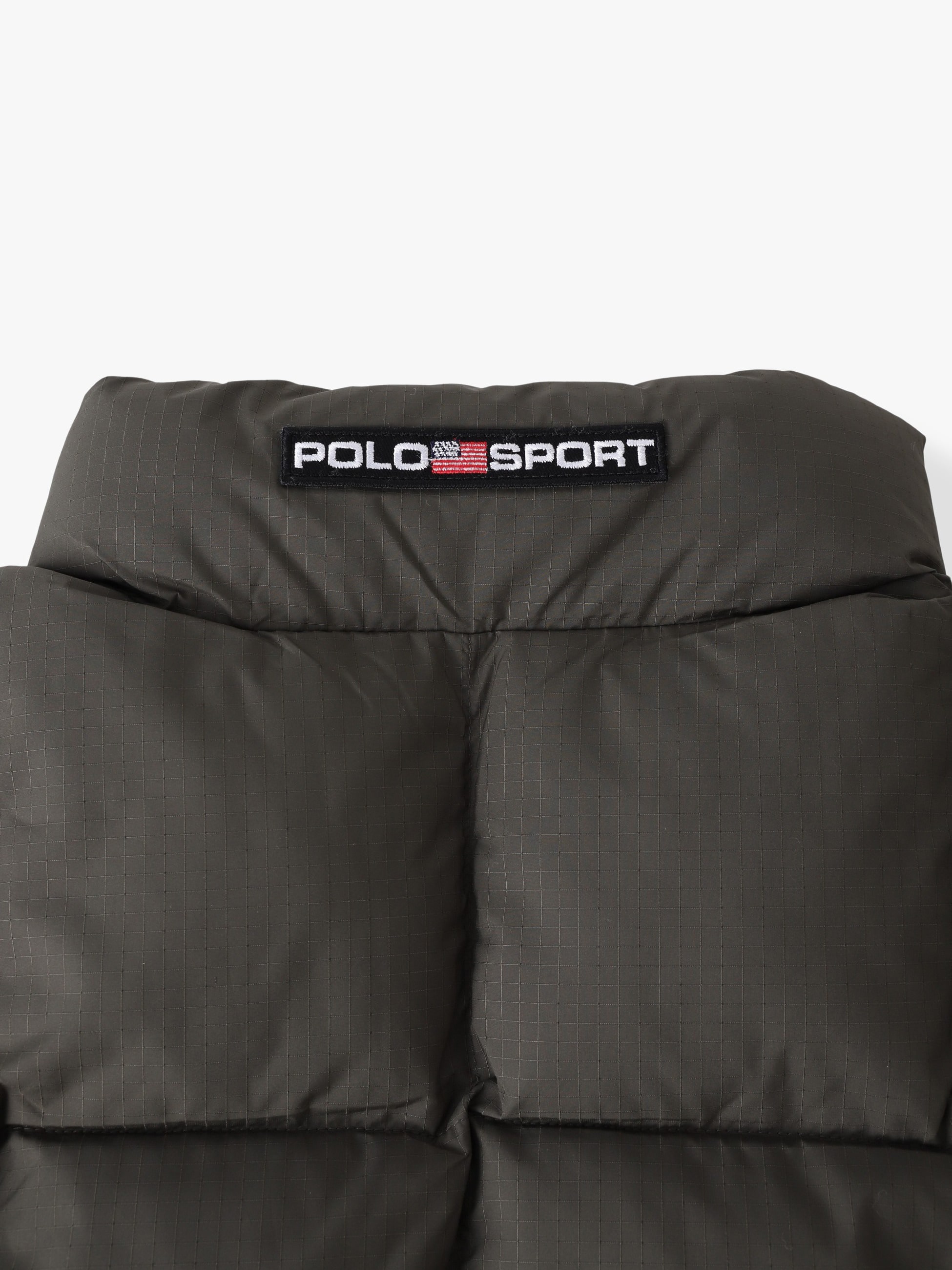 水をはじきやすいリップストップ素材を使用したインスレーテッドベスト。左胸に刺繍で施された1990年代の"Polo Sport"ロゴがアクセントになっています。また、中綿を配した優れた保温性も魅力のひとつ。すっきりとしたレギュラーフィットは、デイリーユースしやすい一着です。