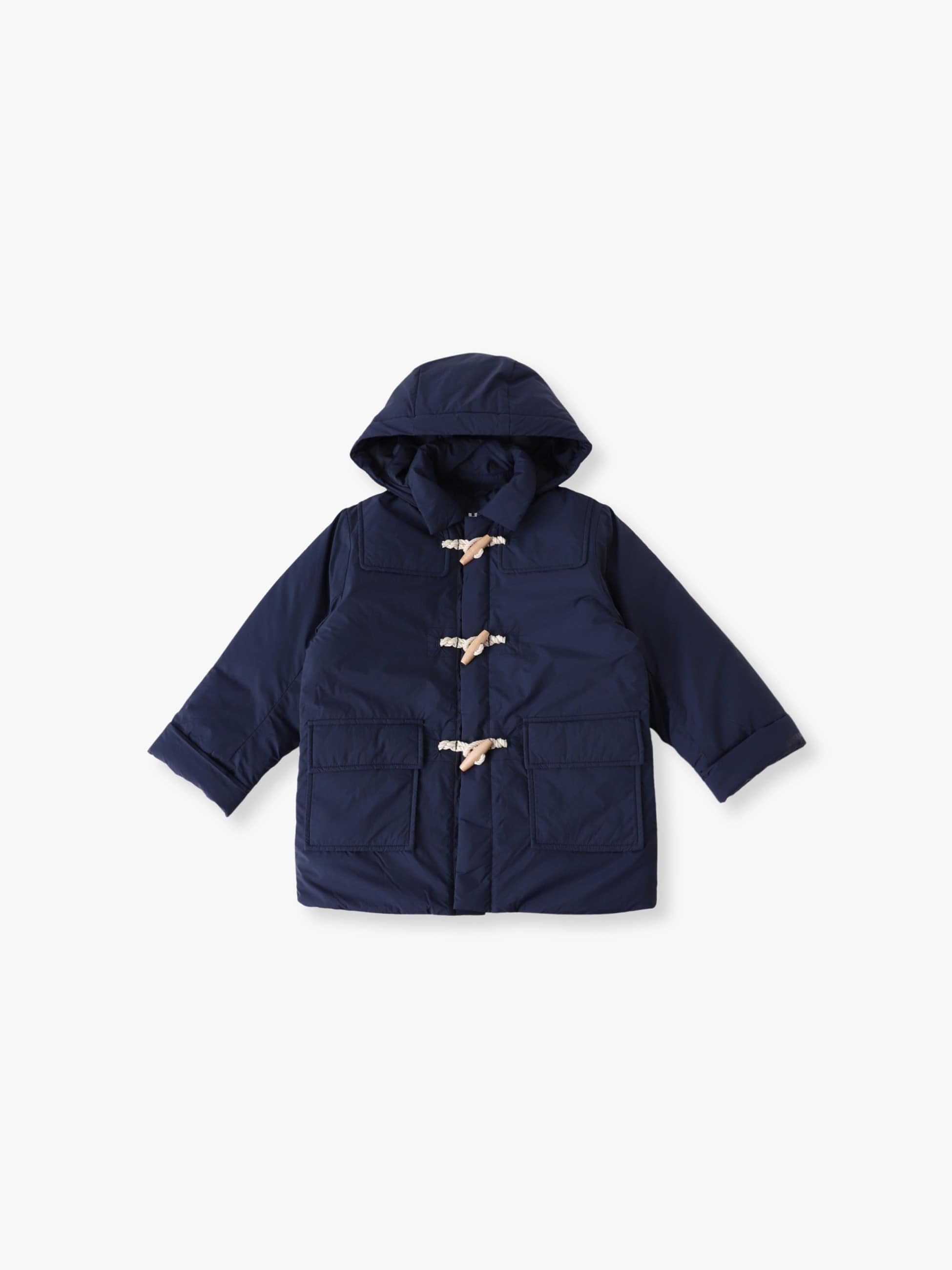 オーセンティックなマリンスタイルを取り入れたダッフルコートは、軽量で快適な着心地です。表地には防風・はっ水性のあるリサイクルナイロンを使用し、中わたにはふんわりと空気を含んであたたかさを保つ「かさ高性」に優れた素材を採用しているため、寒い季節もあたたかく快適な着心地です。袖のサイズ調整やリフレクティブワッペンなど、機能面も充実した一着です。