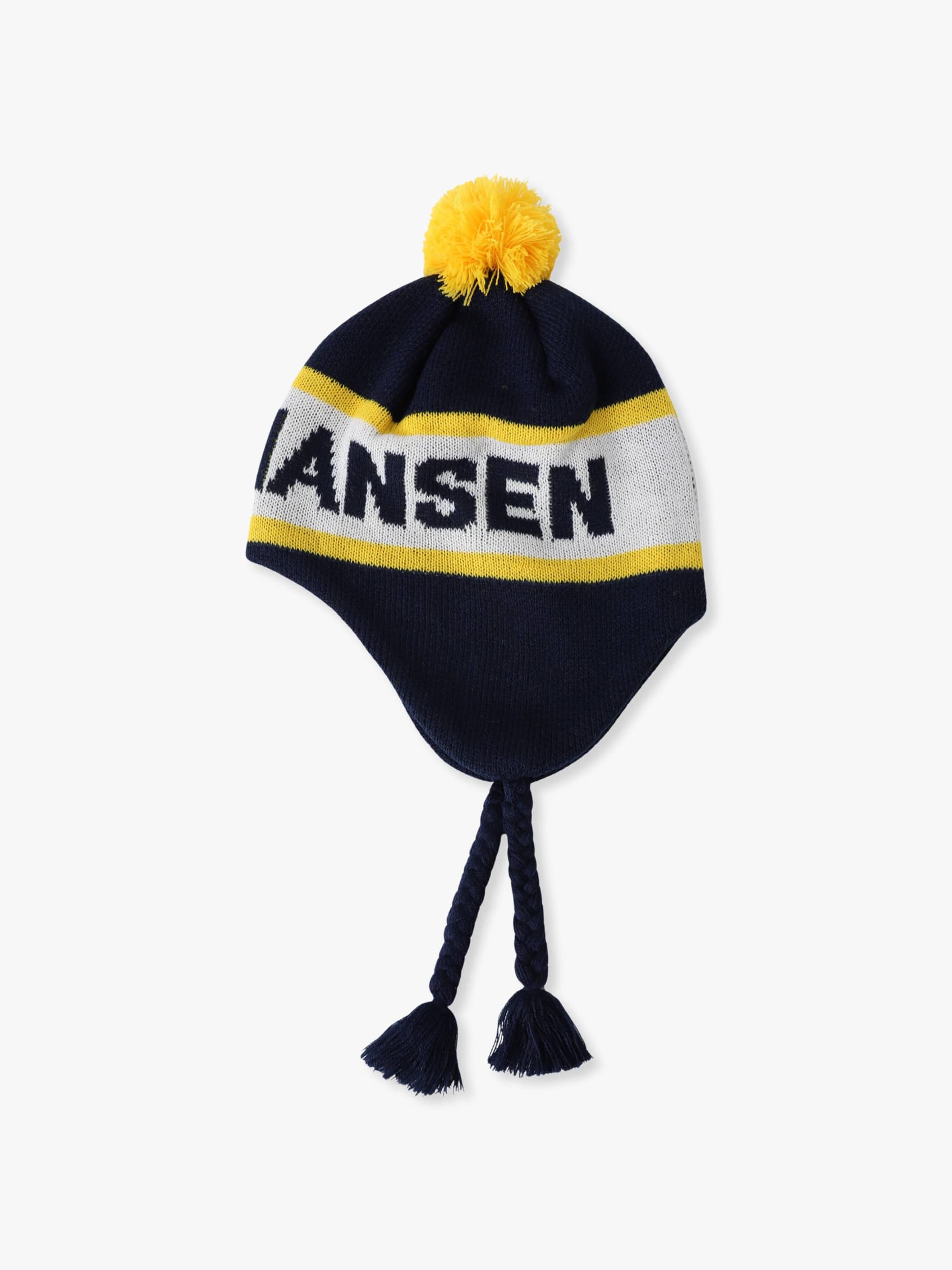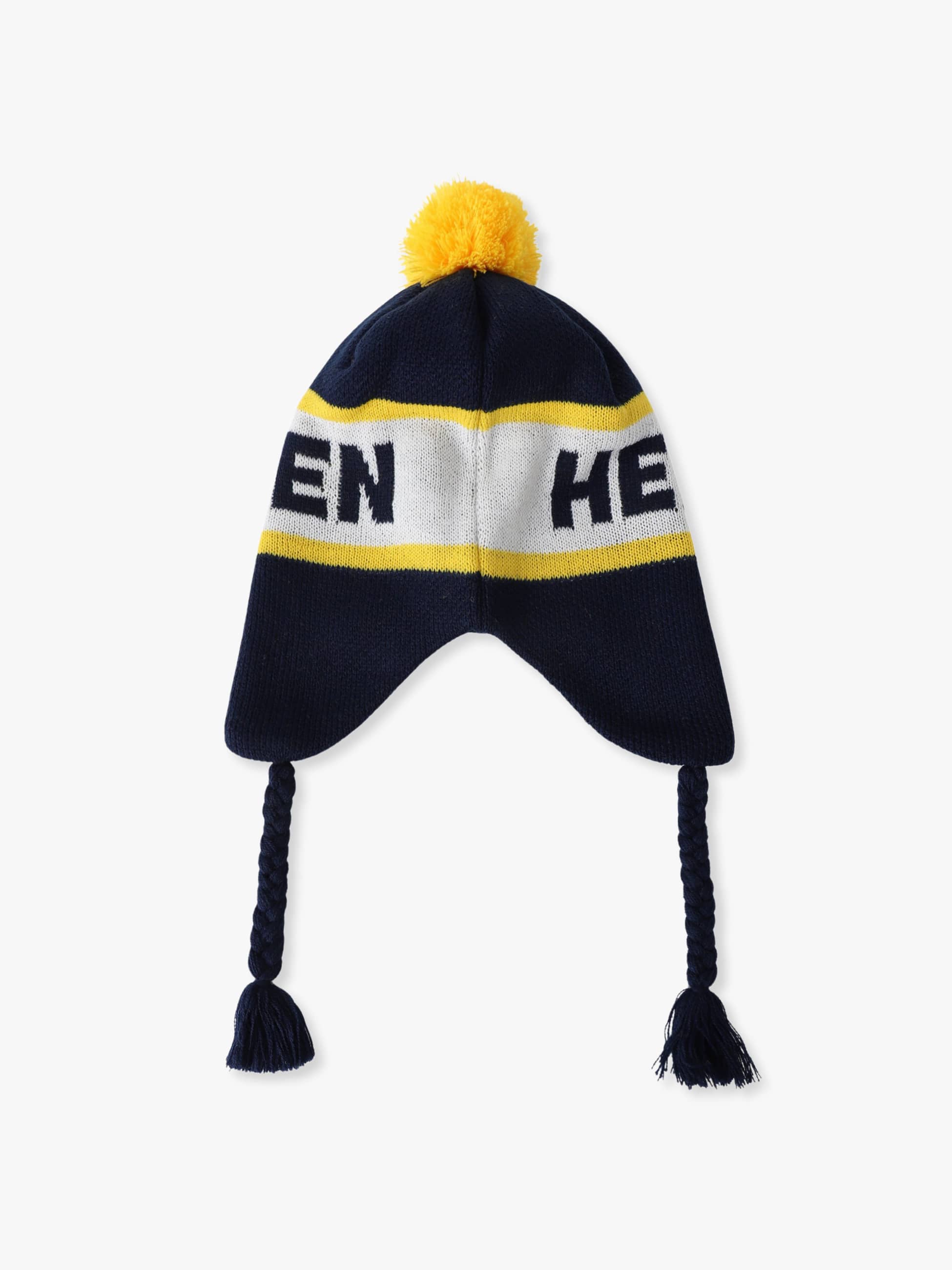 配色が楽しいレトロなデザインに、ポンポンがアクセントのキュートなビーニーは、耳までしっかり覆える耳あて付きで寒い季節もあたたかく過ごせます。ふんわりとしたバルキー加工のアクリル糸を使用し、やさしい肌触りと優れた保温性を実現しています。冬のお出かけがもっと楽しくなるアイテムです。