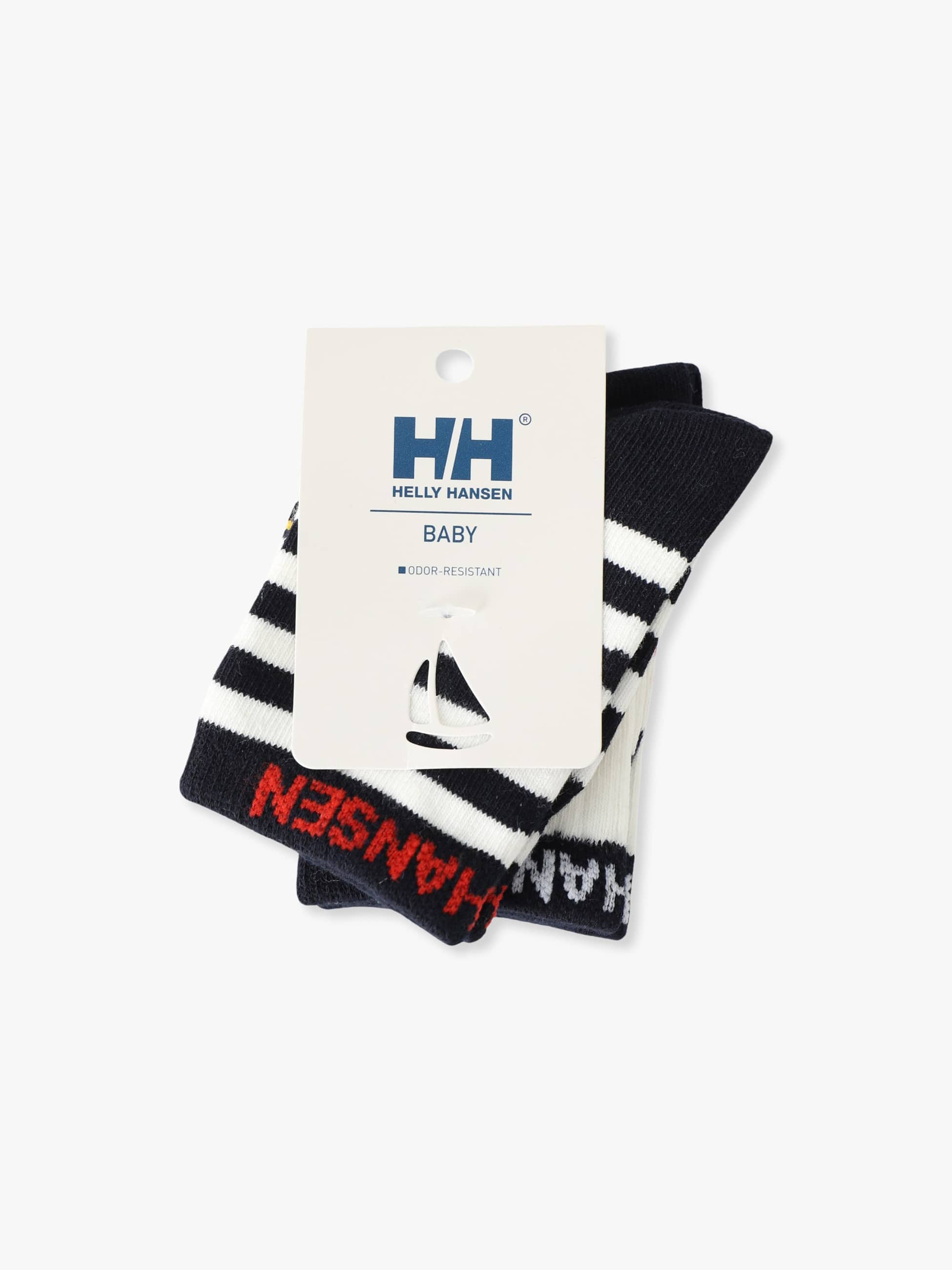 HELLY HANSENのアイコニックなマリンストライプ柄と、シンプルなロゴデザインの2足セットのソックスです。コットンをベースに乾きやすいポリエステル糸を混紡し、ストレッチ性と抗菌防臭機能を兼ね備えています。すべり止めのプリントとして、HELLY HANSENのメッセージである「BE WITH WATER」のラバープリントが施されています。