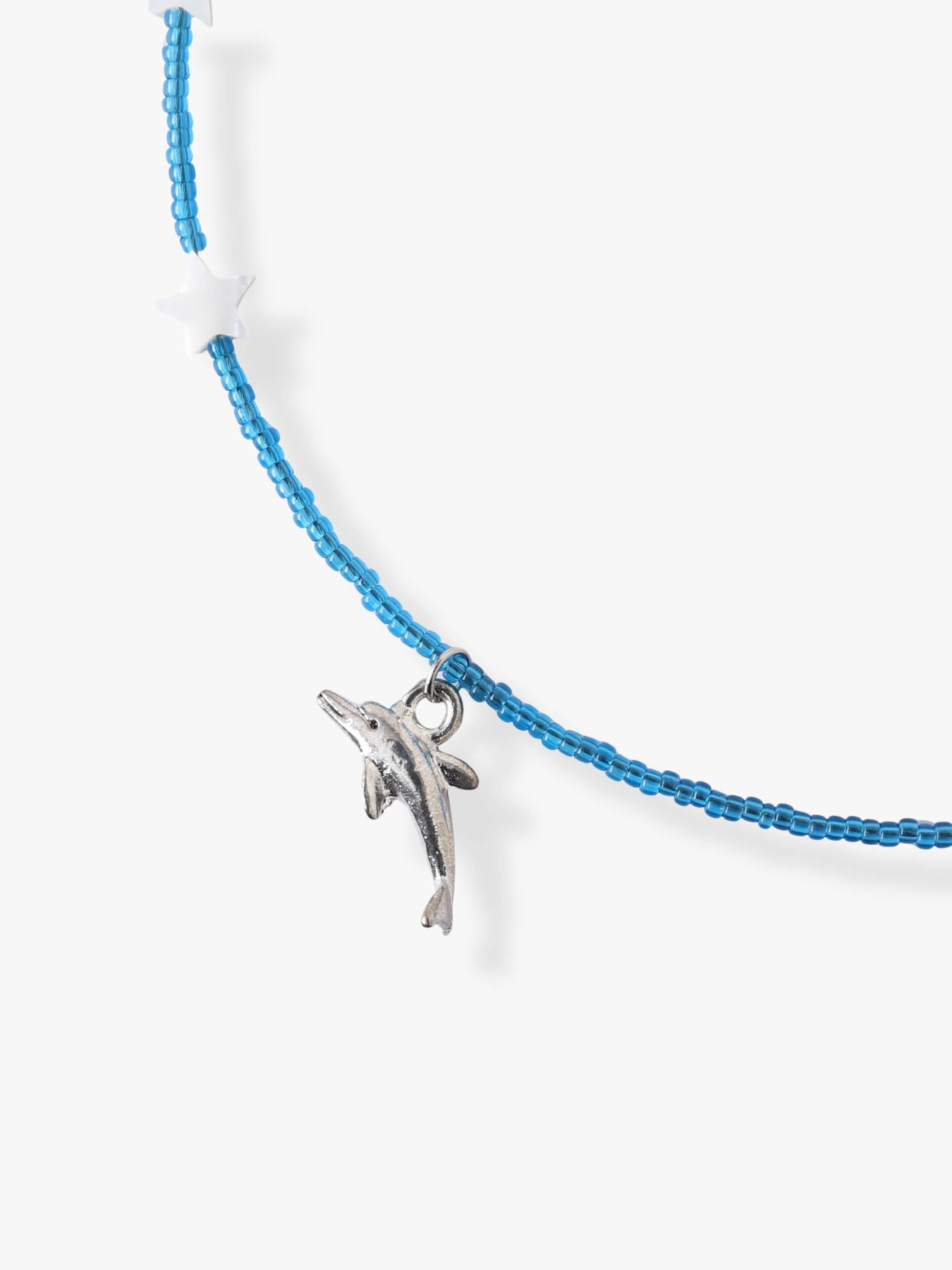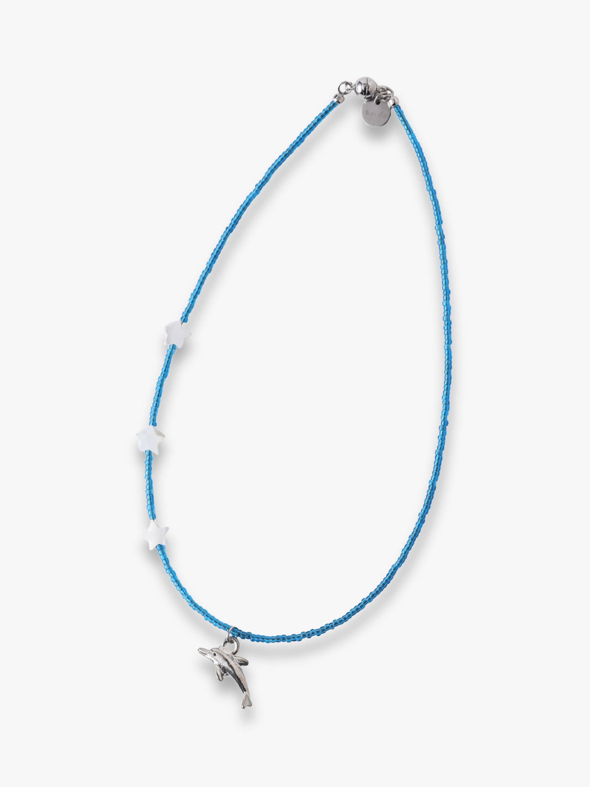 愛らしいドルフィンとスターのモチーフをあしらった別注のキッズ向けネックレスは、マグネットで簡単に着脱でき、涼しげなブルーも相まって爽やかな印象に。コーディネートのアクセントとして、少し背伸びしたキュートなスタイリングを演出します。