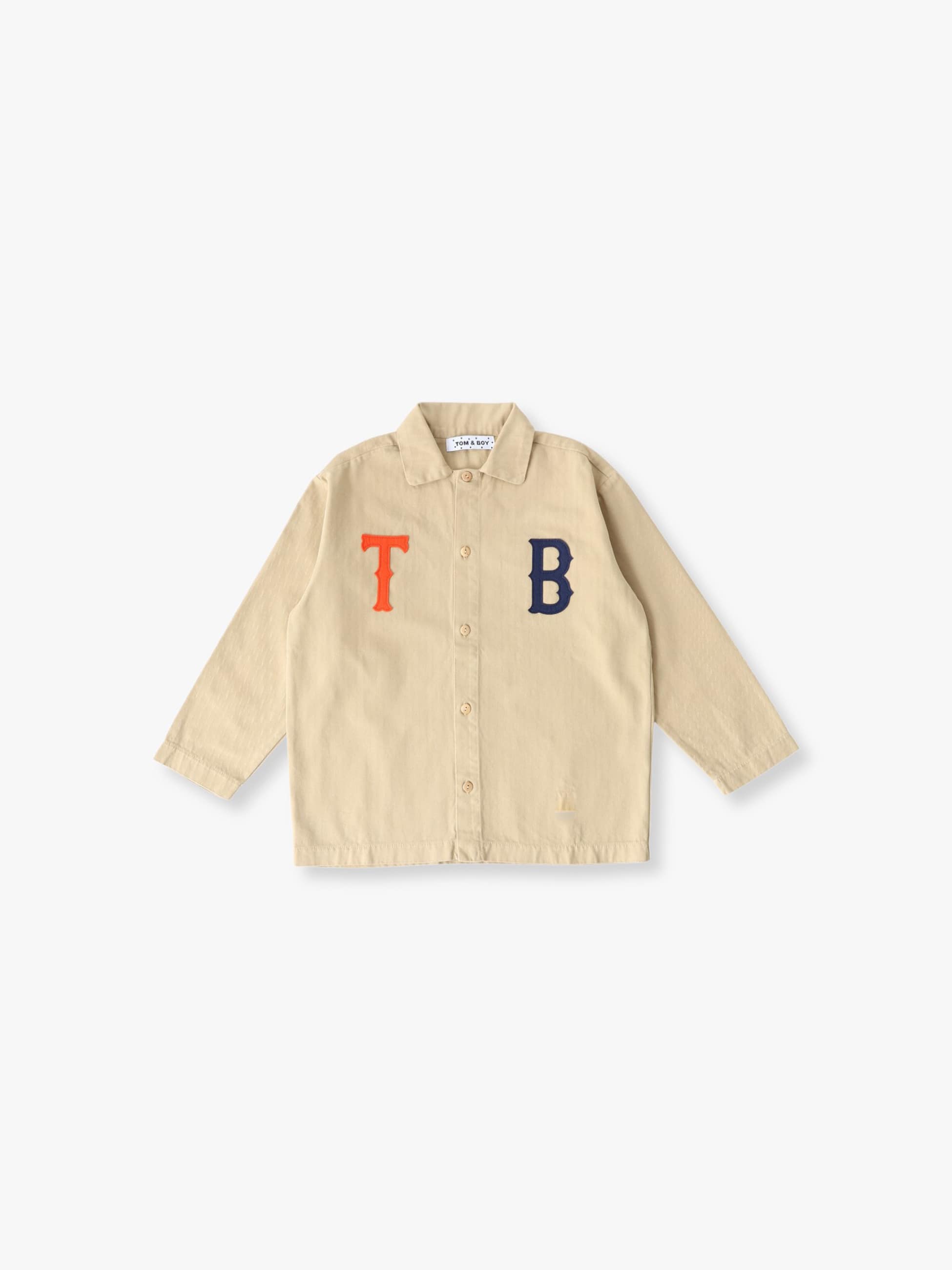 胸元に「TB」ロゴが入ったコットンの素材のジャケットジャケットは、しっかりした生地感です。1枚でシャツとして、ボタンを開けてインナーにTシャツやパーカーなどを着てジャケットとしても活躍します。