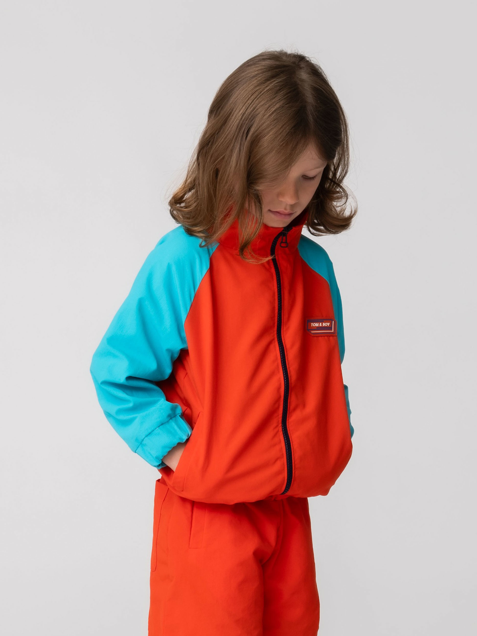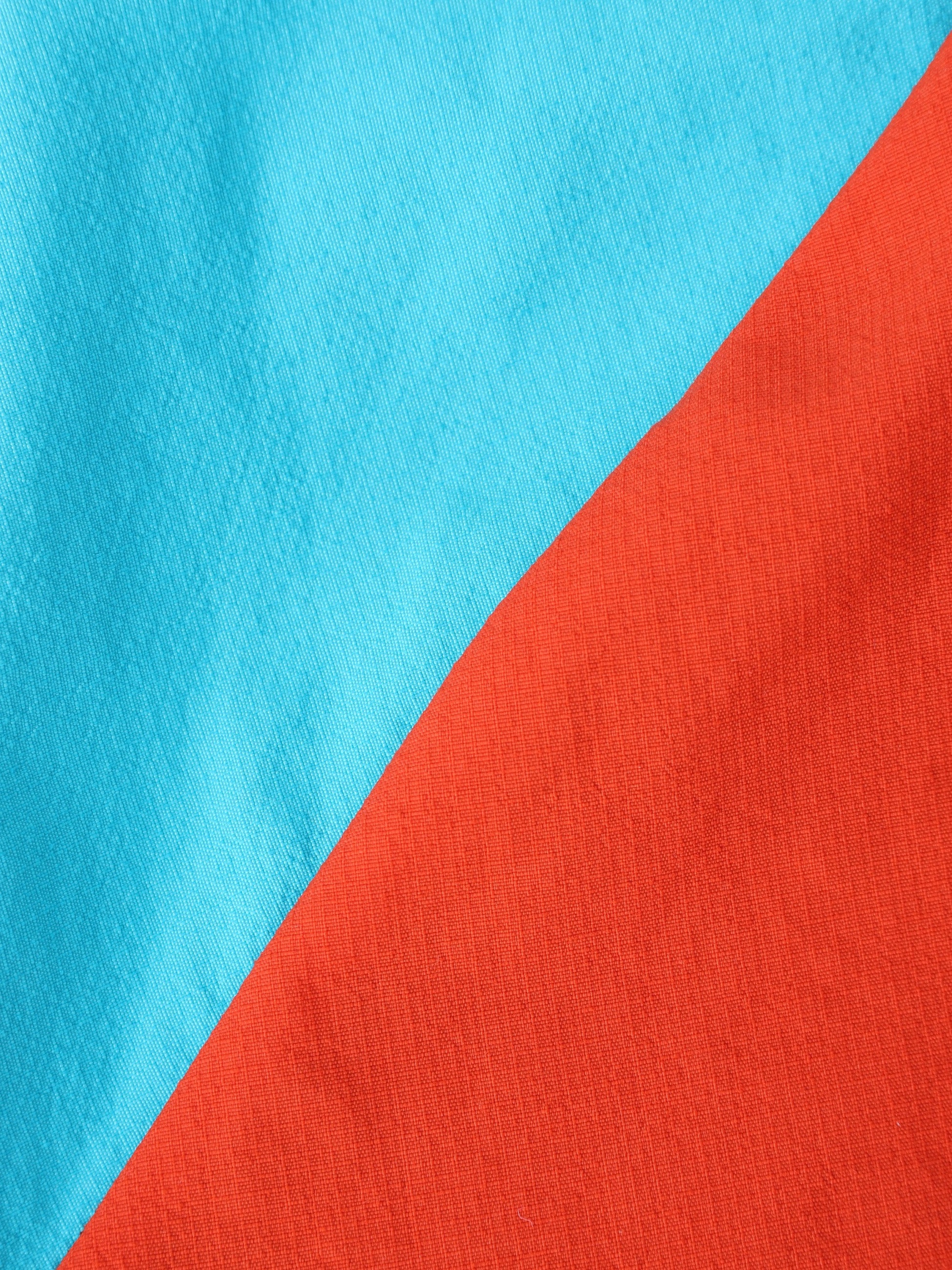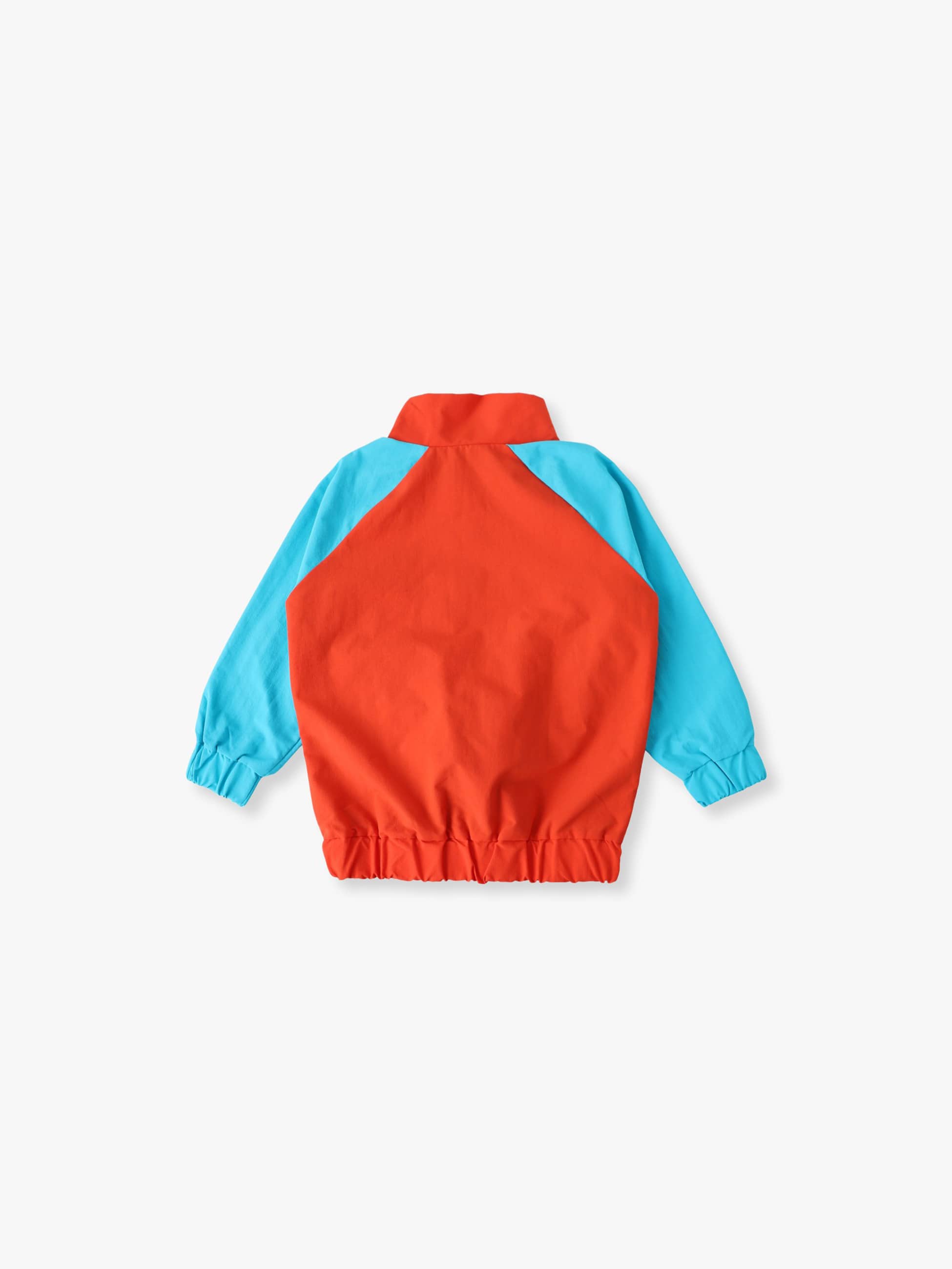 鮮やかなレッドにブルーの配色が映えるジャケットです。ナイロン素材を使用しており、軽量で丈夫なため、デイリーに使いやすい一枚です。同シリーズのナイロントラックショーツとセットアップで着ていただくのもおすすめです。