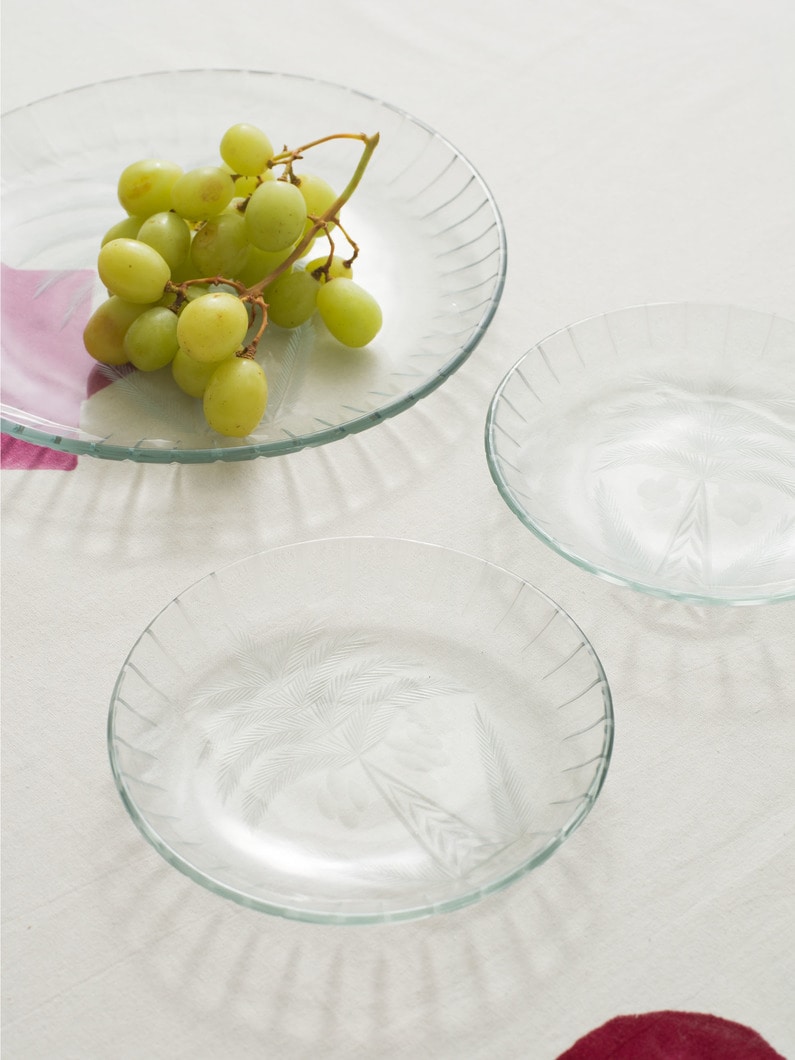 - コンテンポラリーでありながら時代を超越し、アラブのおもてなし文化を取り入れたライフスタイルグッズとホームウェアをデザインしているecru(エクルー)から、プレートが2つのサイズで登場。ヤシの木がデザインされたガラス製のプレートは、テーブルをロマンチックに飾るのに最適です。ダイニングを賑やかに彩り、日常使いにおすすめです。