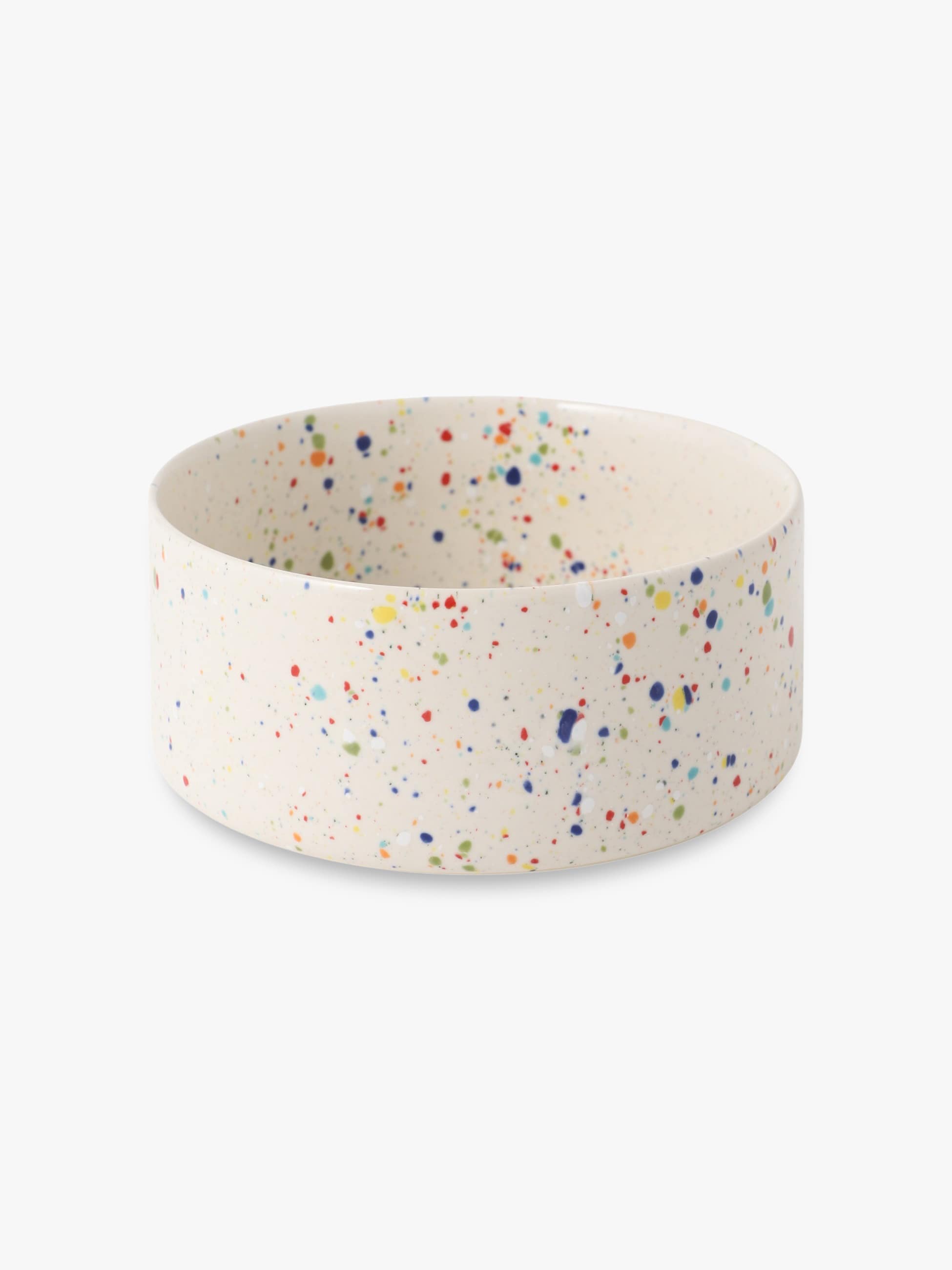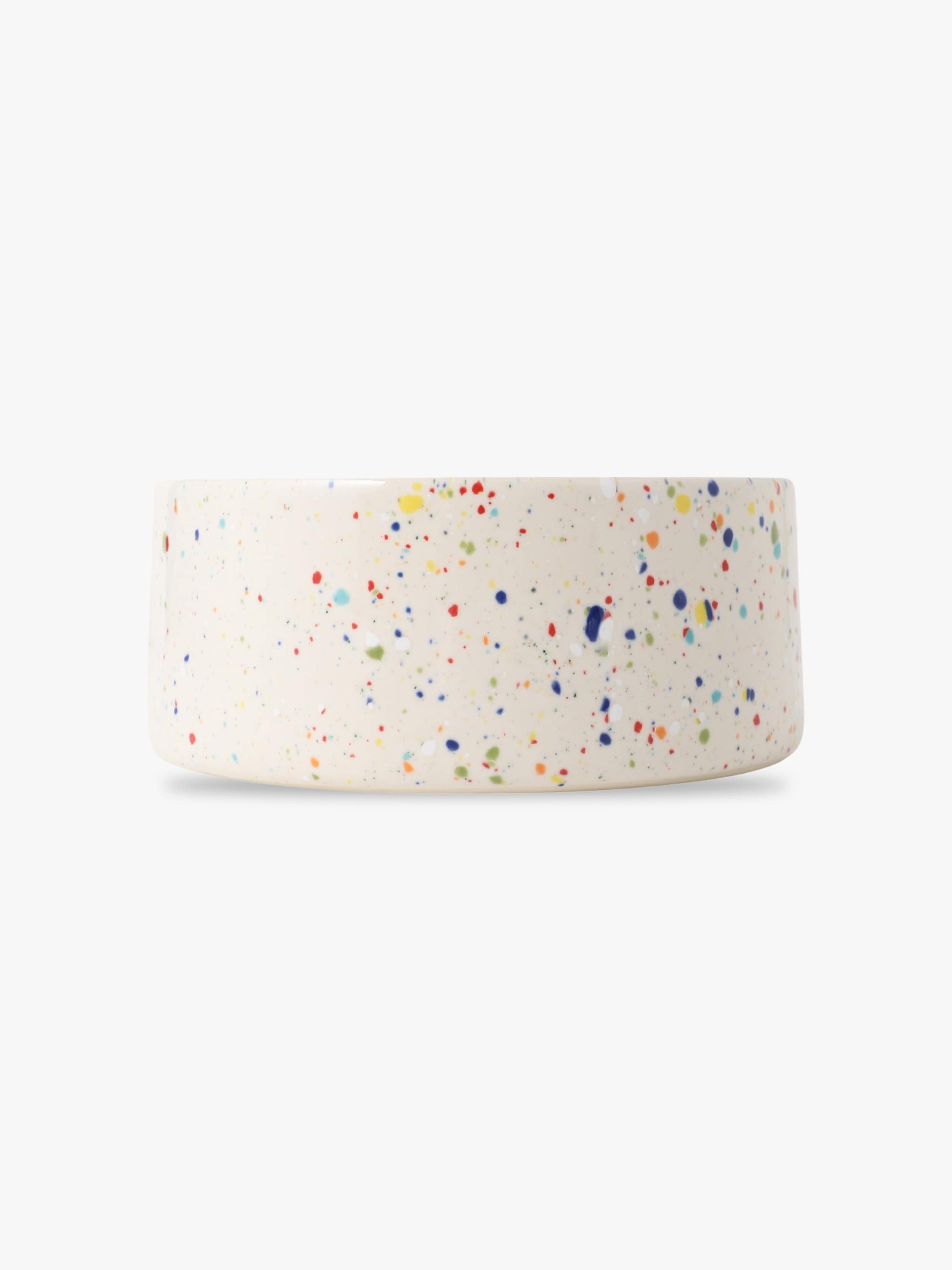 - カラフルな斑点のデザインを施した炻器製のドッグボウルが2つのサイズで登場。炻器は、高い温度で焼いている為、陶器より硬く、吸水性が低いのが特徴です。見た目や質感は陶器のような温かみがありつつ、磁器の強度を兼ね備えた素材。カラフルな斑点のデザインは、ハンドメイドによる個体差を楽しんでいただけるアイテムとなっています。