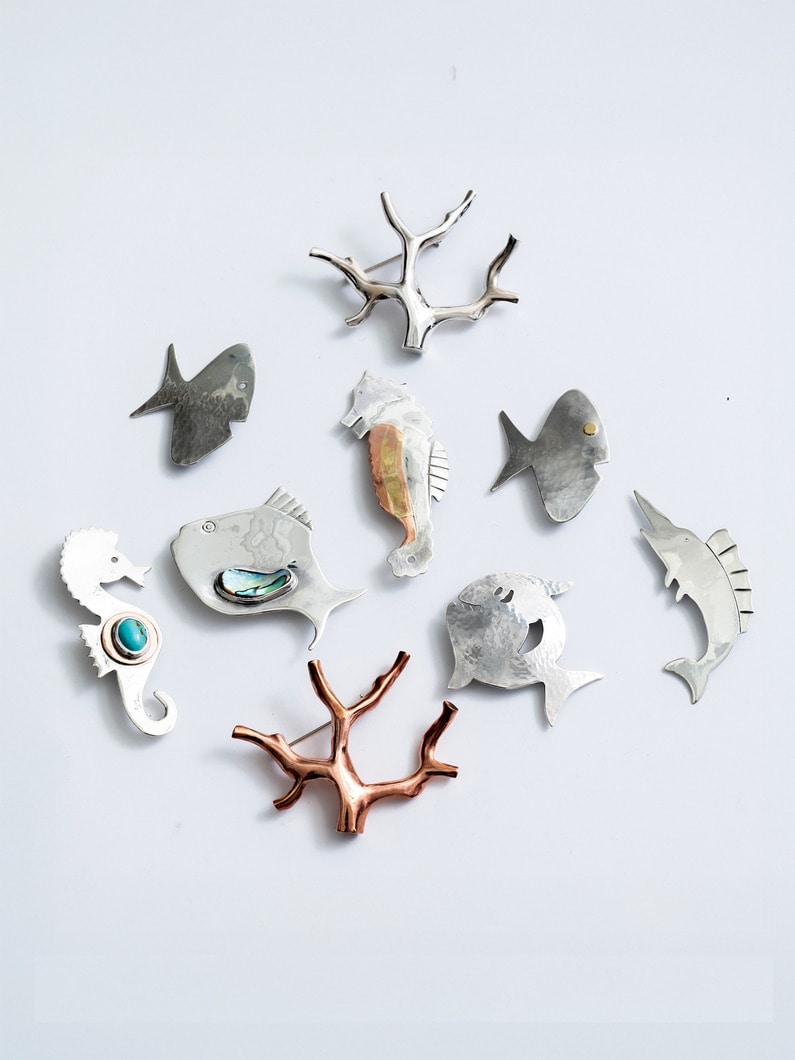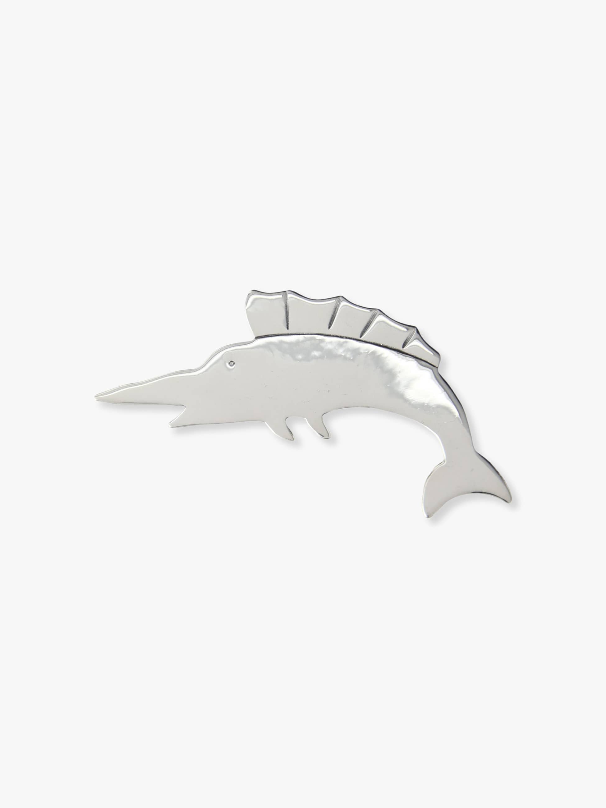 - ユニークなフォルムのセールフィッシュモチーフで別注したブローチは、ひょうきんな表情が愛嬌たっぷりで、繊細な職人技術により1点ずつハンドメイドで生み出されています。ストールやバッグ、オーバーオールなど、様々な場所に付けて楽しんでいただきたいアイテムです。