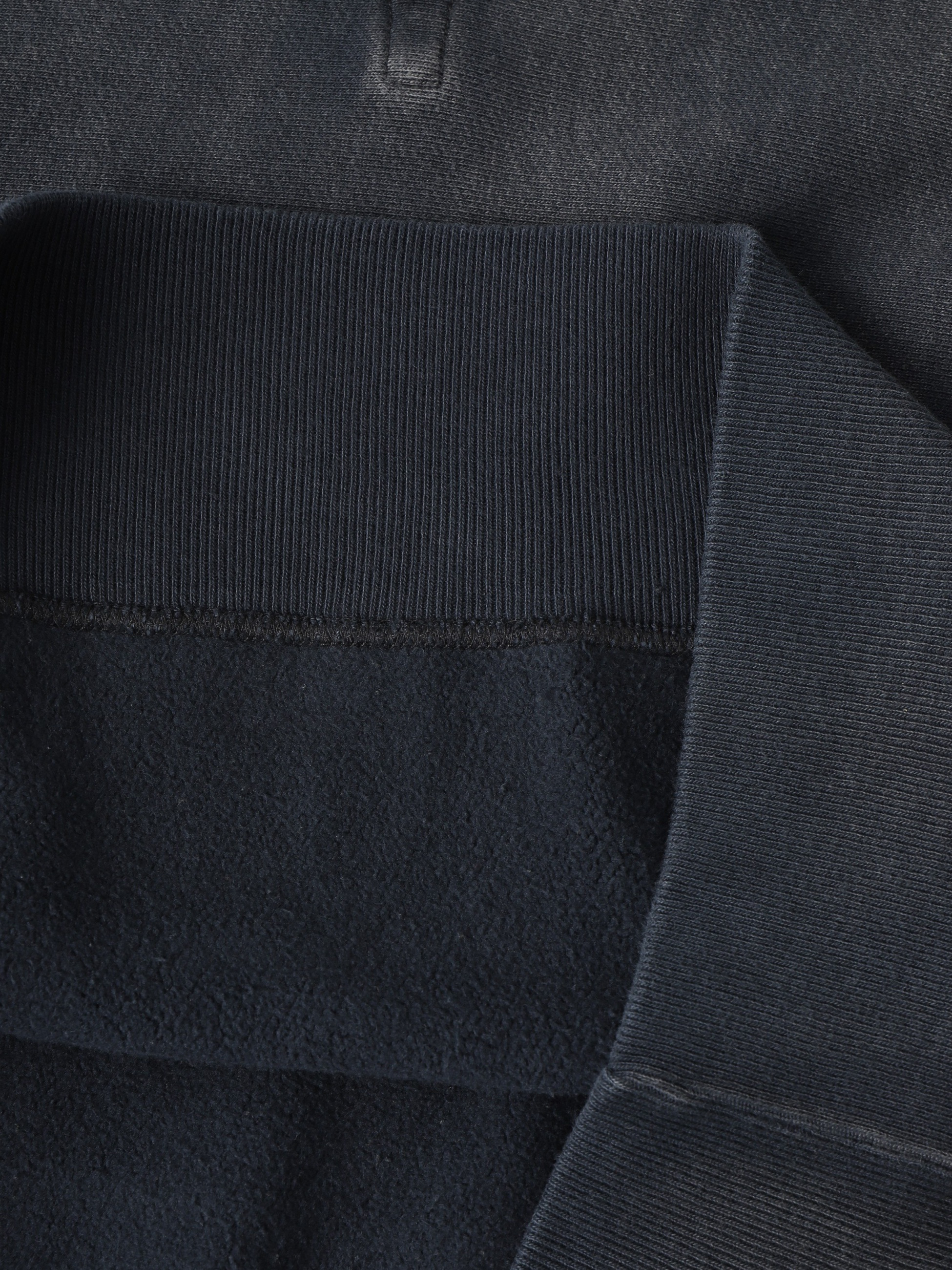 - 色味やシルエットなどのビンテージディティールを忠実に再現した、リブカラーのハーフジップのスウェットトップスです。職人による手作業で、1点1点丁寧な加工を施し、ビンテージの経年変化を表現した特別感のある一枚です。