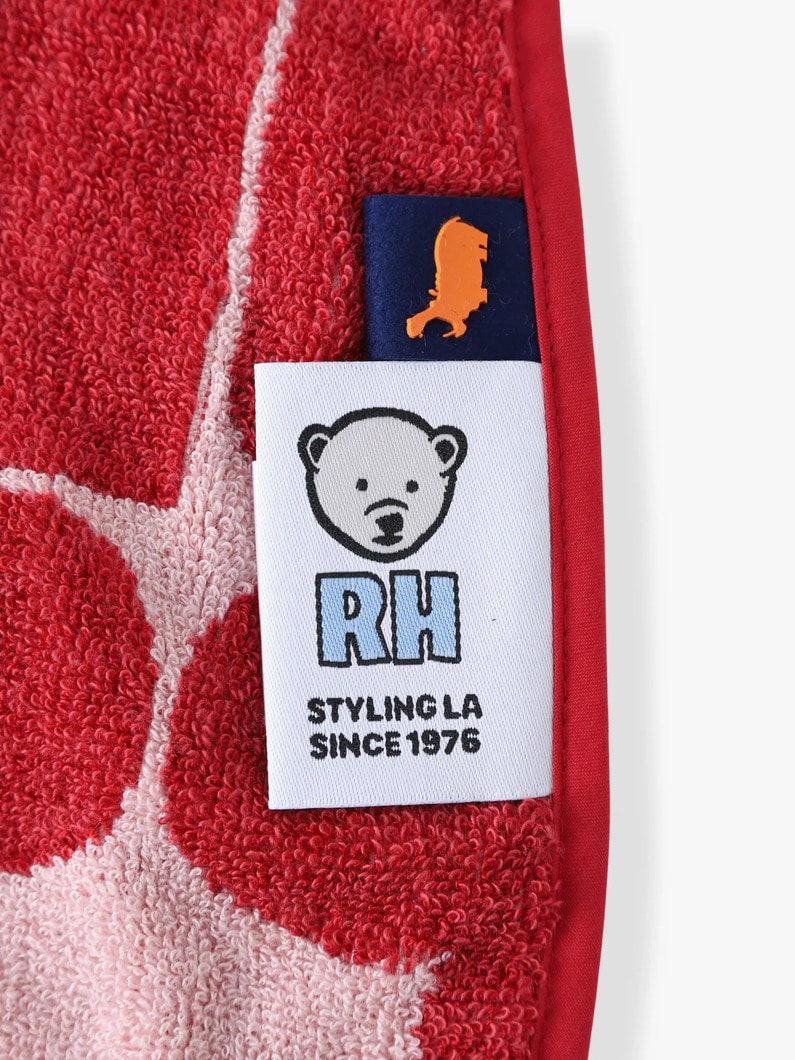 - ロンハーマンのベストセラーアイテムであるビブエプロンに、Hippopotamusのエッセンスを加え別注したスペシャルなアイテムが登場です。タオルパイルとナイロンのコンビネーションで、リバーシブルでご使用いただけます。スタイとしてだけでなく、お食事エプロンとしてなど、マルチに活躍します。両端にボタンを取り付けることで、お子さまのお口から溢れた食事もキャッチ。毎日の食事をサポートします。可愛いらしいハートモチーフは、ジオメトリックなデザインで表現。甘すぎず、無駄のないシンプルさと発色のよい2トーンカラーで目を惹きます。