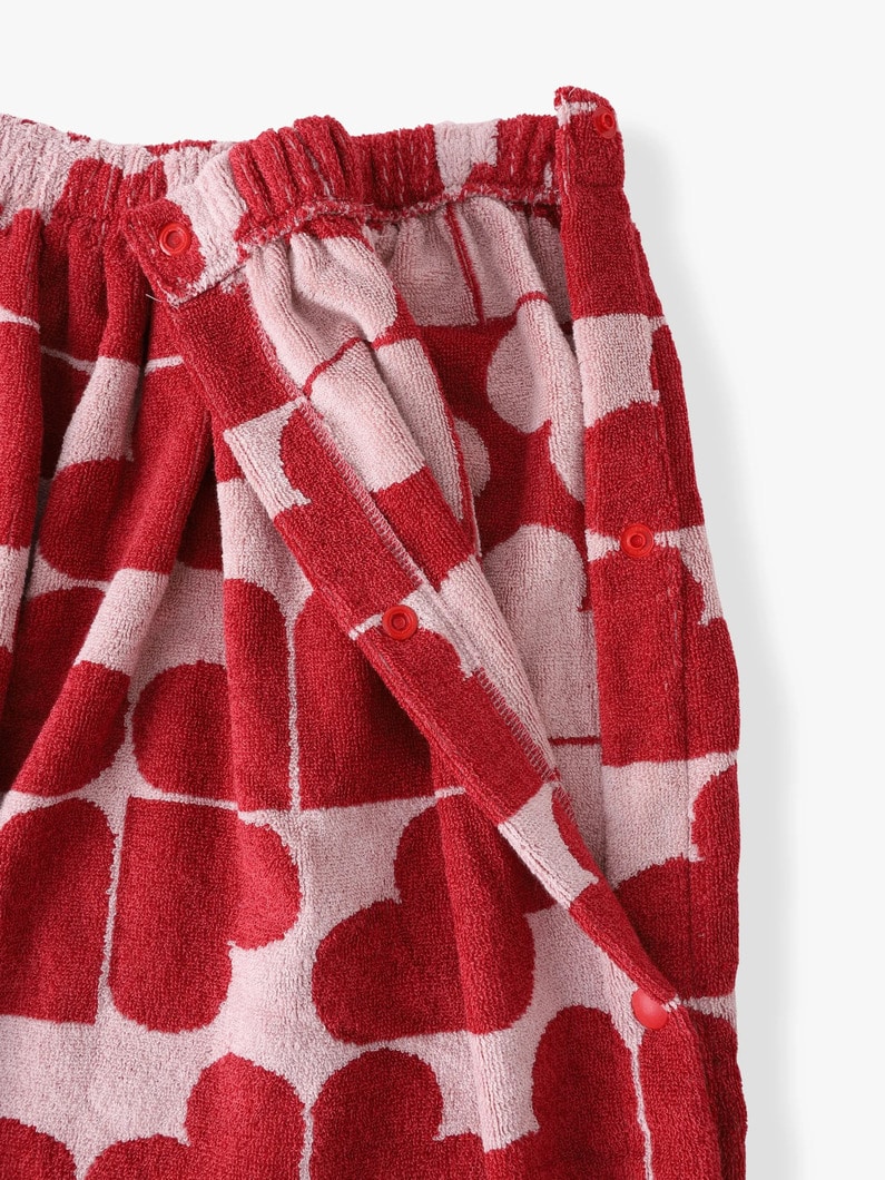 - ロンハーマンキッズで別注した特別なアイテムが登場です。長さやフィット感にこだわり、SとMの2サイズで展開です。寒い時期のバスタイムにふわりと包み込むような肌触りが魅力のラップタオル。ハートモチーフのデザインがとびきりキュートで気分を明るくしてくれます。毎日使いたくなる心地よさで、普段使いからギフトにもおすすめのアイテムです。同シリーズのSサイズもございます。