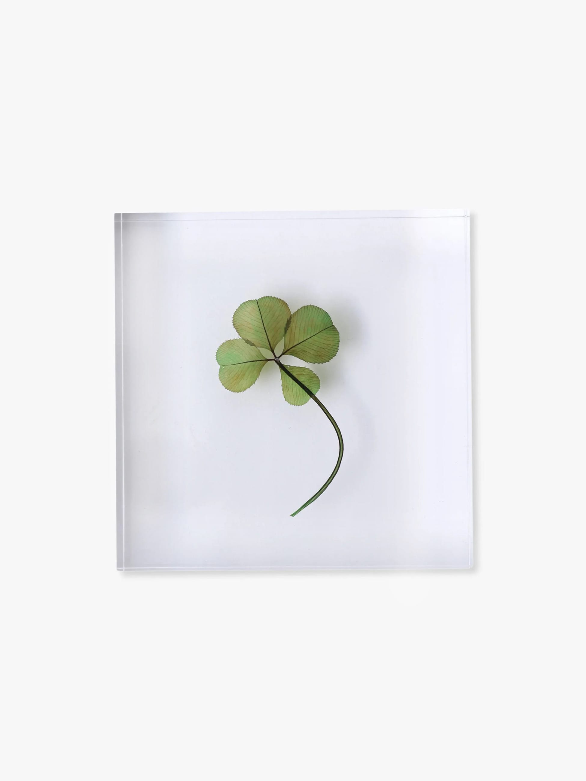 - フランス製のクローバー(トレフル)を封入した、クリスタルのように澄んだプレキシグラス製ブロックです。自然が持つ繊細な美しさをそのまま閉じ込めた、上質で洗練されたデザインが魅力。大切な方への特別なギフトや、インテリアオブジェとしてもおすすめのアイテムです。サイズはM、Lの2種類をご用意しております。