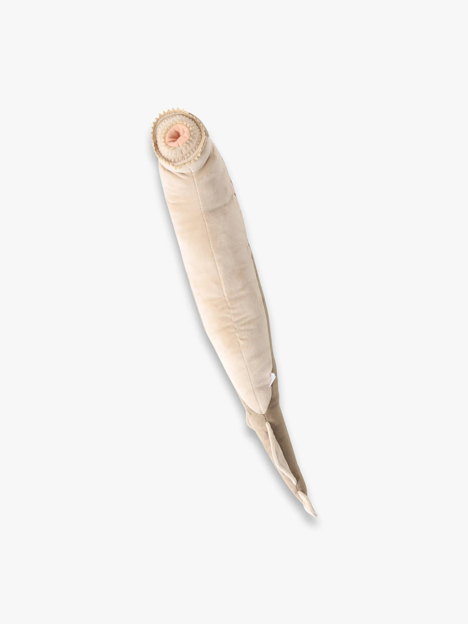 - シーランプレイ(ヤツメウナギ)は、吸盤のような丸い口と、うなぎのような細長い体が特徴のふしぎな海の生きものです。魚に吸いついて血を吸うという少しこわい生態を持ちながら、そのユニークな姿と長い歴史で注目を集めています。そんなシーランプレイを、ふわふわのソフト素材でぬいぐるみにしました。見た目と手ざわりのギャップをぜひ楽しんでみてください。