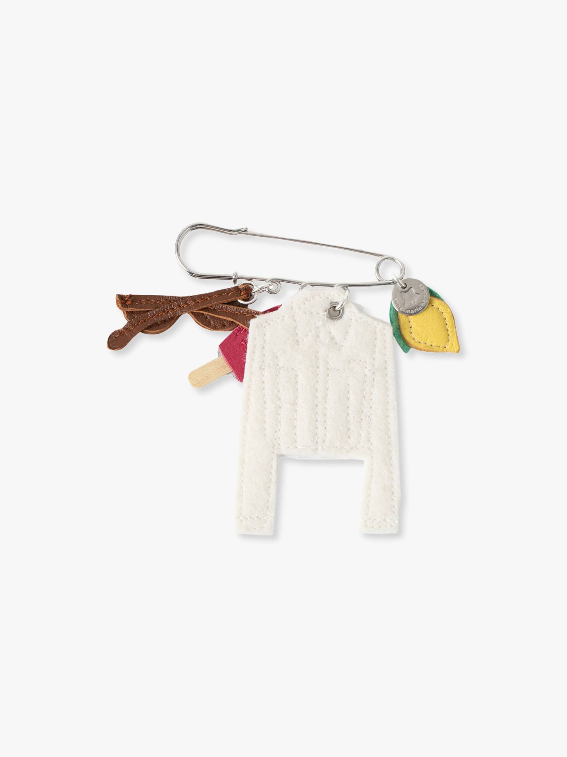 手のひらサイズのミニチュアアクセサリーを展開するAnne Marie Herckesのトレードマークアイテムであるピンブローチを、多数のパーツから組み合わせを厳選し、ロンハーマンで別注しました。春らしいホワイトジャケットに爽やかなレモンが映えるパーツで、トップスやジャケットのワンポイントとしてはもちろん、お手持ちのバッグにつけた自由なアレンジもお楽しみいただけます。選び抜かれたパーツを使って、一つ一つ手作業で丁寧に製作されたAnne Marie Herckesのユニークなアクセサリーをこの機会にぜひご覧ください。