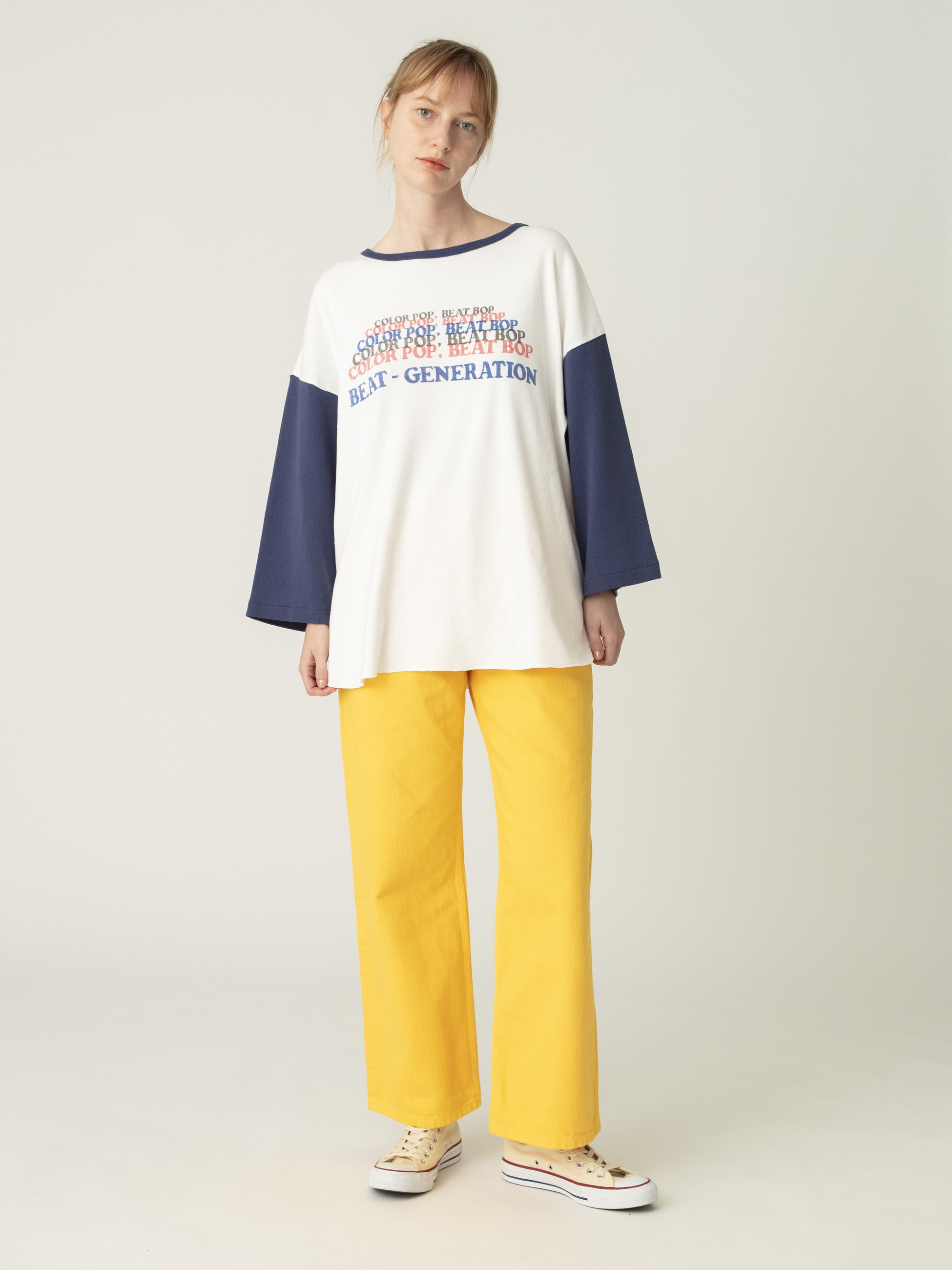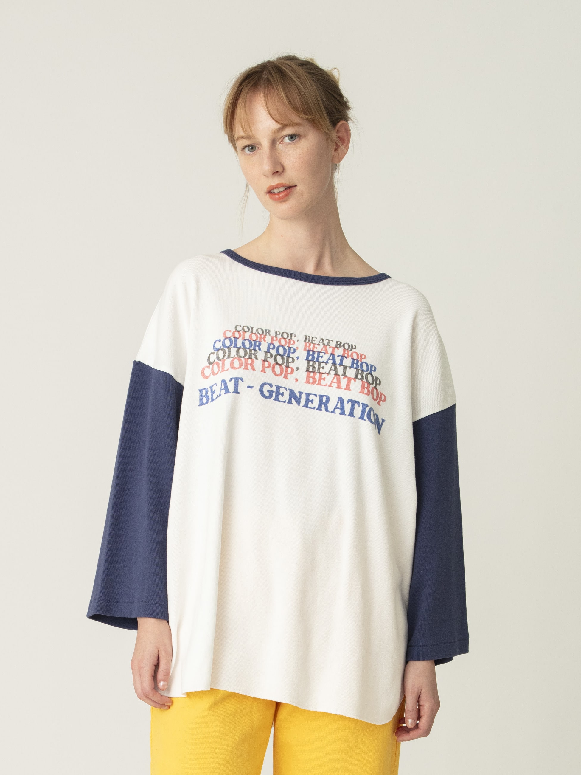 BOWWOWとのコラボレーション企画第二弾となる、リブカットソーが登場です。コレクション展開のあるデザインをベースに、袖丈を調整しユニセックスで着用できるMサイズをセレクト。フロントにはRHC ロンハーマンの26SSシーズンのテーマ「Life is in color」と「ビートボップ」にちなみ、“COLOR POP, BEAT BOP”のリズミカルなグラフィックプリントを落とし込んでいます。BOWWOWらしいデザイン性と遊び心を取り入れられるアイテムです。