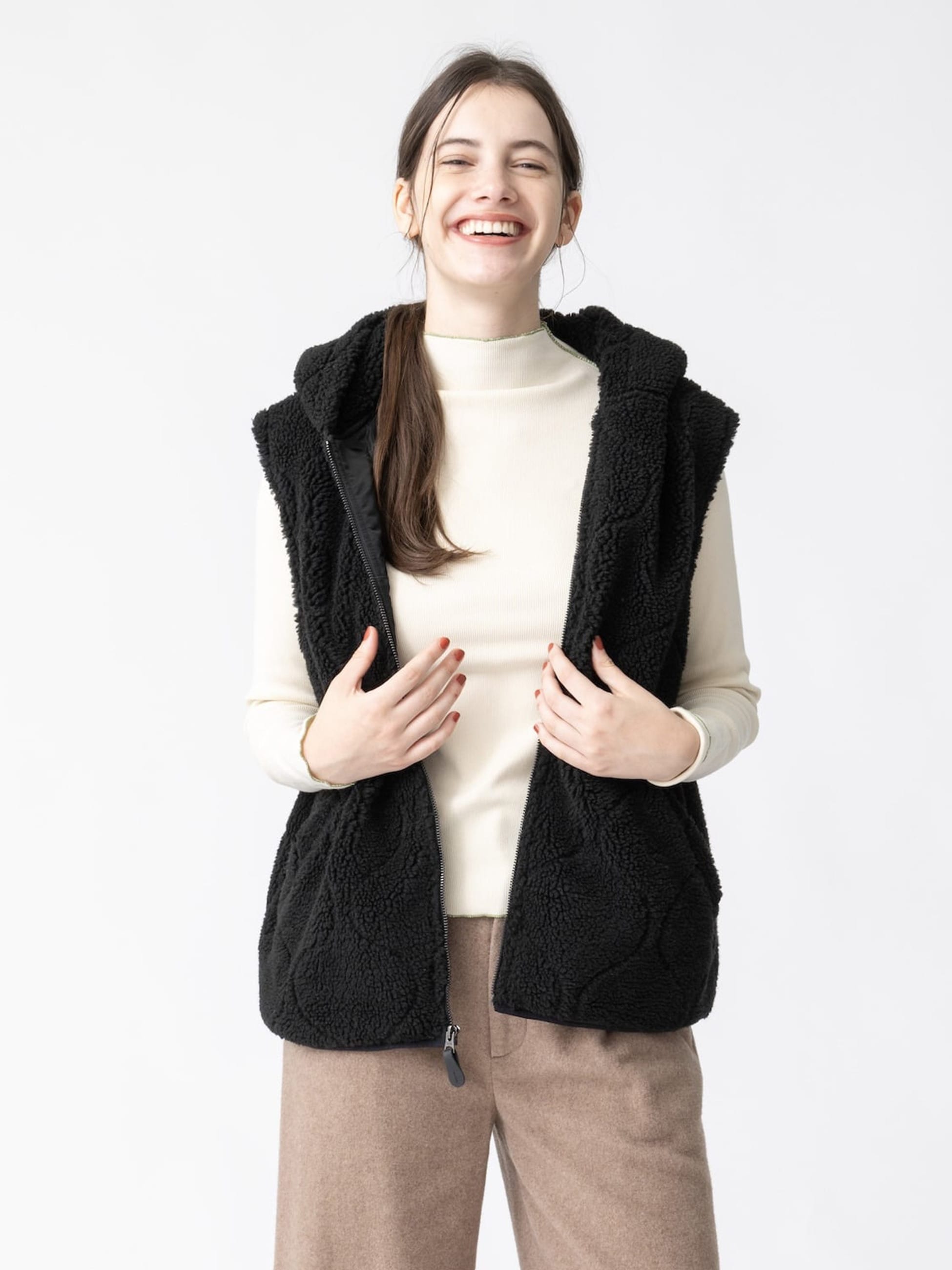 ALPHA INDUSTRIESが開発した、ALSライナー(ALPHA LINER SYSTEM)をアップデートさせたキルティングジャケットに、ボアフーディベストをレイヤードしたスペシャルなセットをRHCウィメンズで別注しました。それぞれ単体でも着用でき、3WAYの着こなしをお楽しみいただけます。ジャケットは、オ二オンキルトのデザインが特徴で、高い断熱性能を発揮し、ベストは、同じくオニオンキルティングのシェルパ素材で作られており、保温性に優れています。トレンド感と機能性に優れたデザインで、秋冬のワードローブにもぴったりのアイテムです。