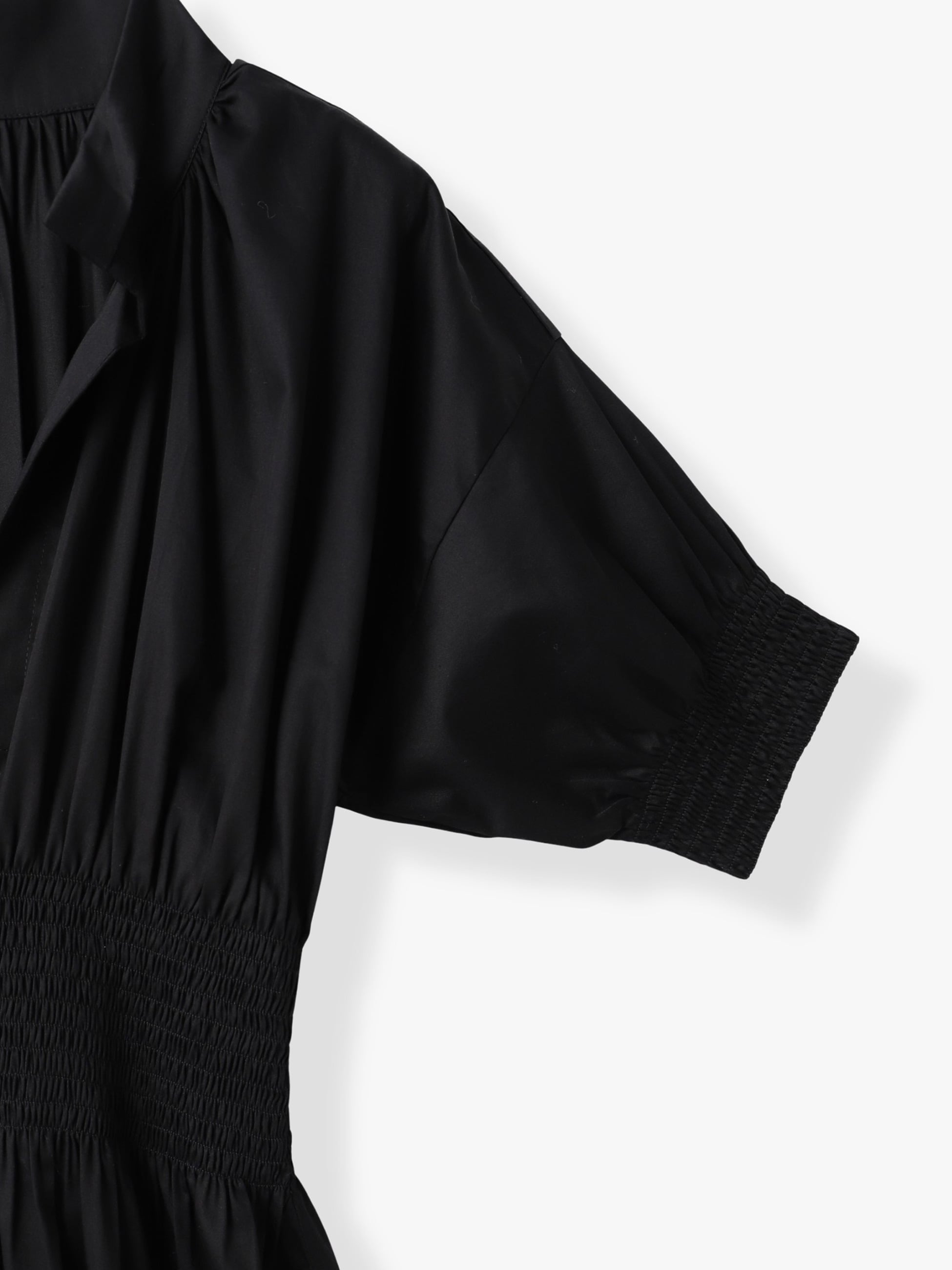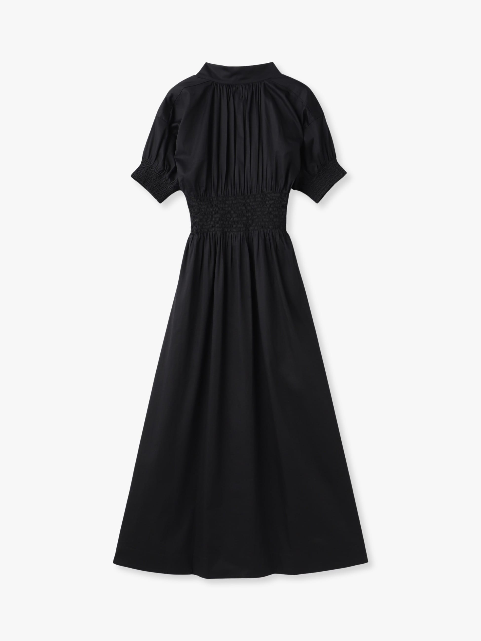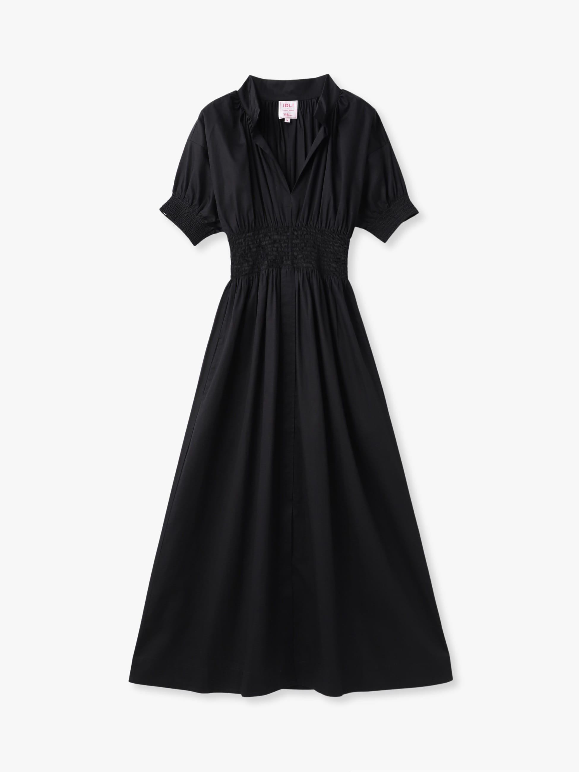 スモッキング刺繍が特徴のショートスリーブドレスを、ロンハーマンで別注しました。軽やかなコットン100%の素材を使用し、ゆったりとした着心地で、優美な雰囲気を醸します。オープンカラーが首元を美しく引き立て、ボリューム感のあるスリーブは可憐さとエレガントさを兼ね備え、1枚で様になります。