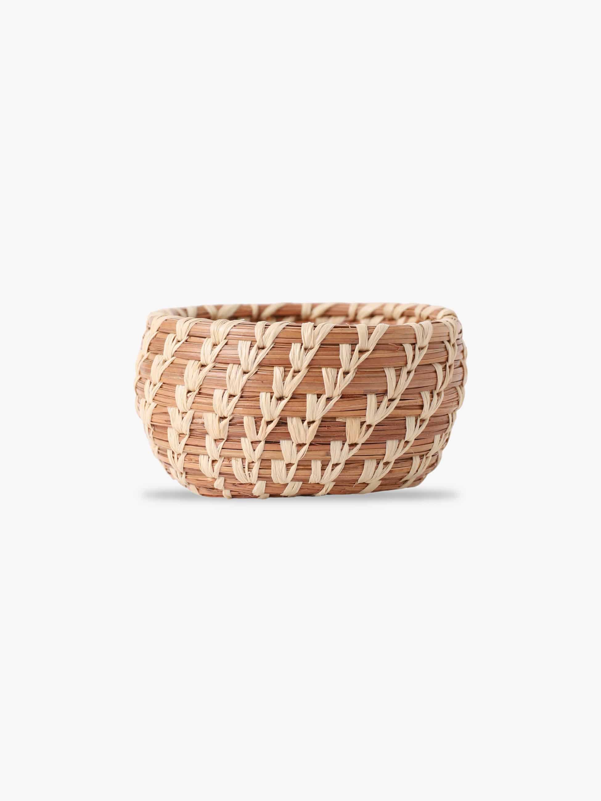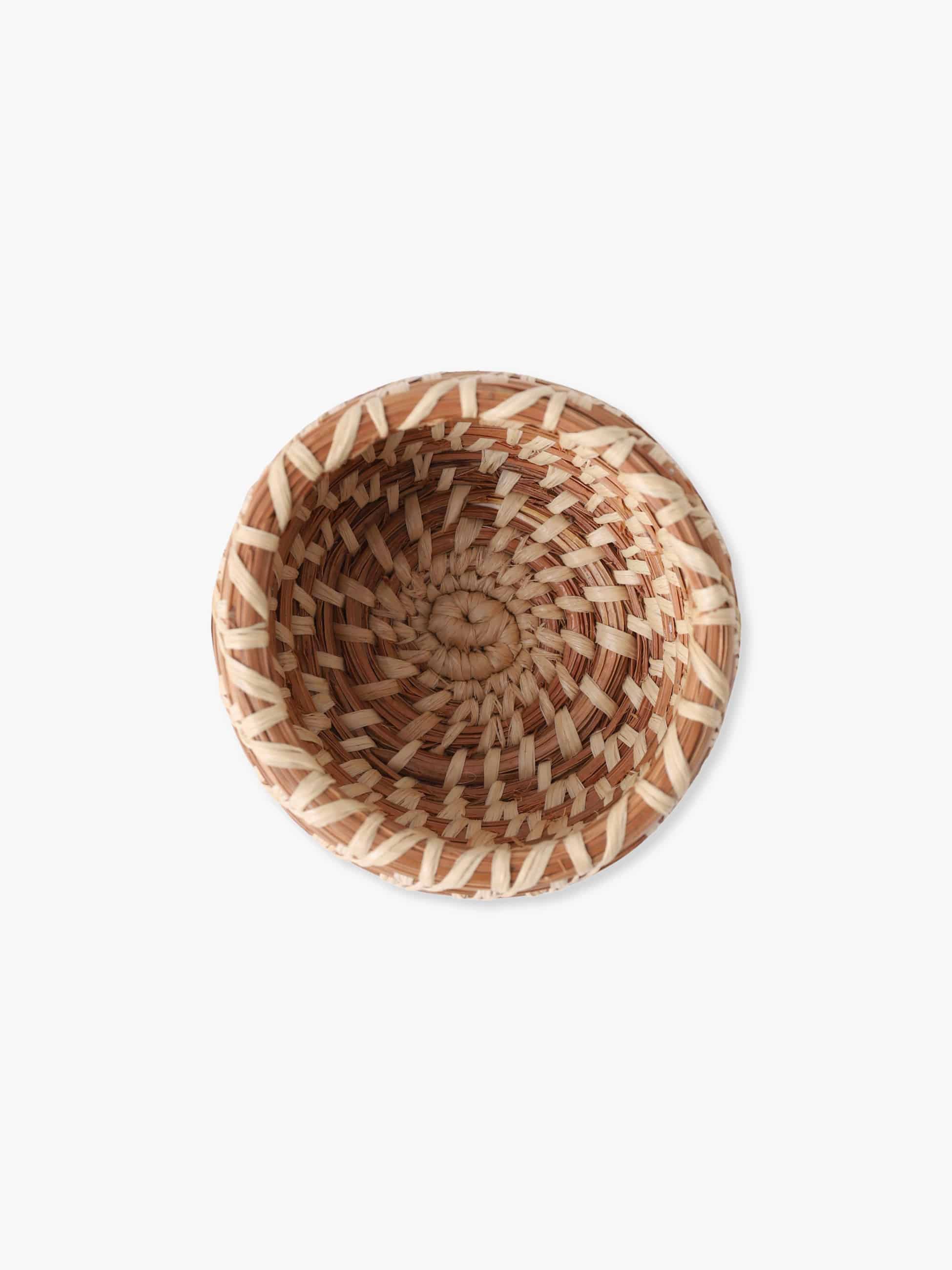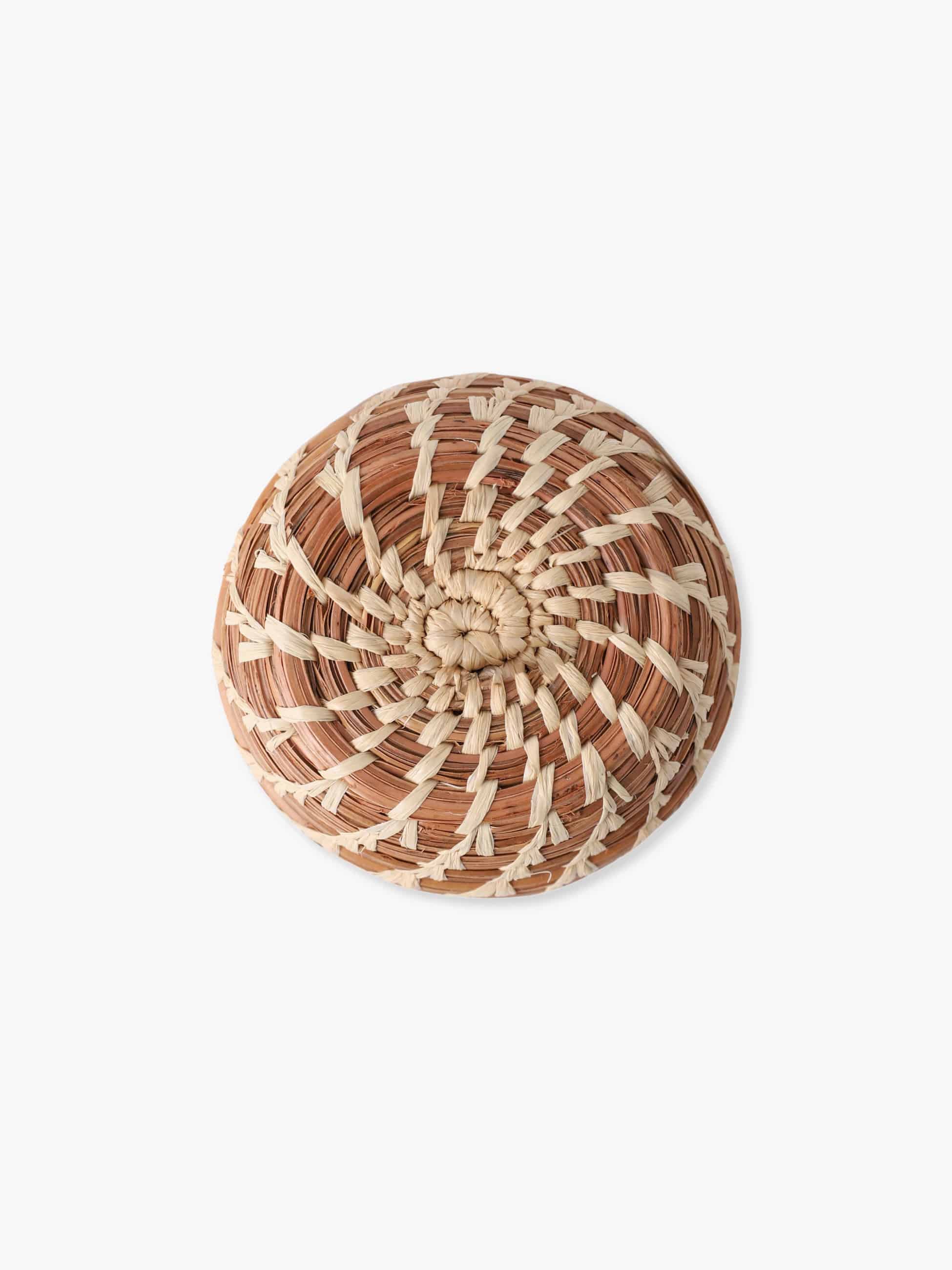 - グアテマラのマヤ族女性職人が、パインニードル(松葉)を使い一点ずつ丁寧に編み上げたミニチュアボウルバスケット。コロンと丸みを帯びたフォルムがかわいらしく、自然素材ならではの素朴であたたかな風合いがテーブルや棚にナチュラルなアクセントを添えます。小物入れやディスプレイにぴったりで、フェアトレードの想いが込められたクラフトアイテムです。