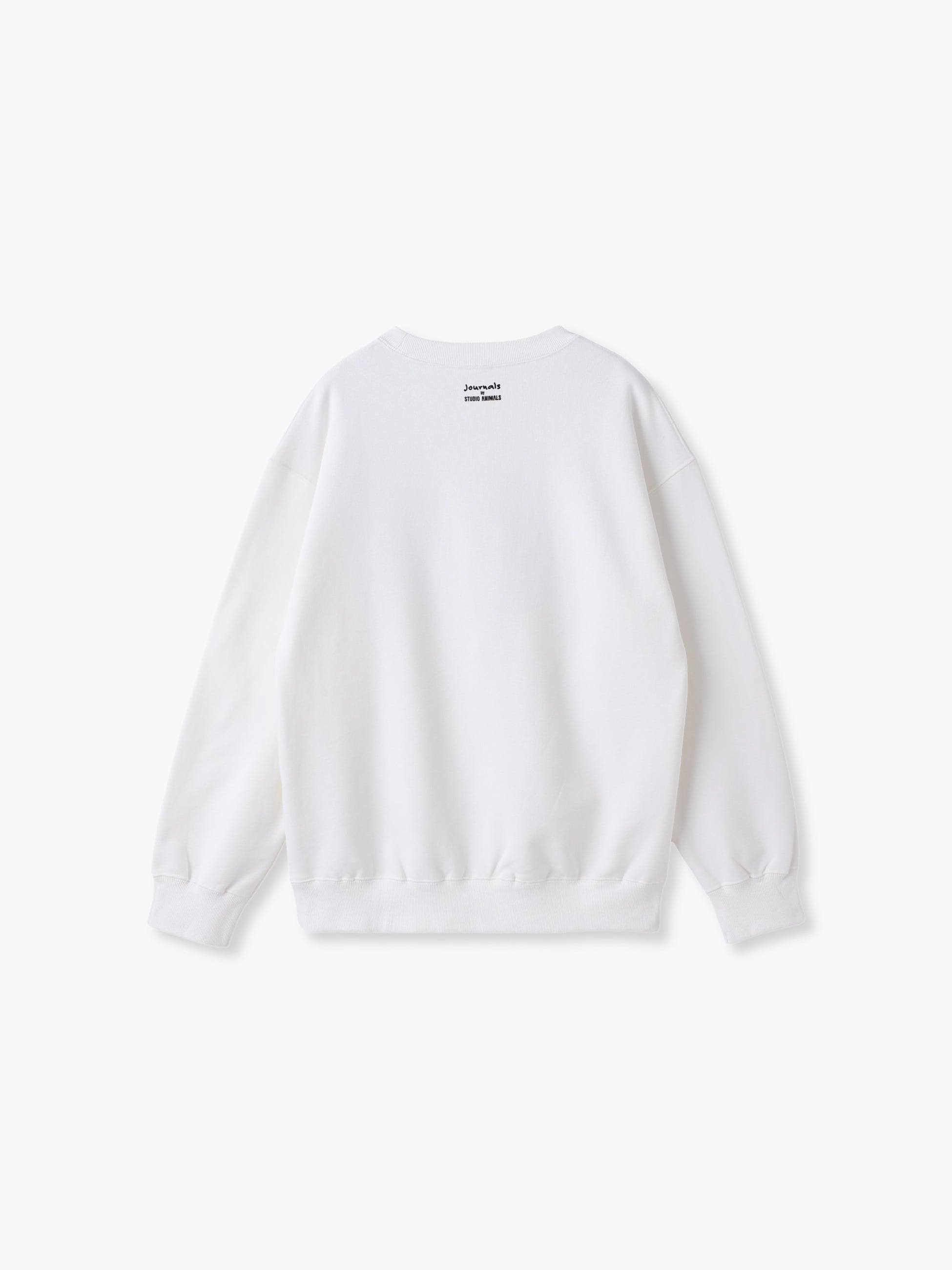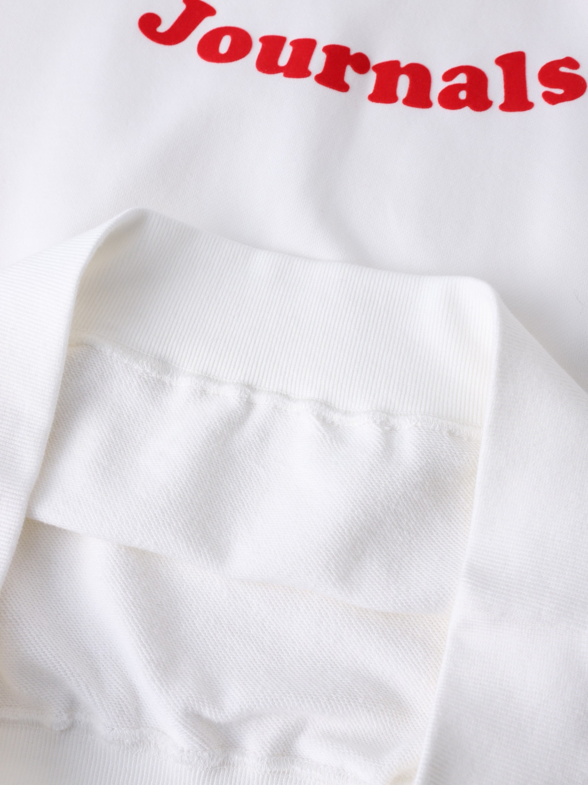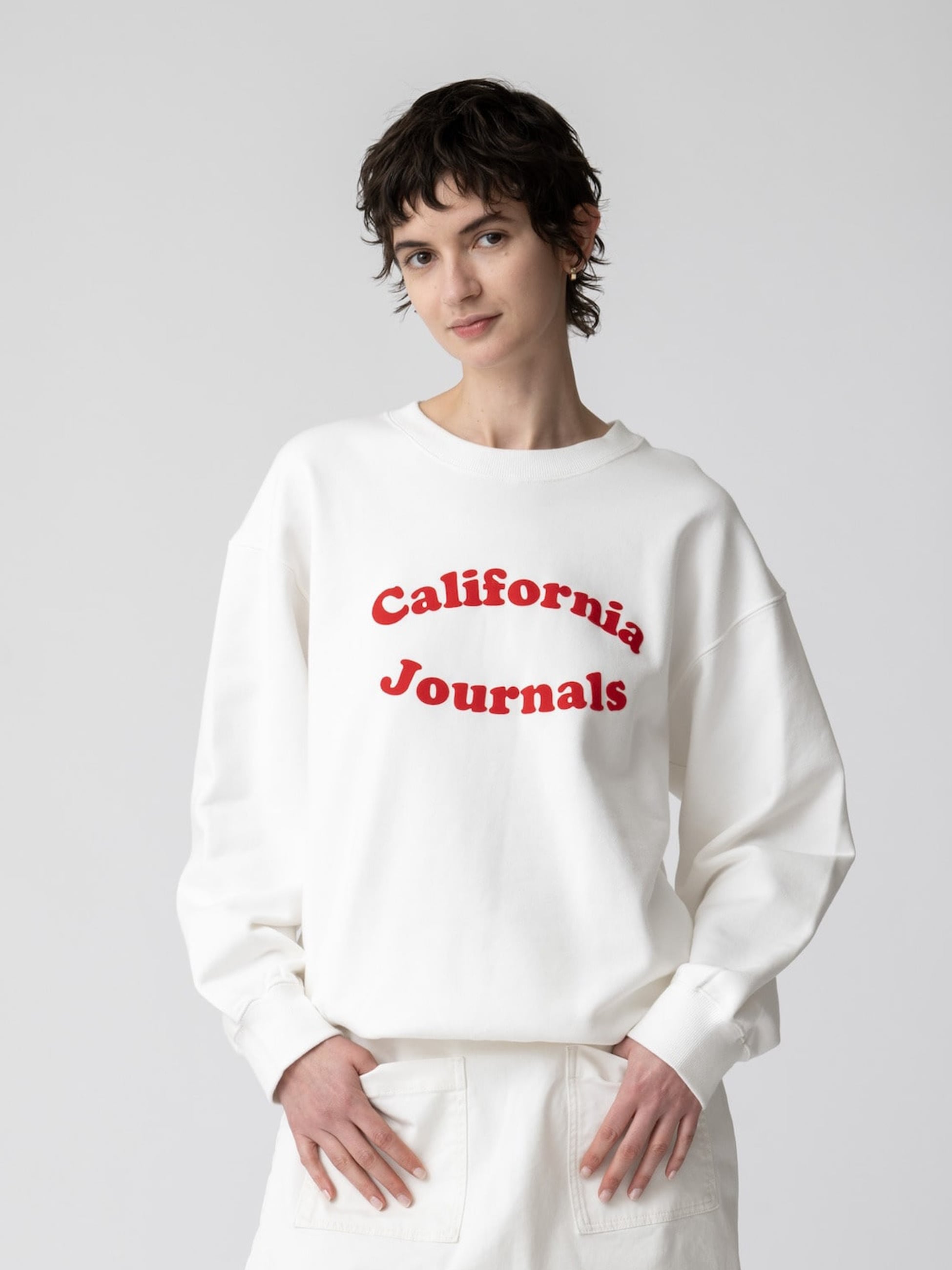 Journals by STUDIO ANIMALSの1stコレクションが登場です。ロンハーマン発祥の地であるカリフォルニアに焦点を当てデザインした、クルーネックスウェットプルオーバーは、ドロップショルダーのリラクシーなシルエットとフロントのフロッキープリントがポイントに。コットン100%で着心地が良く、パンツにもスカートにも合わせやすい汎用性の高いアイテムです。