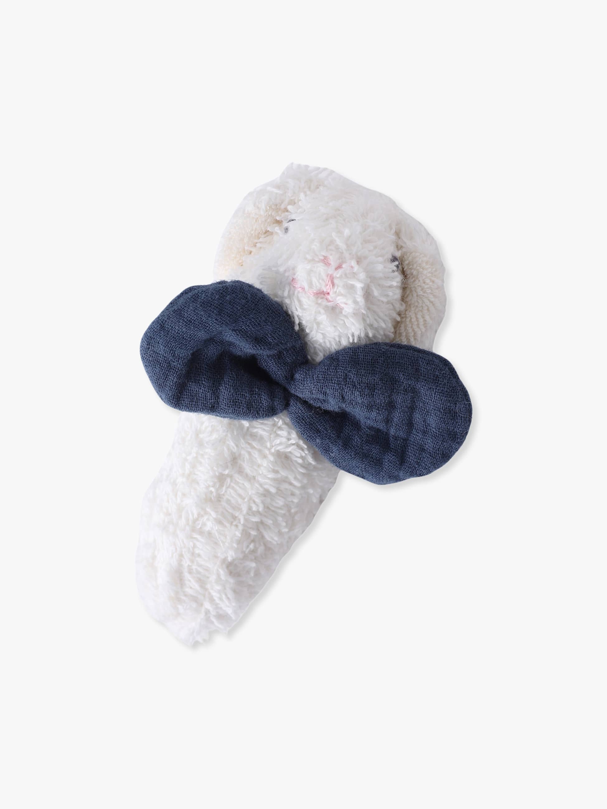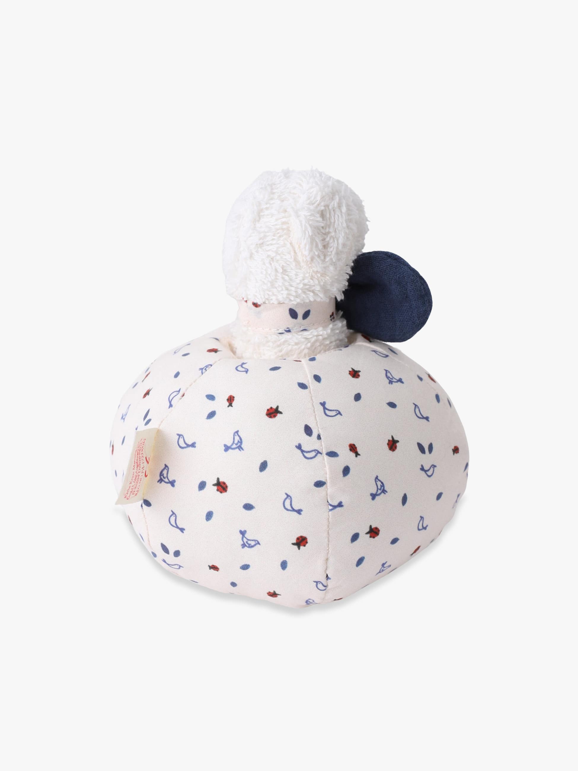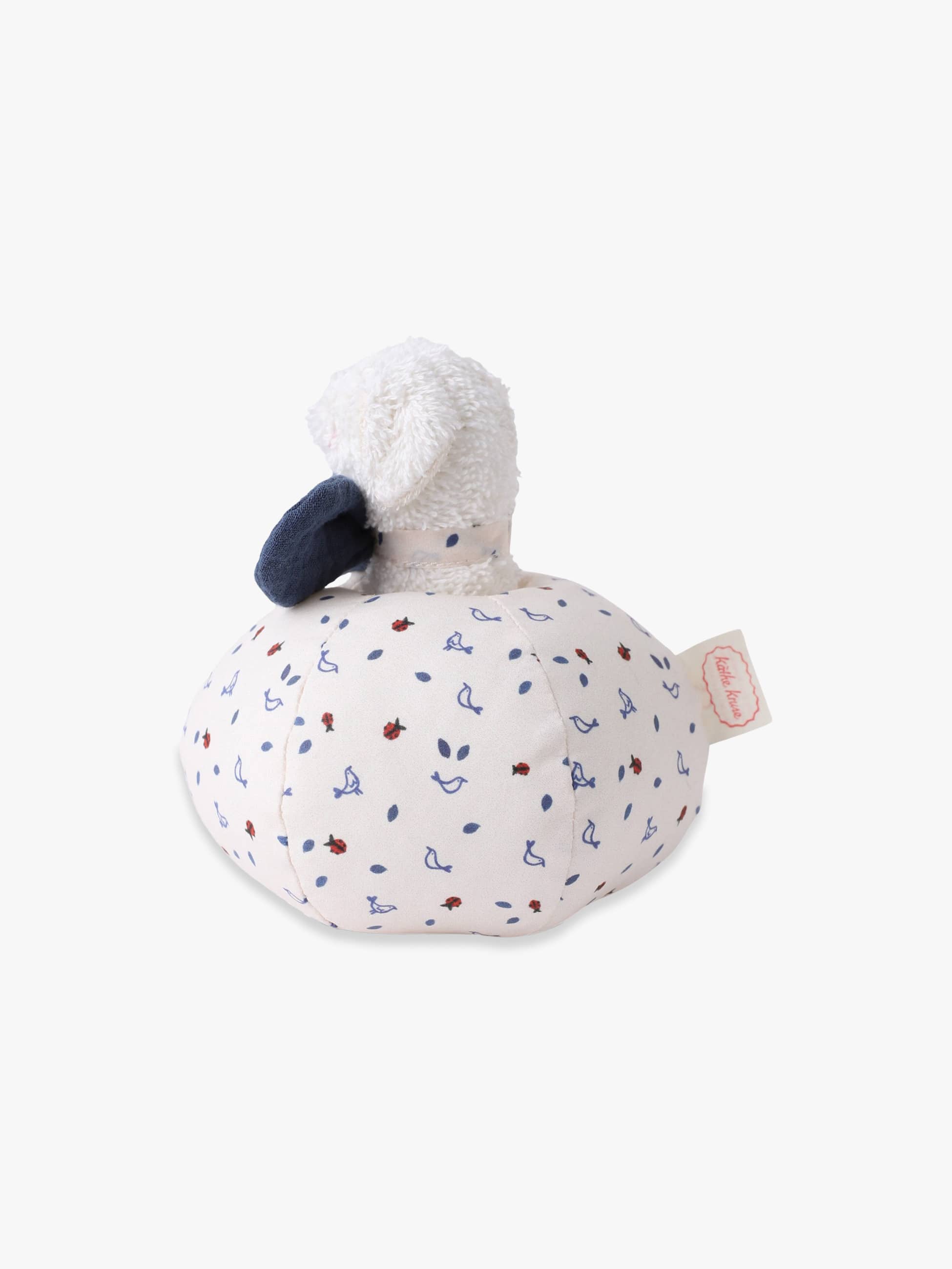 ラムがちょこんと乗ったラトルボールは、やわらかなコットン素材と、淡いカラーリングが愛らしいデザインです。 振るたびにやさしい音が鳴り、聴覚の発達をサポート。小さな手でも握りやすいサイズ感で、初めてのおもちゃにもぴったりです。 出産祝いやファーストトイとしてもおすすめです。