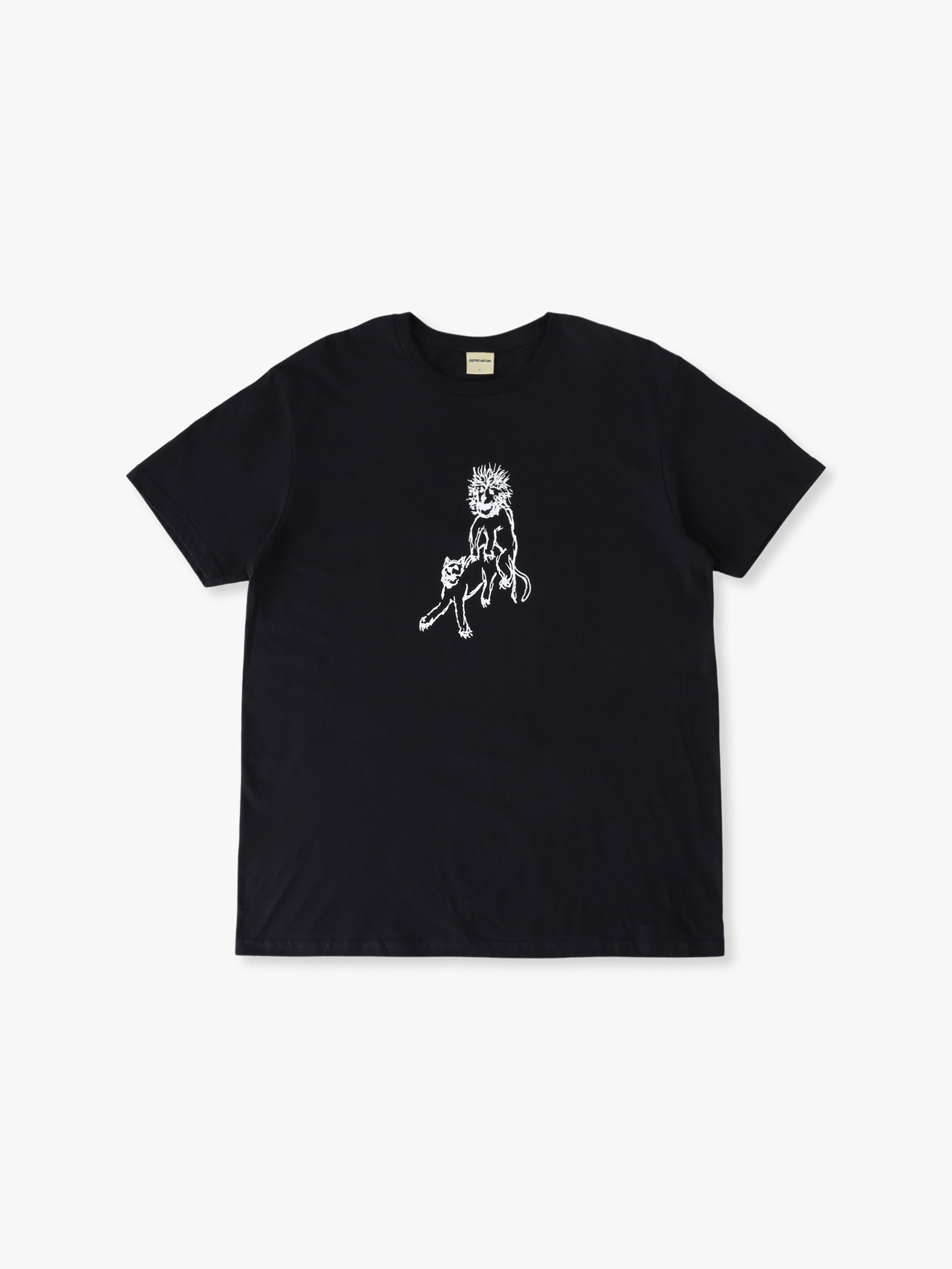 - コットン100%素材のTシャツは、フロントに配されたオリジナルグラフィックが特徴です。また、深みのあるカラーリングもポイント。程よくゆったりとしたフィットは、コーディネートの主役になる一着です。