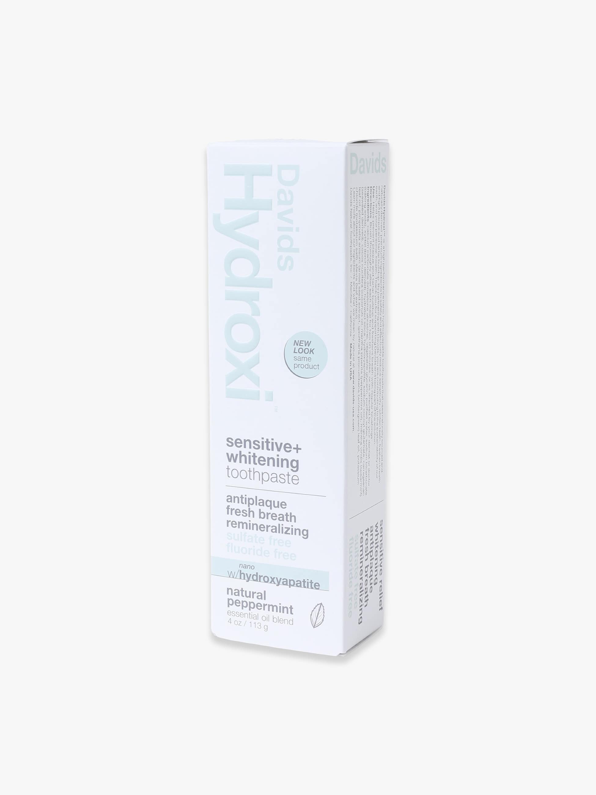 - 天然原料のみをベースとし、自然な甘さとさわやかな天然ミントフレーバーのホワイトニングトゥースペーストです。ブラッシングにより「歯を白くする・歯垢を除去する・歯石の沈着を防ぐ・口臭を防ぐ」4つの効果が期待できます。歯のエナメル質のケアに着目し、温度刺激などに敏感な歯と歯茎をケアする「ナノヒドロキシアパタイト」を配合。歯垢を吸着し、歯の表面をなめらかに整えます。