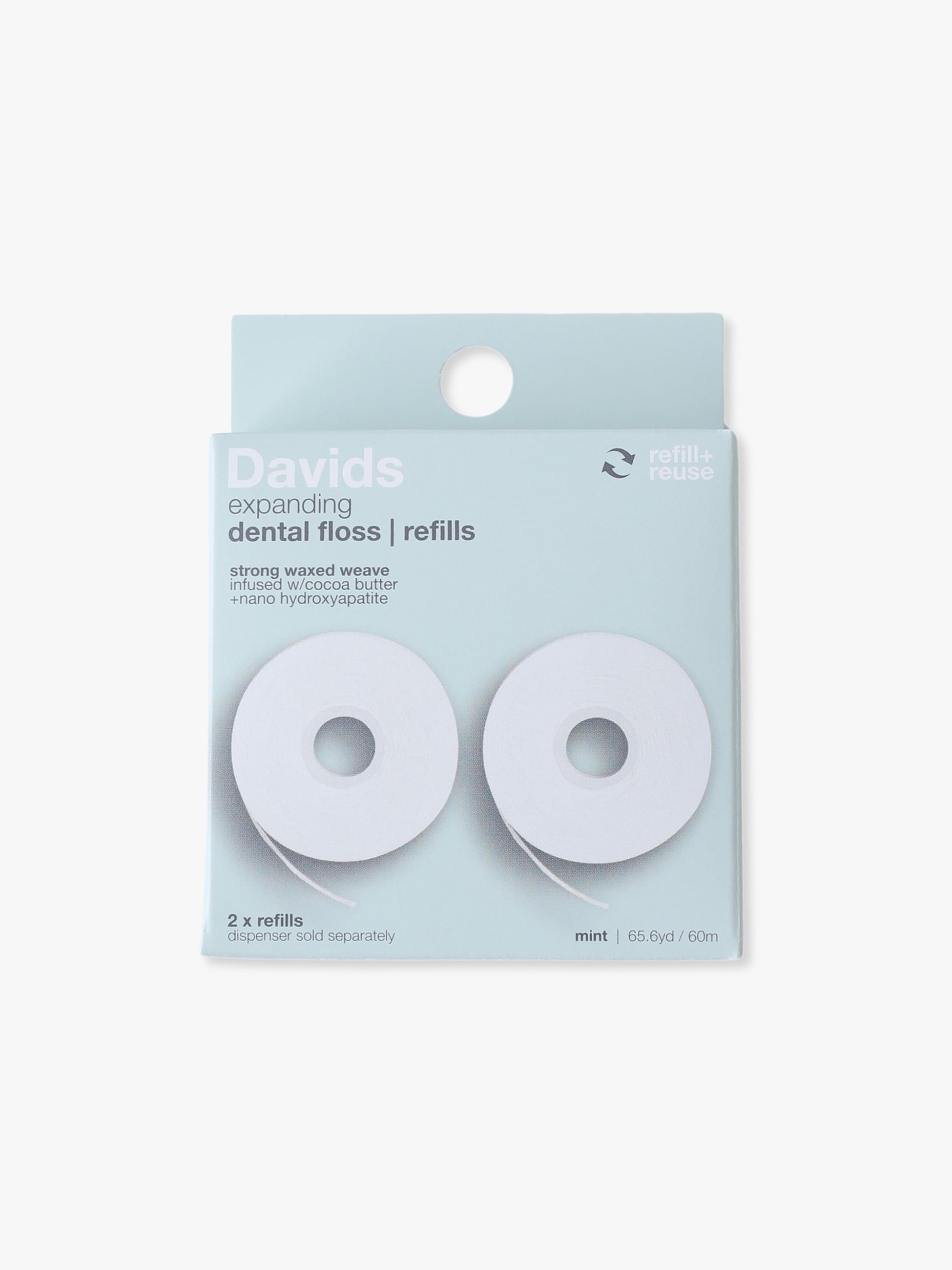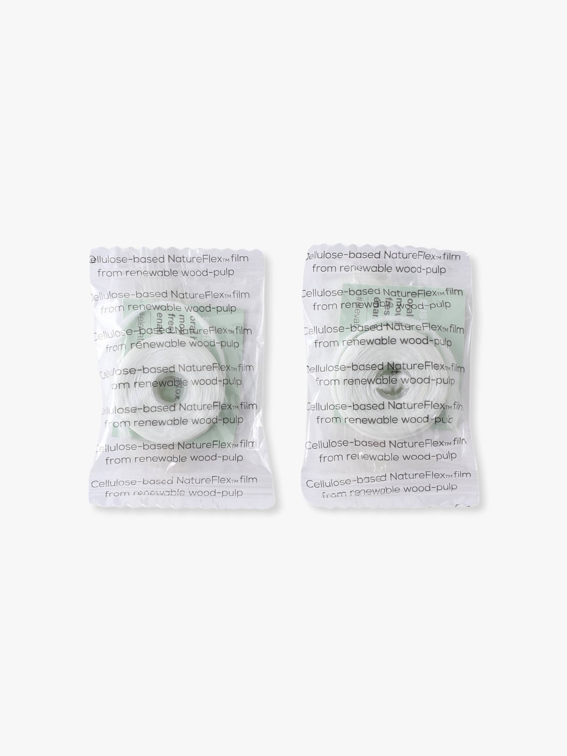 ヴィーガンワックスとカカオバターがコーティングされた、優しくなめらかな使い心地のフロスセット(レフィル)です。250本以上の超極細繊維を編み込んだマルチフィラメントは、フロスの断面が平らなフラットタイプのため、狭い歯間部にも挿入しやすく、歯間にフィットします。オリジナルの天然ミントオイルを使用しているため、クリーンでフレッシュな香りです。リサイクルペットボトルから作られたポリエステル繊維を採用し、使用感の良さはキープしつつ環境へ配慮しています。