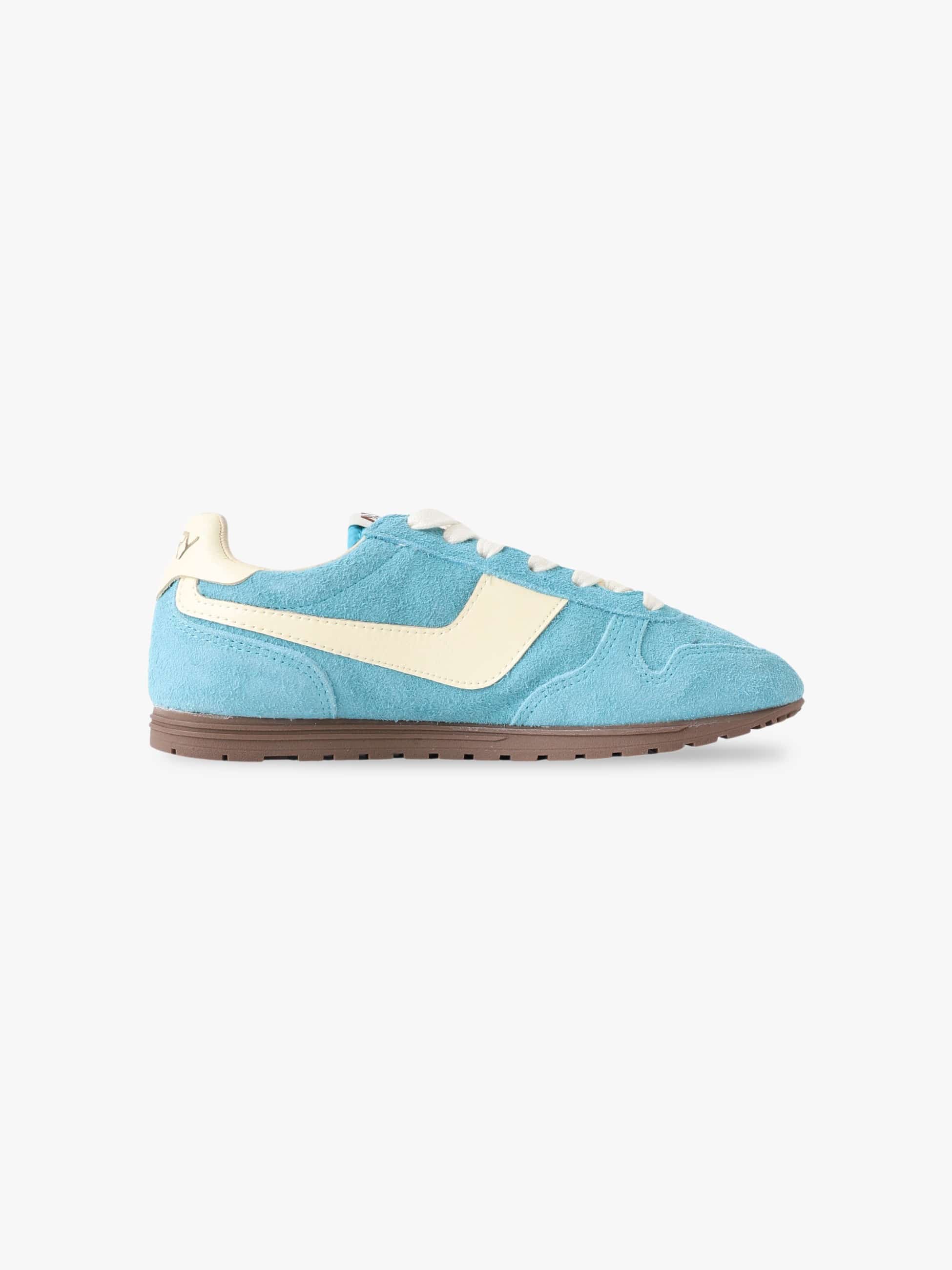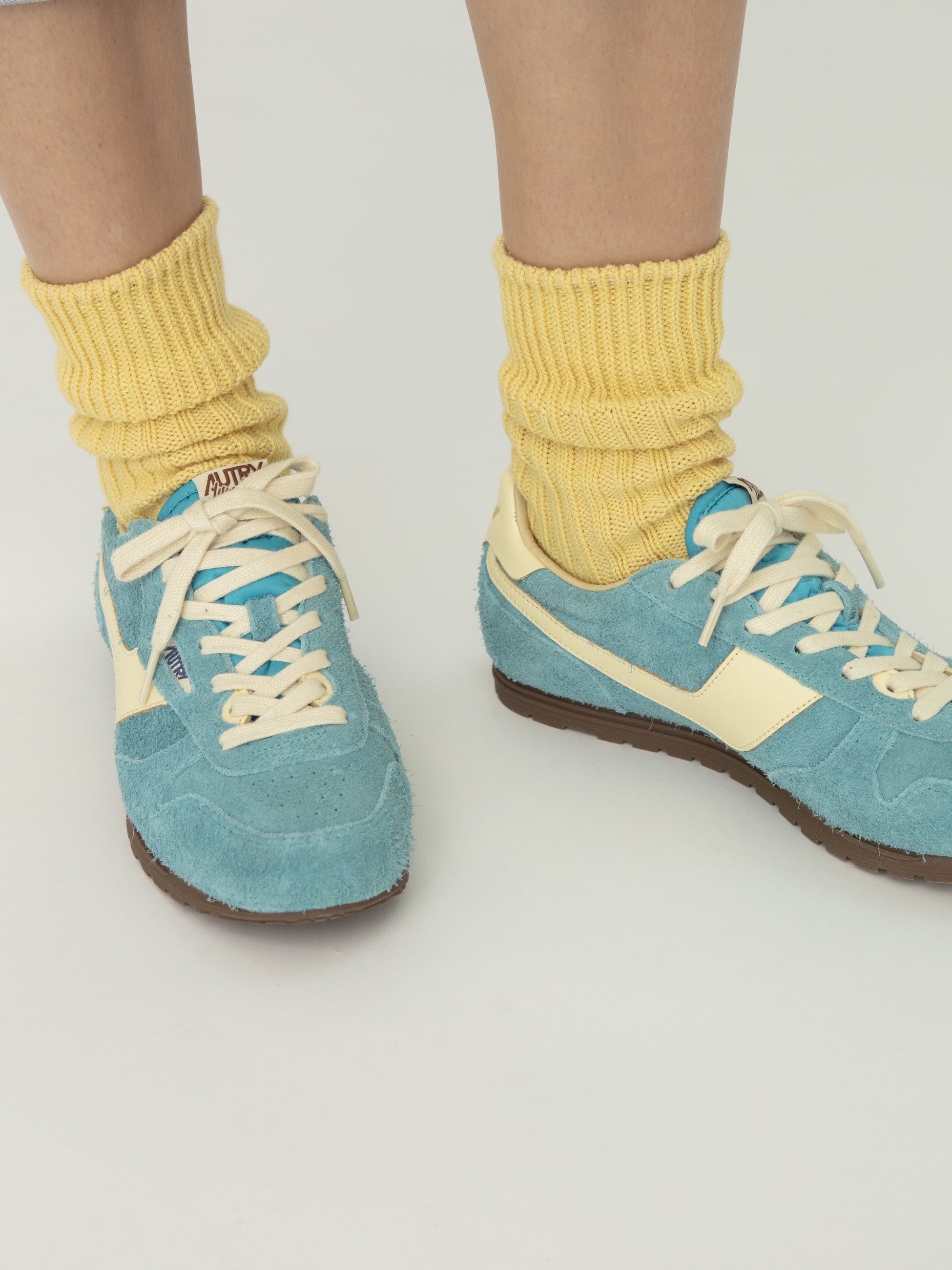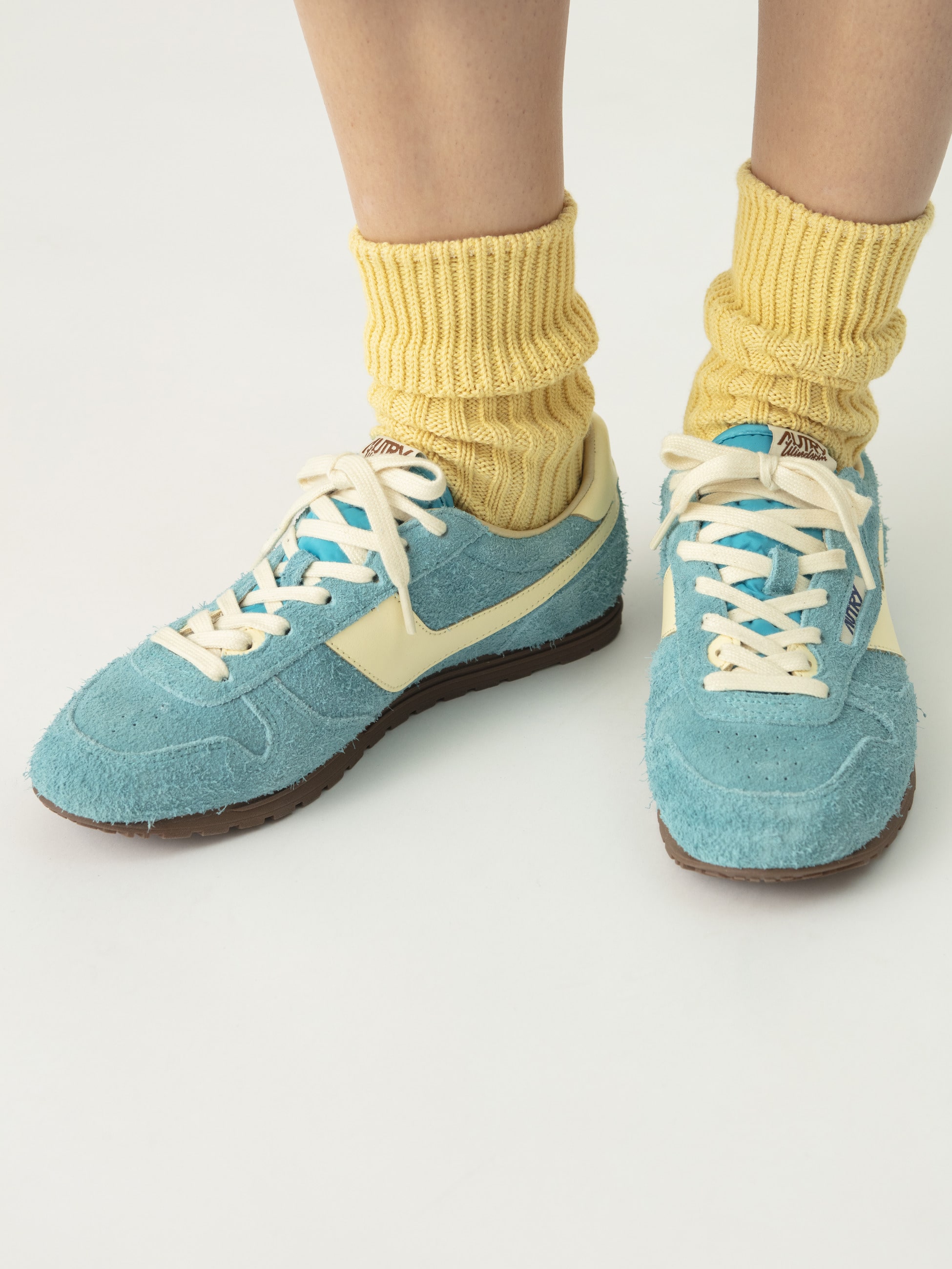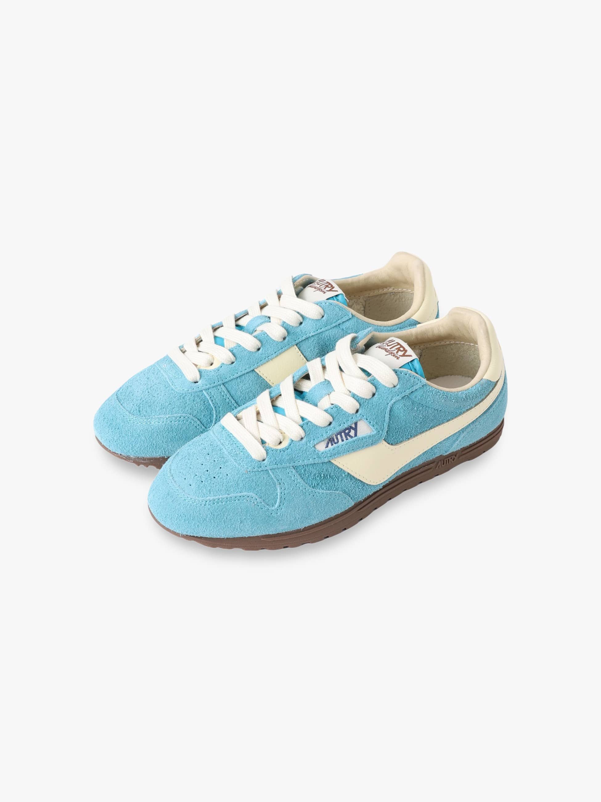 ロンハーマンウィメンズで初めてのお取り扱いとなるAUTRYとのエクスクルーシブスニーカーが登場です。柔らかなスウェードにヴィンテージ感を纏い、洗練された細身のシルエットが特徴のモデル「Windspin(ウィンドスピン)」をカラー別注しました。ベースには爽やかなライトブルーのスウェードを使用し、ホワイトとの配色が、絶妙な色のニュアンスをお楽しみいただけます。インソールにはWネームのロゴプリントを施し、履くたびにさりげなく見えるロゴもポイントです。