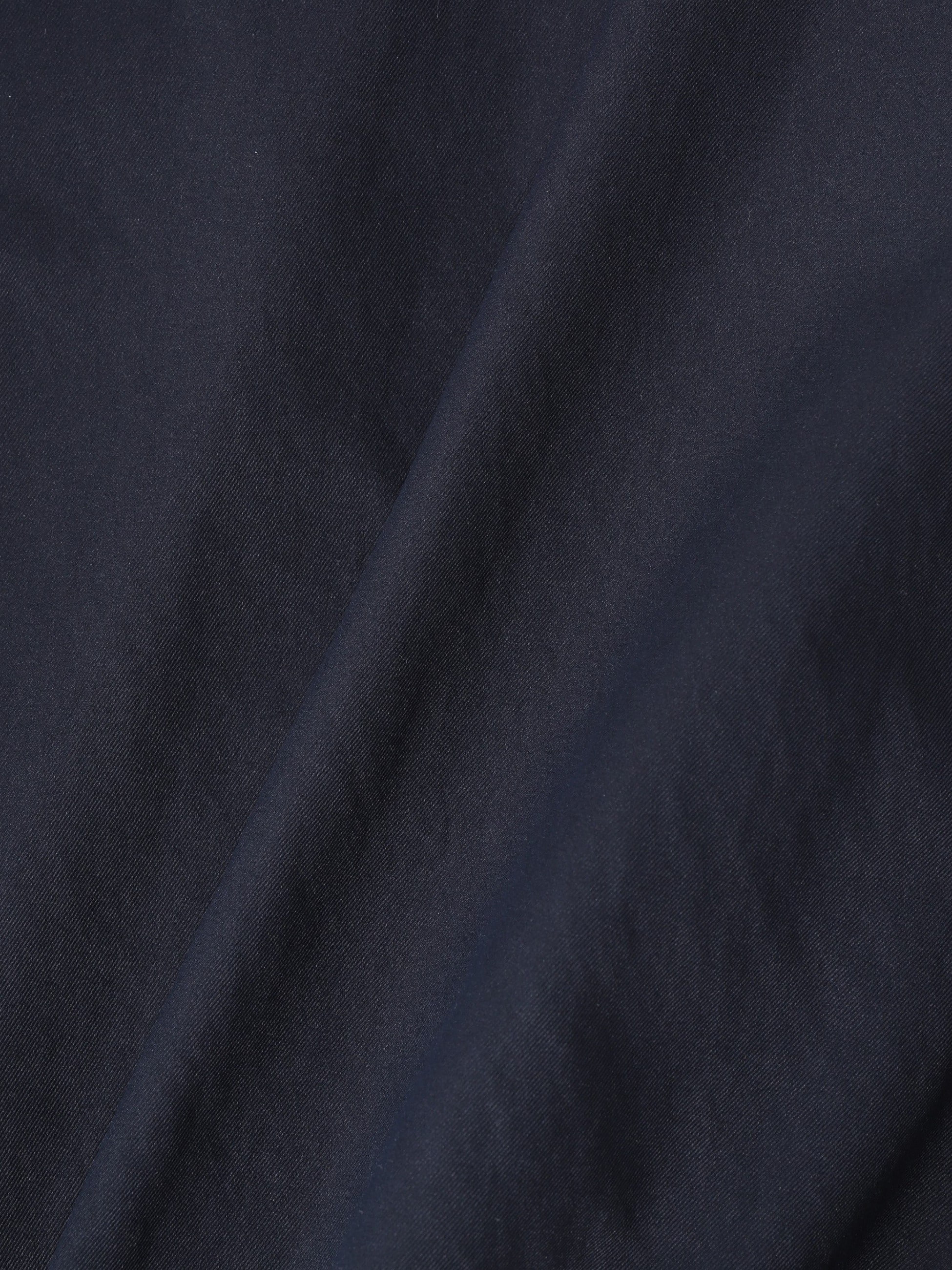 - ツイル生地のジップアップジャケットは、端正なシルエットとシックなネイビーカラーが普遍的な魅力を醸し、しわになりにくいポリエステルツイルの風合いが、ハンサムな雰囲気を演出します。