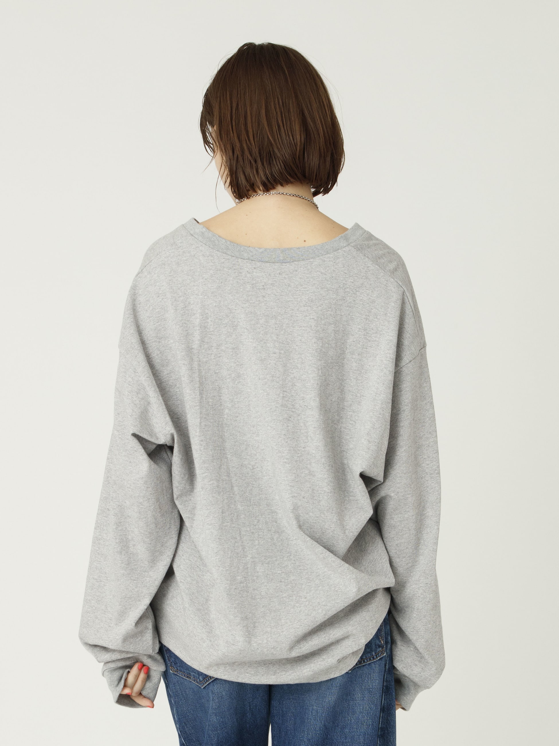 ONITが展開する定番アイテムのひとつ「ROUGH COTTON DEEP V-NECK T-SHIRT」は、深く開いたVネックラインがポイントです。ベーシックなホワイト、グレーをRHC ロンハーマンで復刻別注しました。軽くてふわっとした柔らかい肌触りが特徴的なラフコットン天竺を採用し、シアー感のある素材で、ヘルシーでカジュアルな印象に。オーバーサイズのルーズなシルエットが、こなれ感をプラスします。